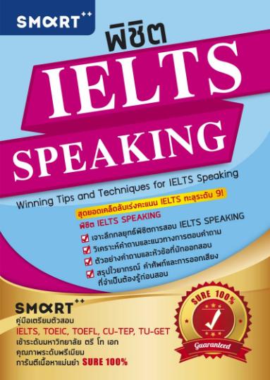 - "หนังสือ รวมเทคนิคพิชิต IELTS SPEAKING เล่มนี้ ได้รวบรวมกลยุทธ์การสอบ IELTS ใน Part การพูด (SPEAKING) ไว้อย่างครบครันโดยจะมีตัวอย่างคำถาม การวิเคราะห์คำถาม และแนวทางการตอบคำถามให้ได้คะแนน นอกจากนี้ยังได้รวบรวมหัวข้อคำถามที่มักออกสอบ ไวยกรณ์สำคัญ คำศัพท์และการออกเสียงที่ถูกต้องไว้ให้ผู้อ่านได้ฝึกฝนเตรียมพร้อมเพื่อพิชิตคะแนนการสอบ IELTS SPEAKING