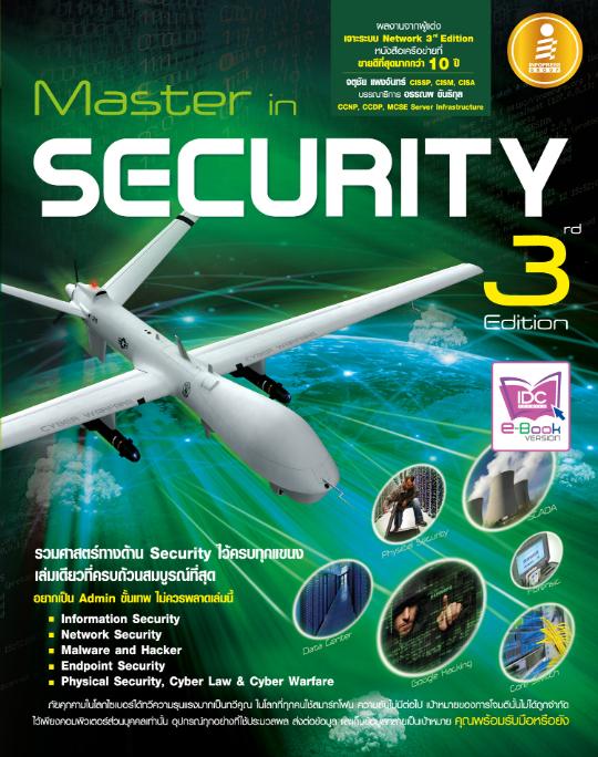 - ระบบไอทีช่วยให้ชีวิตเราง่ายขึ้นแต่ในทางกับกันก็เป็นอาวุธที่กำลังทำลายเราด้วย มาสเตอร์อินซีเคียวริตี้ เป็นหนังสือที่จะแนะนำท่านให้รู้จักภัยคุกคามด้านไซเบอร์และแนวทางการป้องกันที่ได้ผล ภัยคุกคามเริ่มตั้งแต่สิ่งที่คุ้นเคยคือ ไวรัส ไปจนถึงแฮคเกอร์ที่พยายามจะขโมยข้อมูลของเราหรือองค์กร หรือแม้บางประเทศก็พัฒนาอาวุธเพื่อโจมตีในไซเบอร์ได้ ส่วนแนวทางการป้องกันนั้นก็จะใช้หลักการป้องกันเชิงลึก โดยวิเคราะห์สาเหตุแล้วนำเอามาตรการป้องกันหรือเครื่องมือมาใช้ เช่น แอนตี้ไวรัส ไฟร์วอลล์ ไอดีเอส และเครื่องมือรักษาความปลอดภัยอื่นๆ