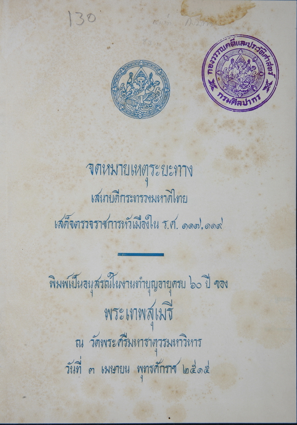 , “จดหมายเหตุระยะทางเสนาบดีกระทรวงมหาดไทย