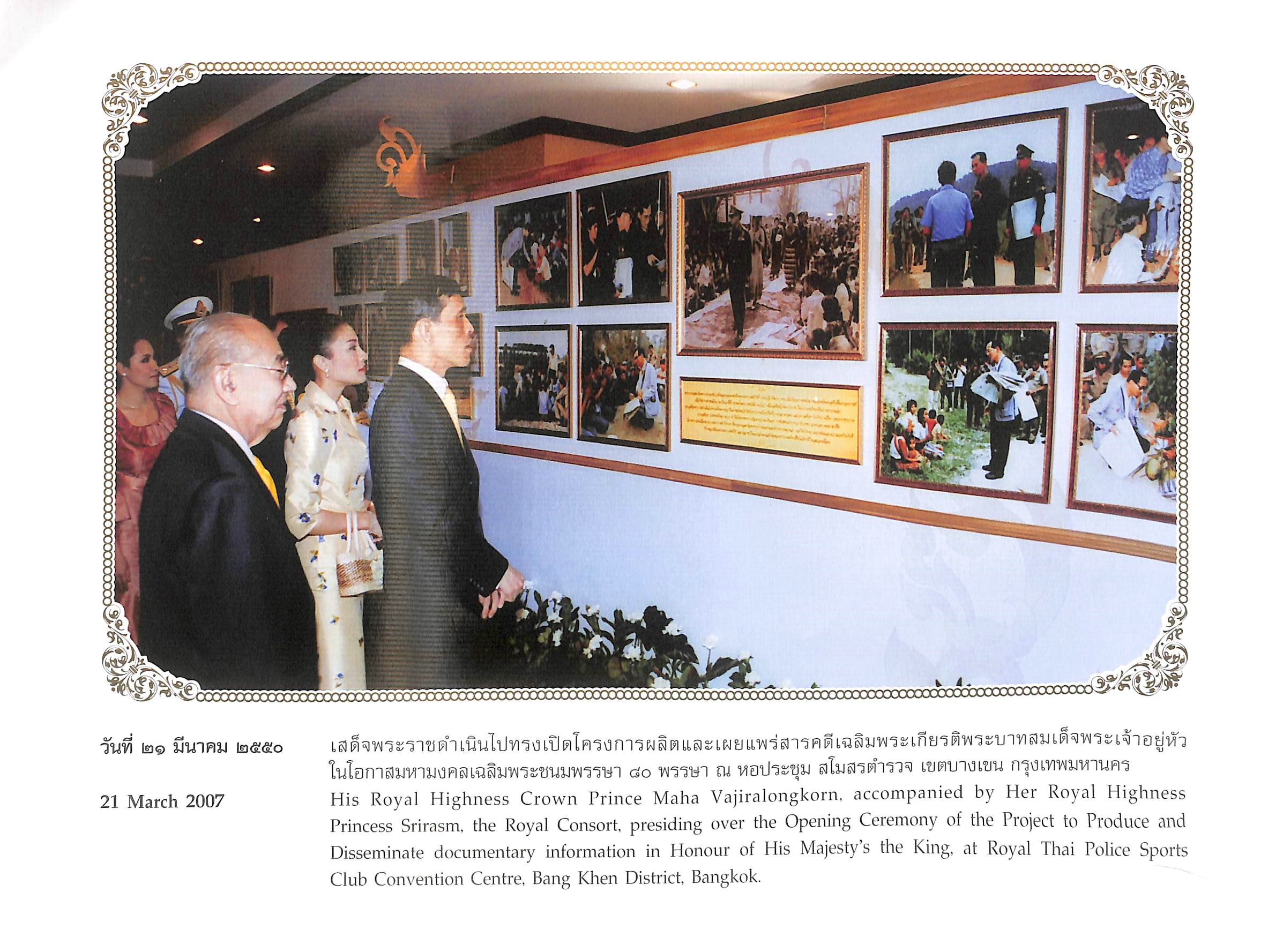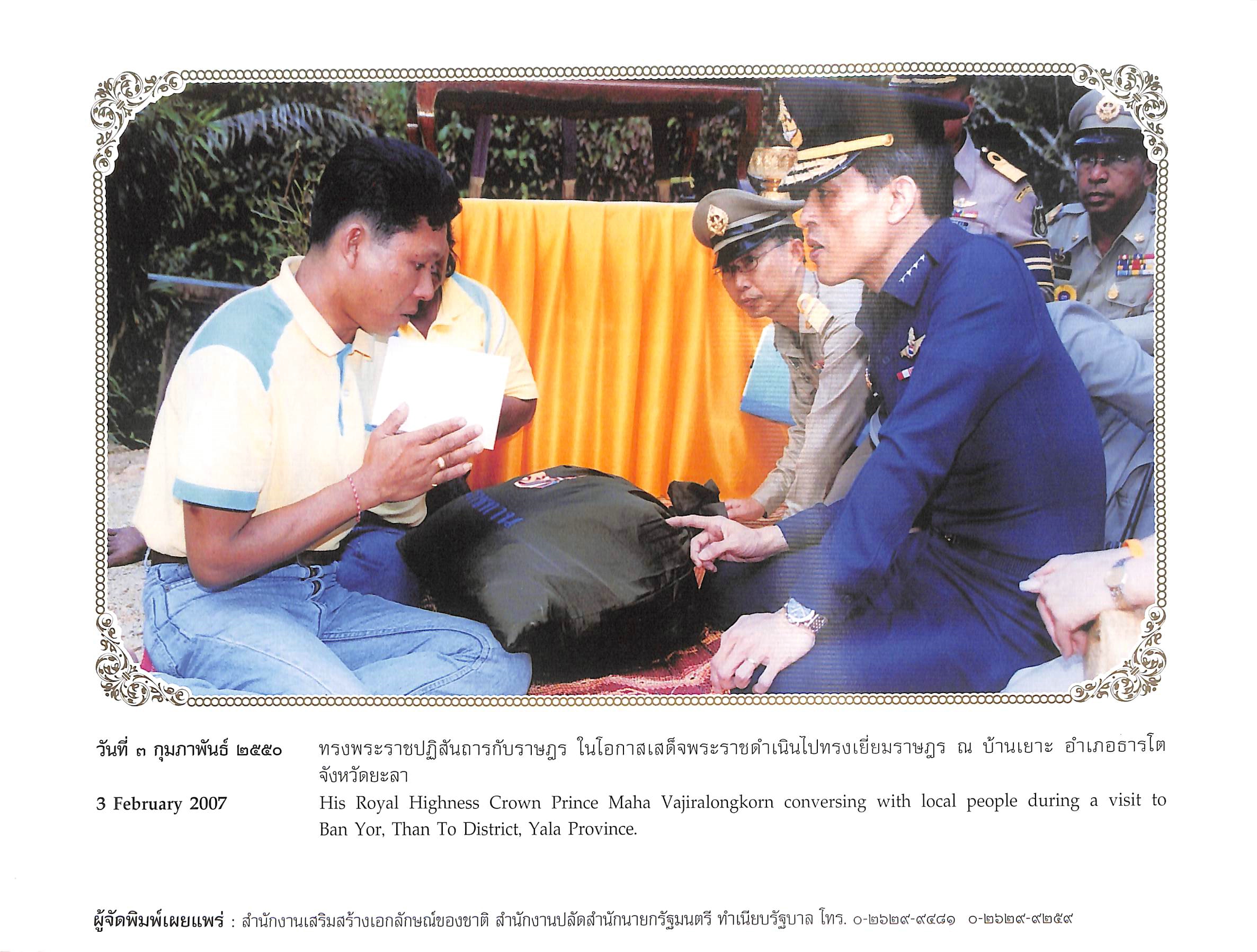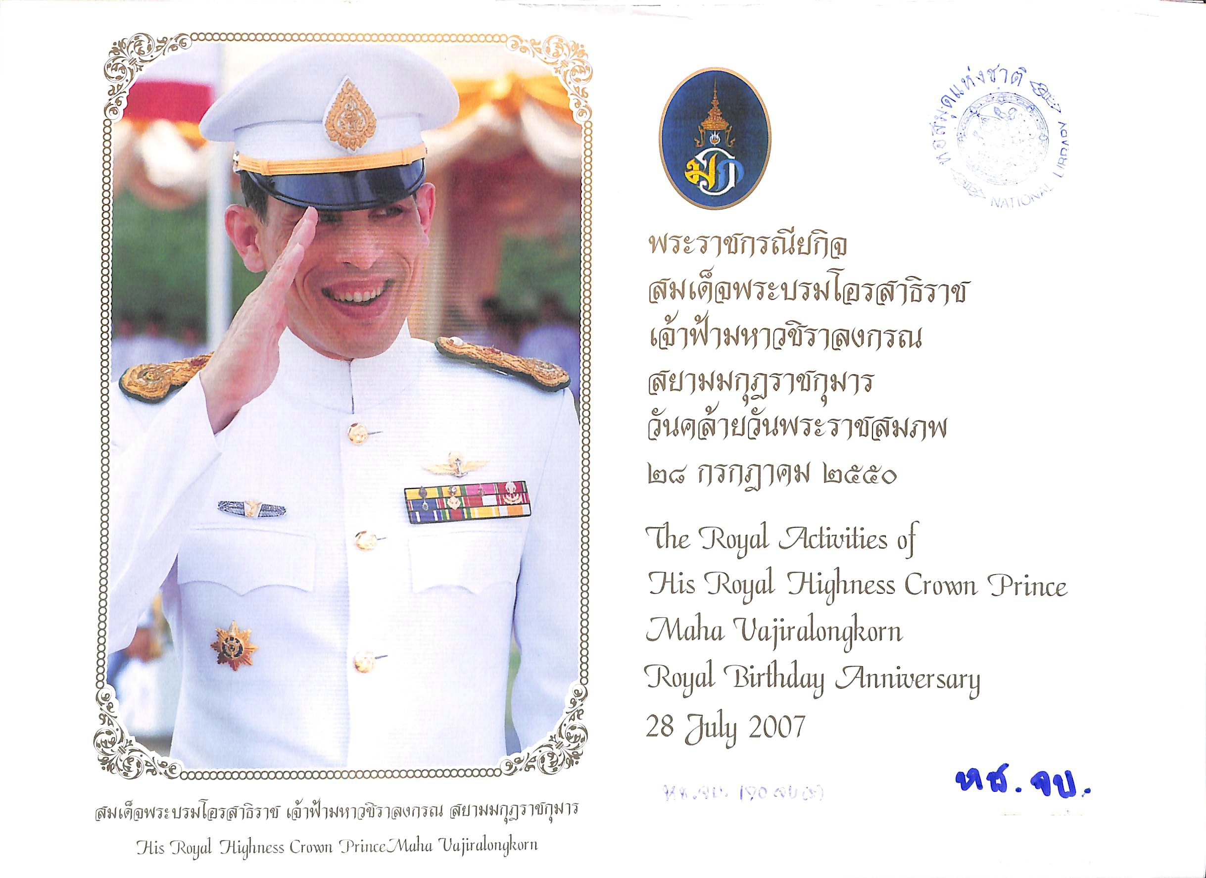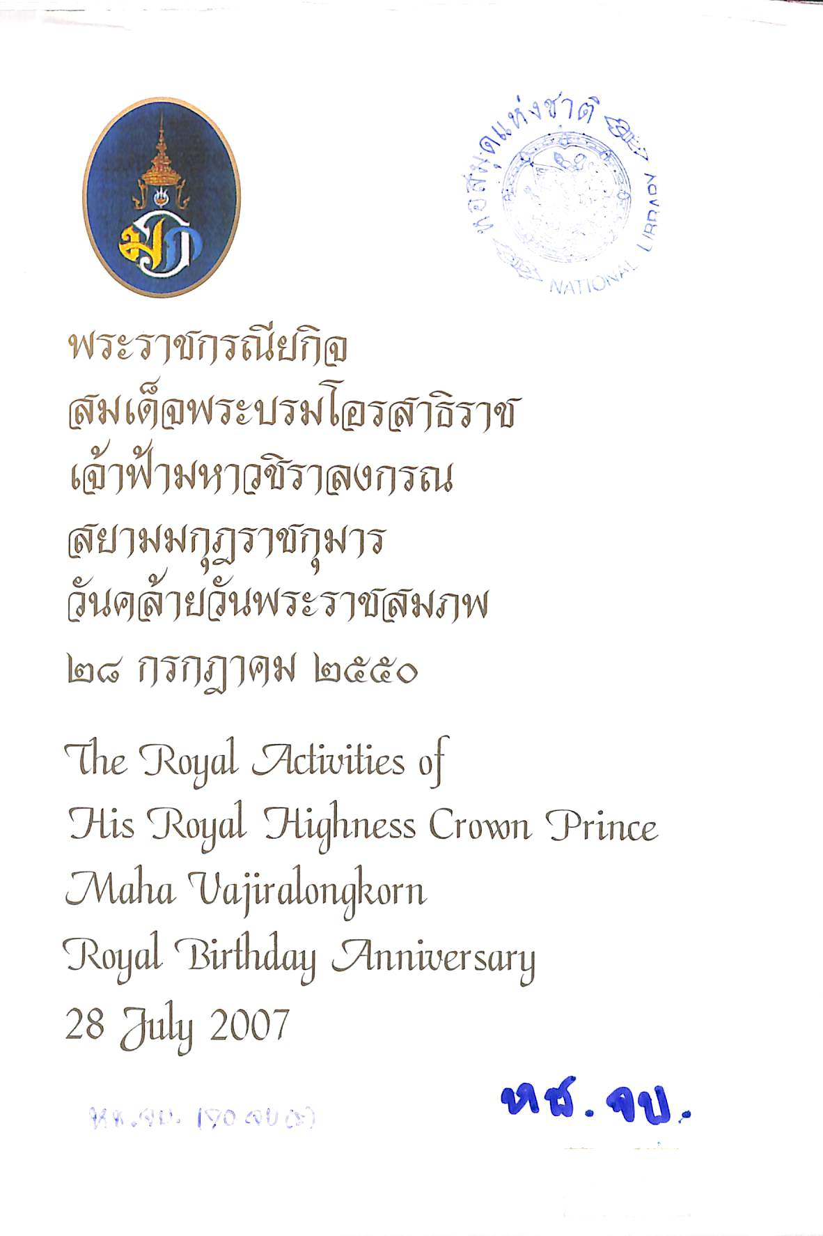 สำนักงานเสริมสร้างเอกลักษณ์ของชาติ สำนักงานปลัดสำนักนายกรัฐมนตรี ทำเนียบรัฐบาล, “พระราชกรณียกิจ สมเด็จพระบรมโอรสาธิราช เจ้าฟ้ามหาวชิราลงกรณ สยามมกุฎราชกุมาร วันคล้ายวันพระราชสมภพ ๒๘ กรกฎาคม ๒๕๕๐,” D-Library | National Library of Thailand, accessed April 2, 2026, http://164.115.27.97/digital2024/items/show/16166.