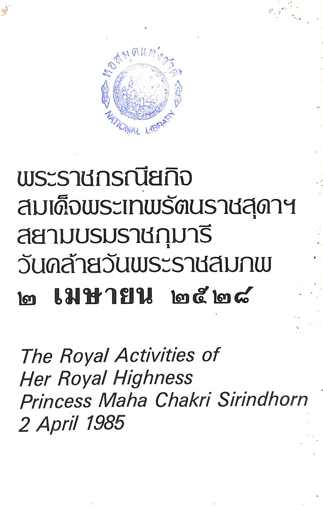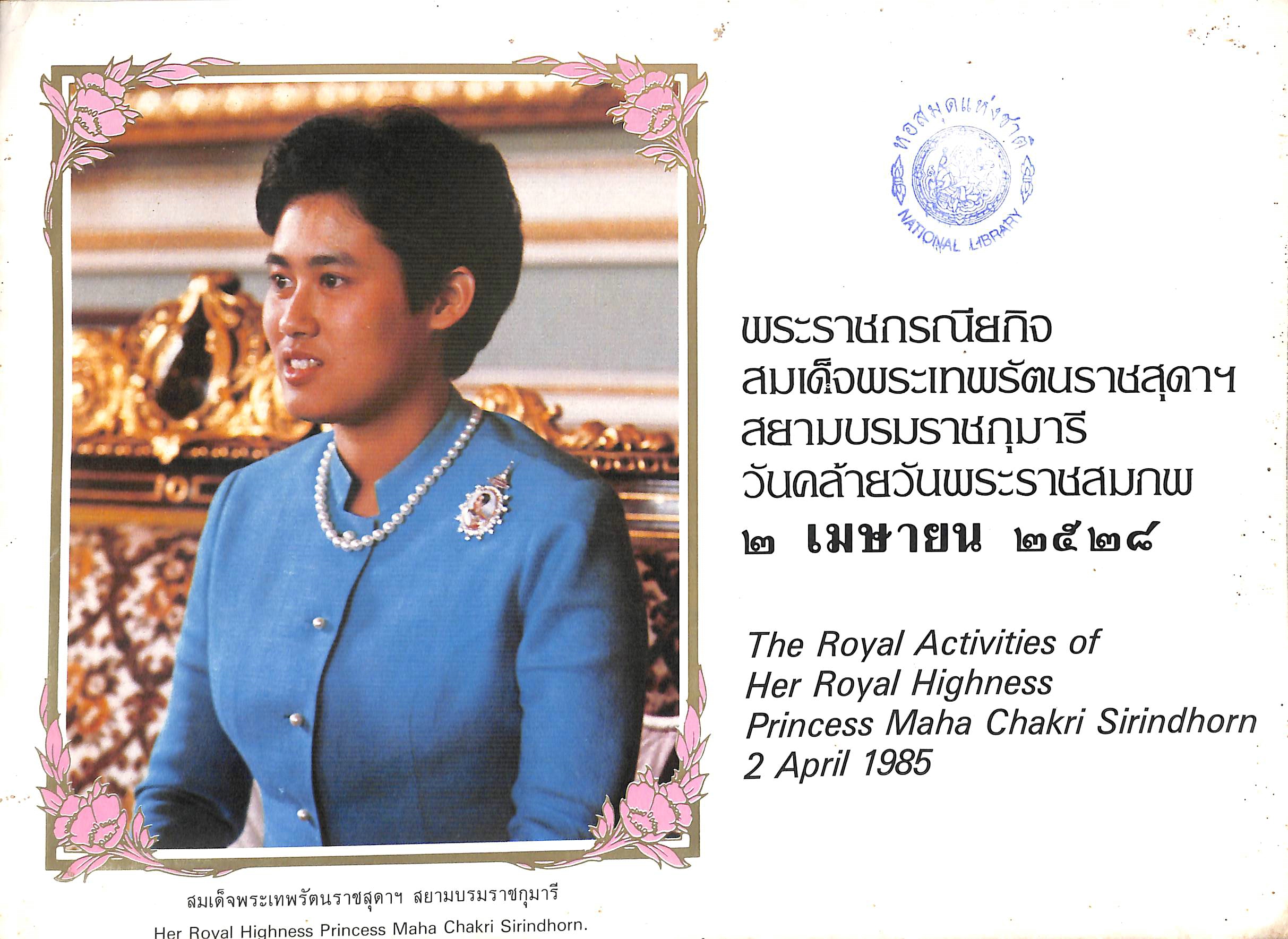 สำนักงานเสริมสร้างเอกลักษณ์ของชาติ สำนักเลขาธิการนายกรัฐมนตรี ทำเนียบรัฐบาล, “พระราชกรณียกิจ สมเด็จพระเทพรัตนราชสุดาฯ สยามบรมราชกุมารี วันคล้ายวันพระราชสมภพ ๒ เมษายน ๒๕๒๘,” D-Library | National Library of Thailand, accessed April 2, 2026, http://164.115.27.97/digital2024/items/show/16171.