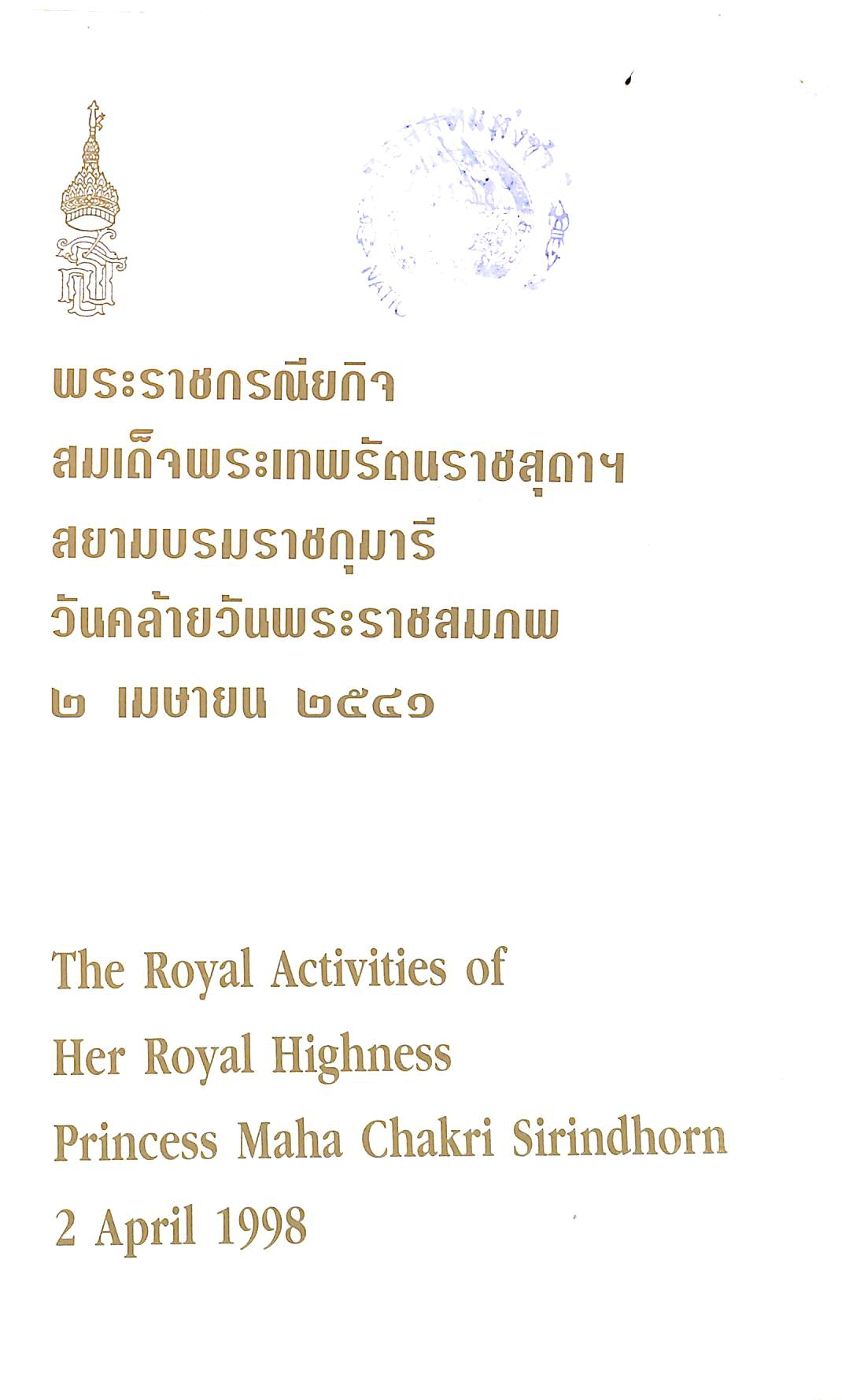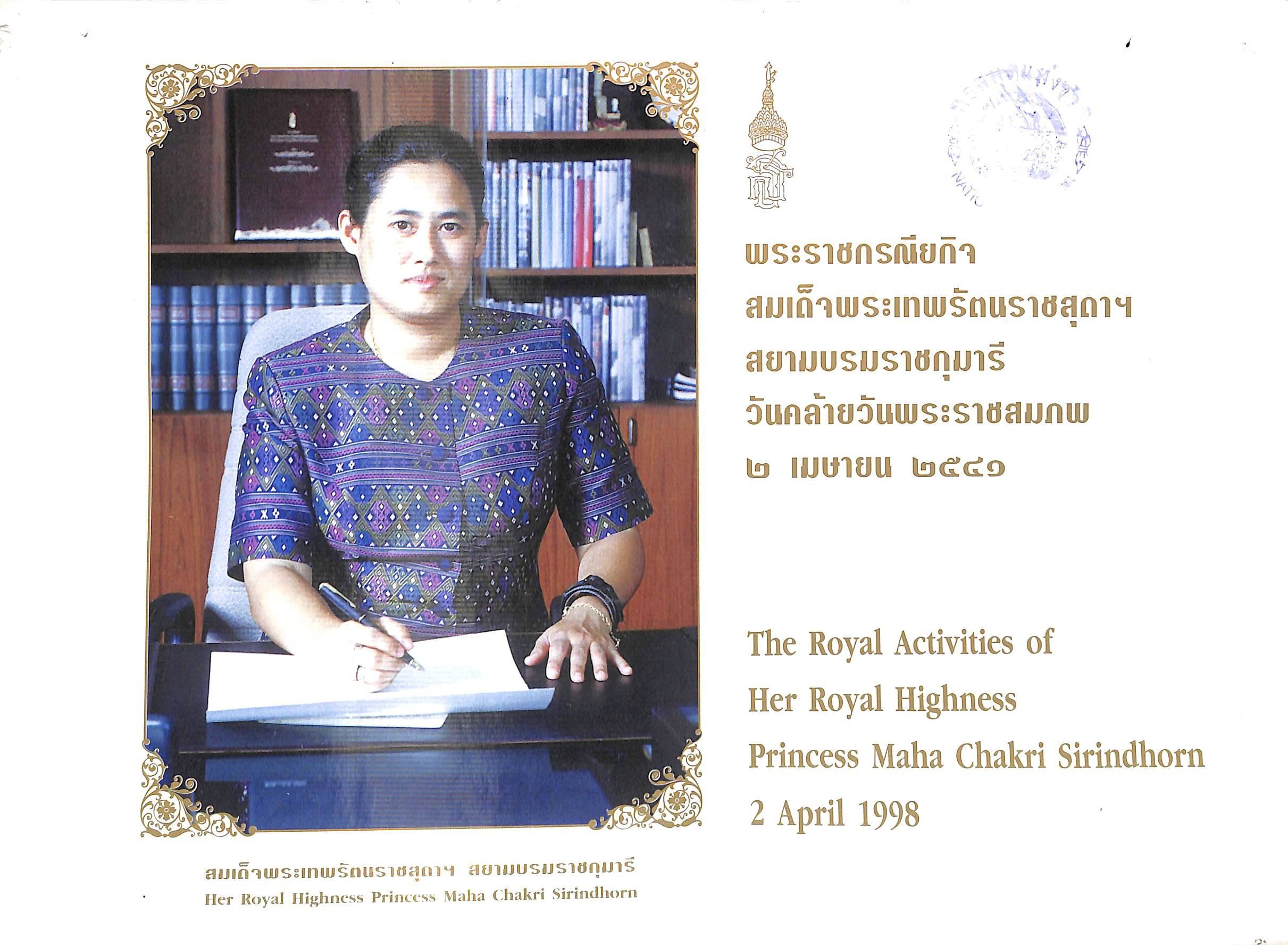 สำนักงานเสริมสร้างเอกลักษณ์ของชาติ สำนักเลขาธิการนายกรัฐมนตรี ทำเนียบรัฐบาล, “พระราชกรณียกิจ สมเด็จพระเทพรัตนราชสุดาฯ สยามบรมราชกุมารี วันคล้ายวันพระราชสมภพ ๒ เมษายน ๒๕๔๑,” D-Library | National Library of Thailand, accessed April 2, 2026, http://164.115.27.97/digital2024/items/show/16173.