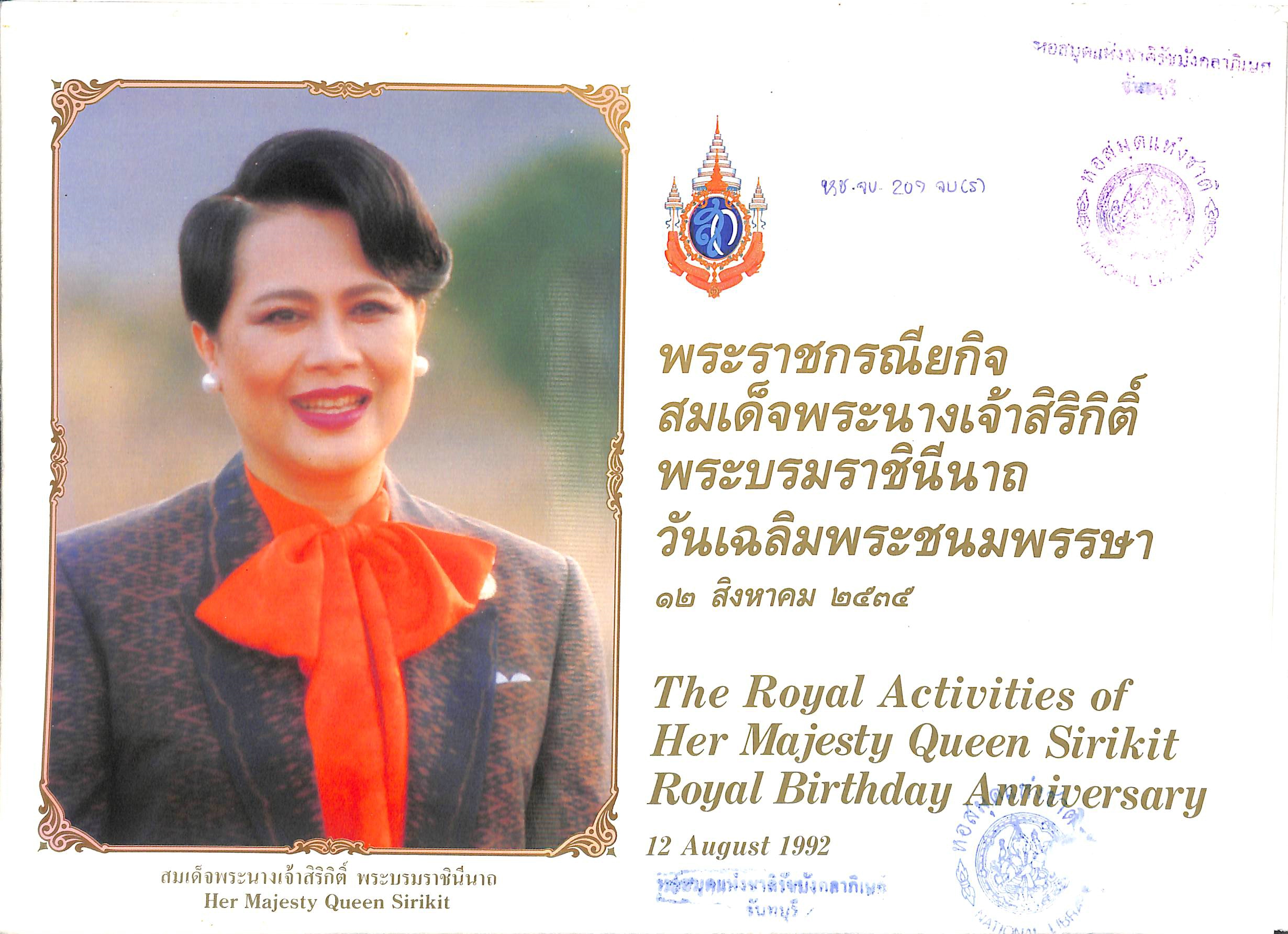 สำนักงานเสริมสร้างเอกลักษณ์ของชาติ สำนักเลขาธิการนายกรัฐมนตรี ทำเนียบรัฐบาล, “พระราชกรณียกิจ สมเด็จพระนางเจ้าสิริกิติ์ พระบรมราชินีนาถ วันเฉลิมพระชนมพรรษา ๑๒ สิงหาคม ๒๕๓๕,” D-Library | National Library of Thailand, accessed April 2, 2026, http://164.115.27.97/digital2024/items/show/17839.