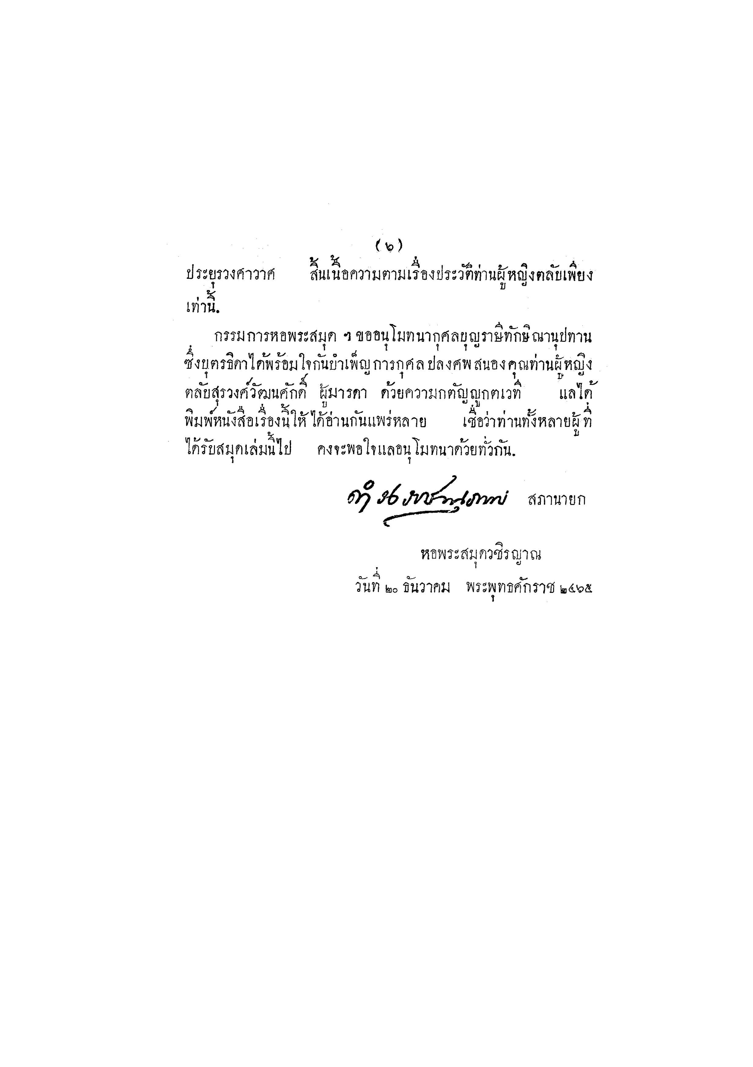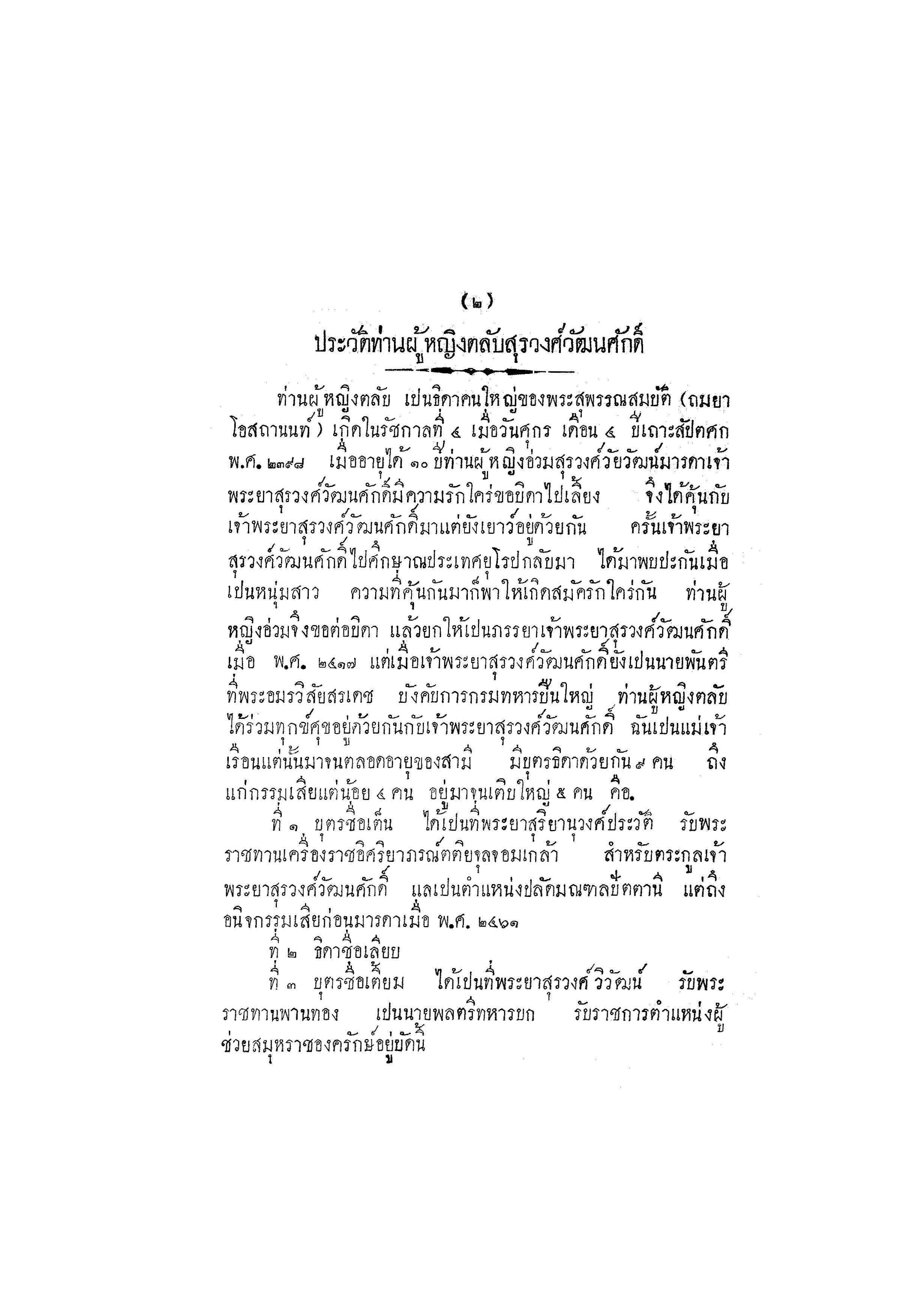 - พิมพ์ในงานพระราชทานเพลิงศพ ท่านผู้หญิงตลับ สุรวงศ์วัฒนศักดิ์