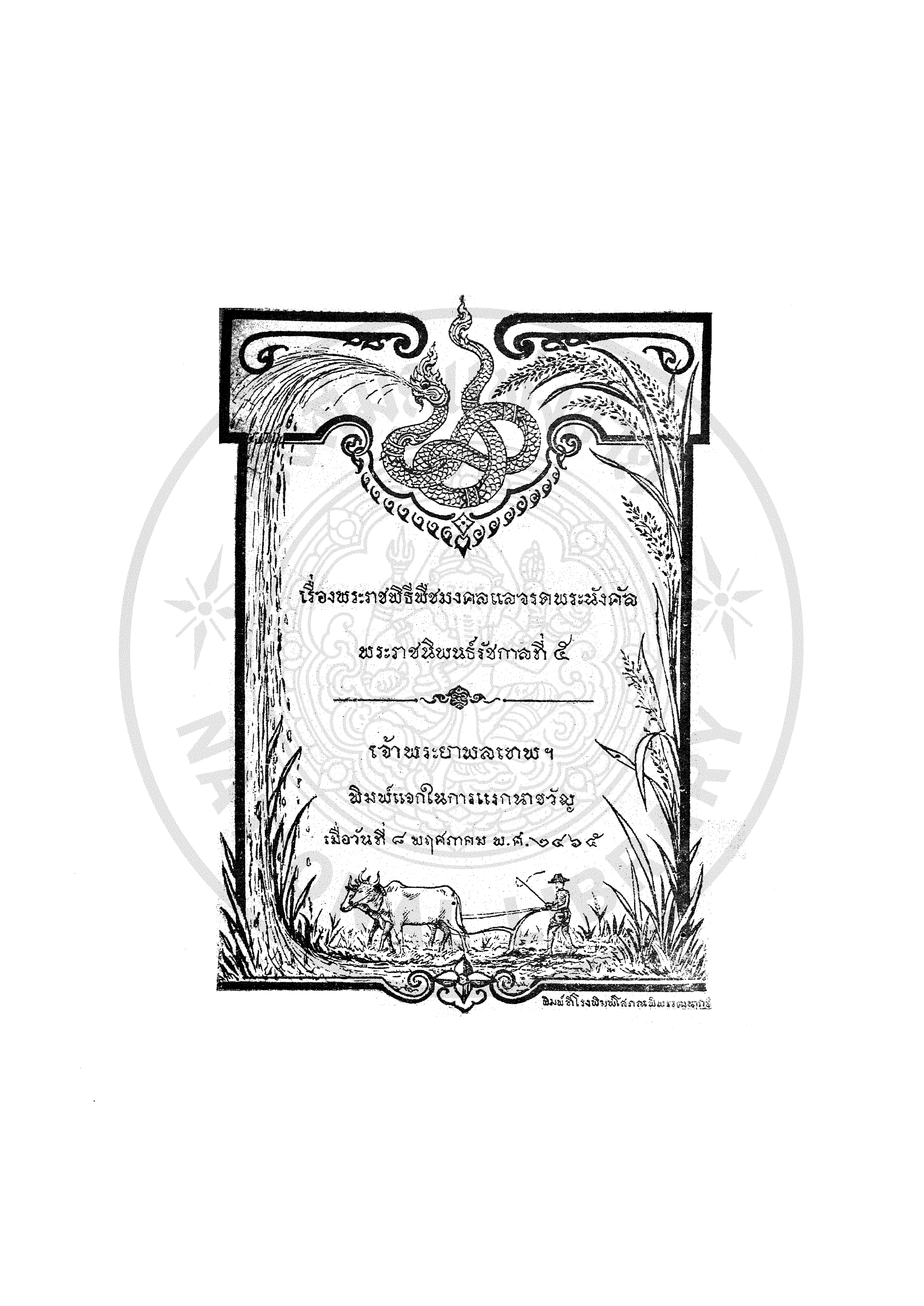 สำนักหอสมุดแห่งชาติ, “เรื่องพระราชพิธีพืชมงคลแลจรดพระนังคัล,” D-Library | National Library of Thailand, accessed April 2, 2026, http://164.115.27.97/digital2024/items/show/1827.