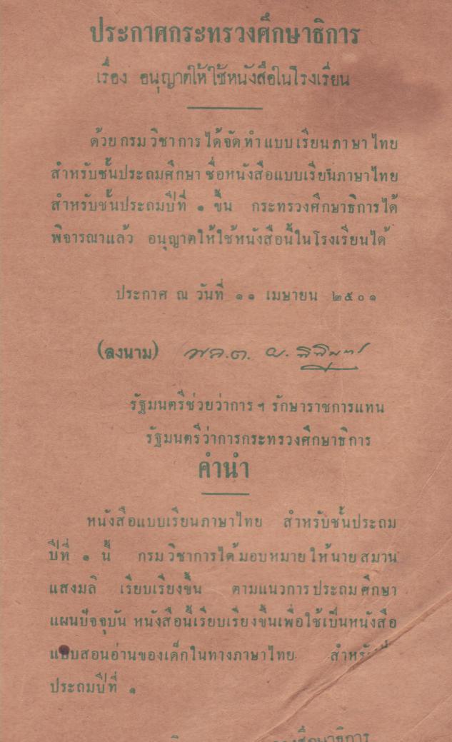 กระทรวงศึกษาธิการ, “แบบสอนอ่านภาษาไทยชั้นประถมปีที่ ๑,” D-Library | National Library of Thailand, accessed April 2, 2026, http://164.115.27.97/digital2024/items/show/2284.