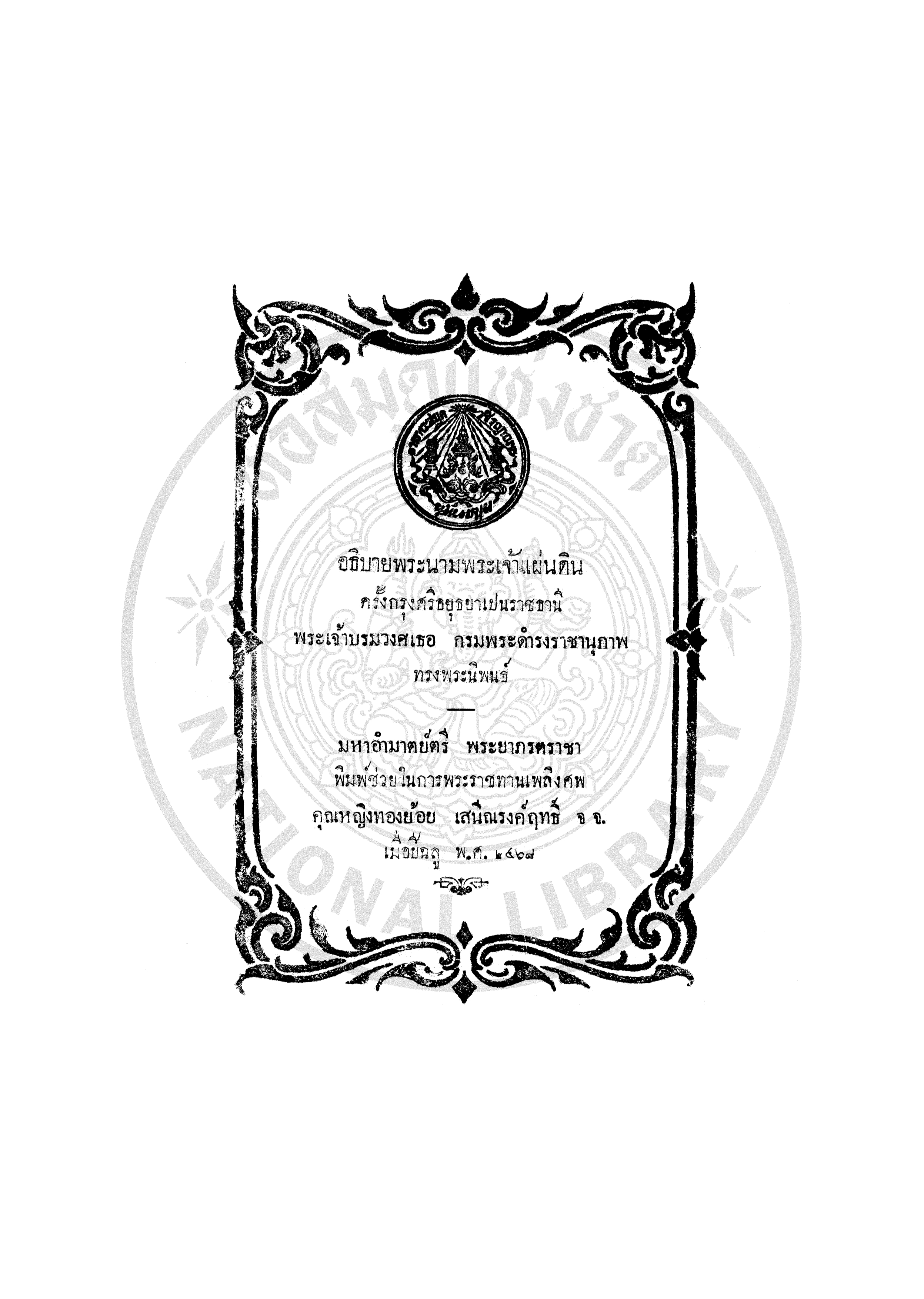 พระเจ้าบรมวงศ์เธอ กรมพระยาดำรงราชานุภาพ, “อธิบายพระนามพระเจ้าแผ่นดิน ครั้งกรุงศรีอยุธยาเป็นราชธานี,” D-Library | National Library of Thailand, accessed April 2, 2026, http://164.115.27.97/digital2024/items/show/2618.