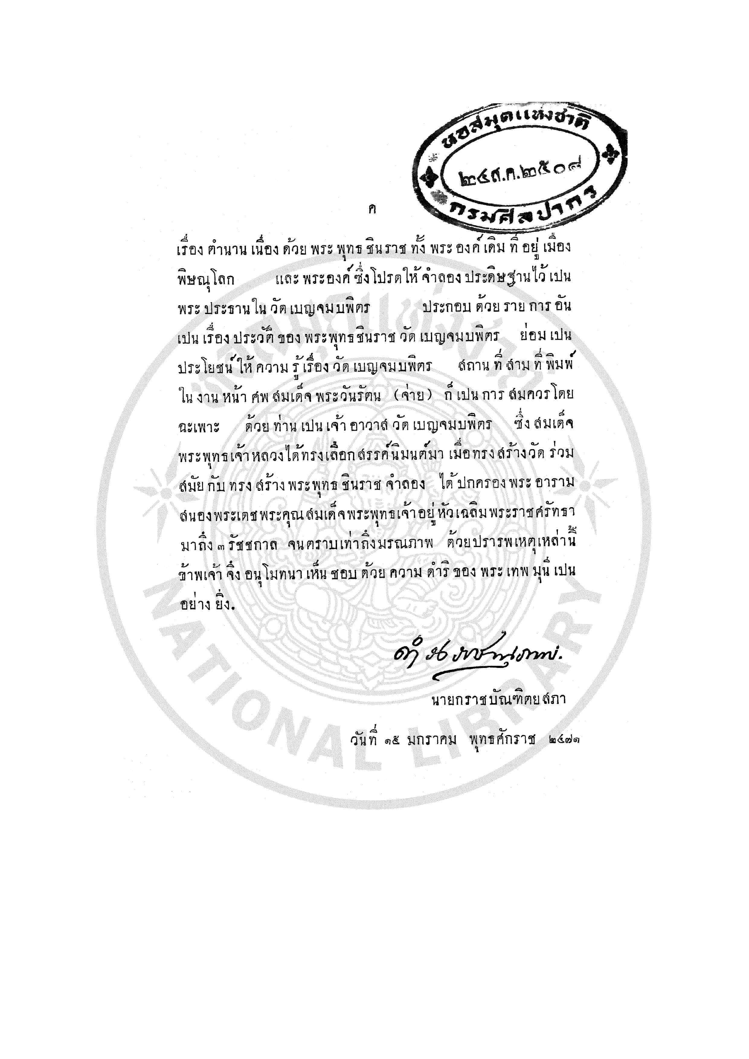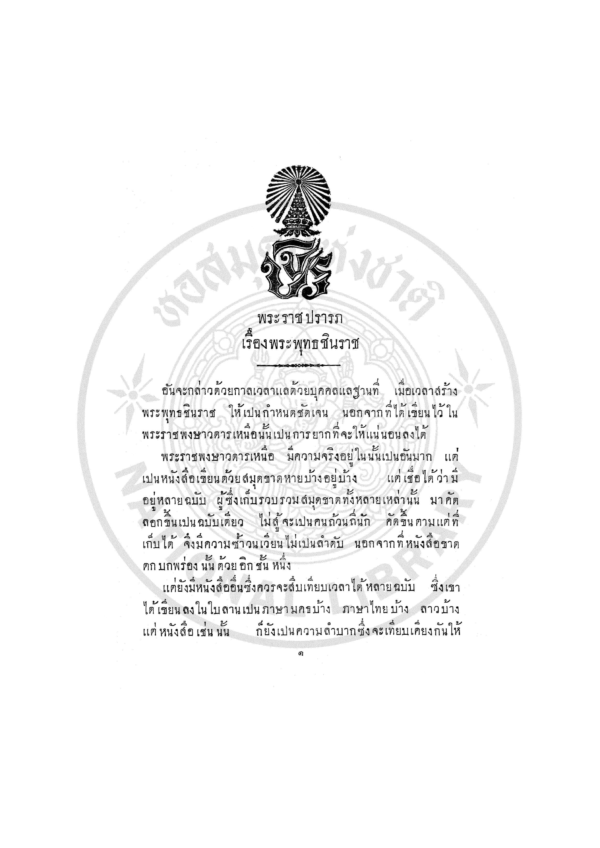 - พระราชปรารภ เรื่อง พระพุทธชินราช