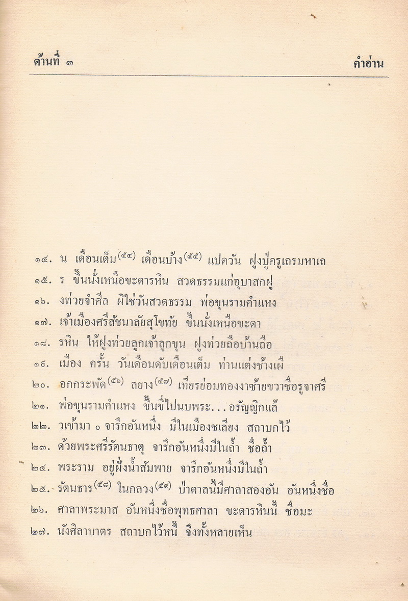 - ศิลาจารึกพ่อขุนรามคำแหง แบ่งออกเป็น 3 ตอน