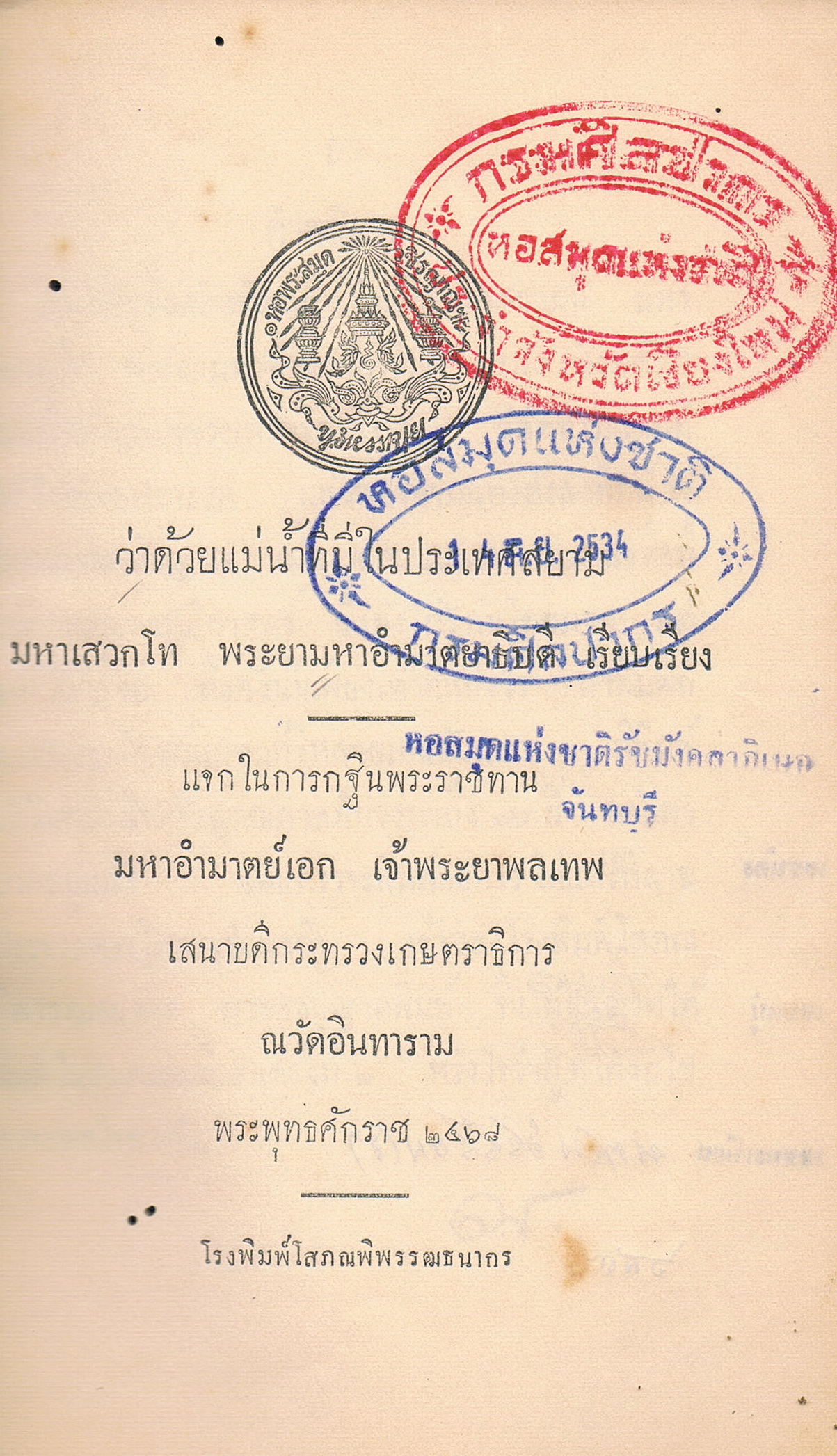 มหาอำมาตยาธิบดี, พระยา, “ว่าด้วยแม่น้ำในประเทศสยาม,” D-Library | National Library of Thailand, accessed April 2, 2026, http://164.115.27.97/digital2024/items/show/3249.