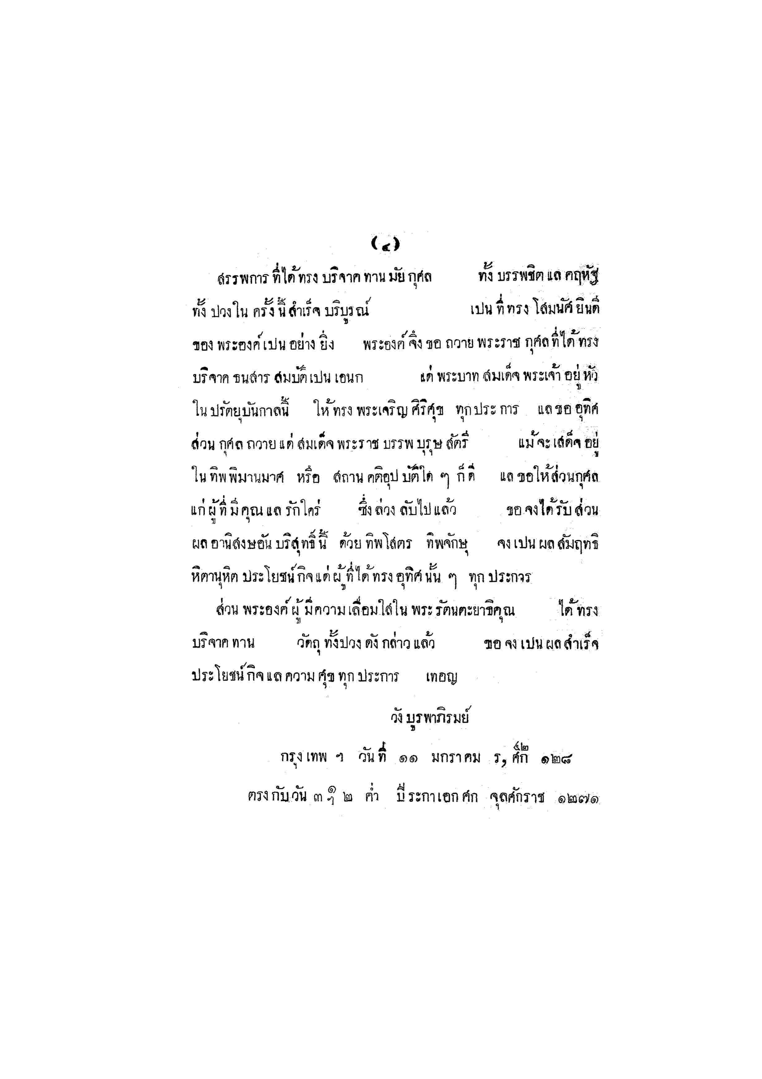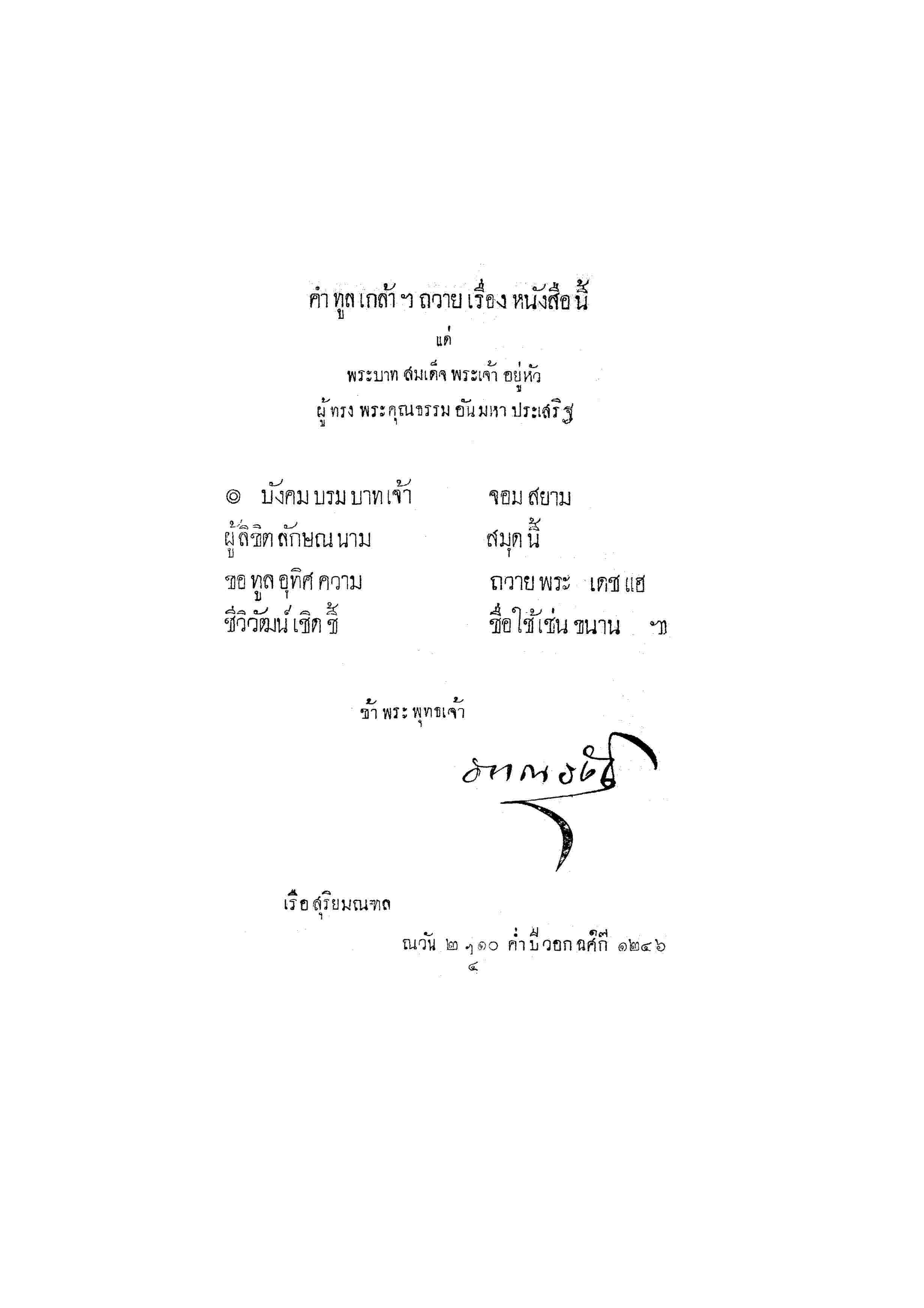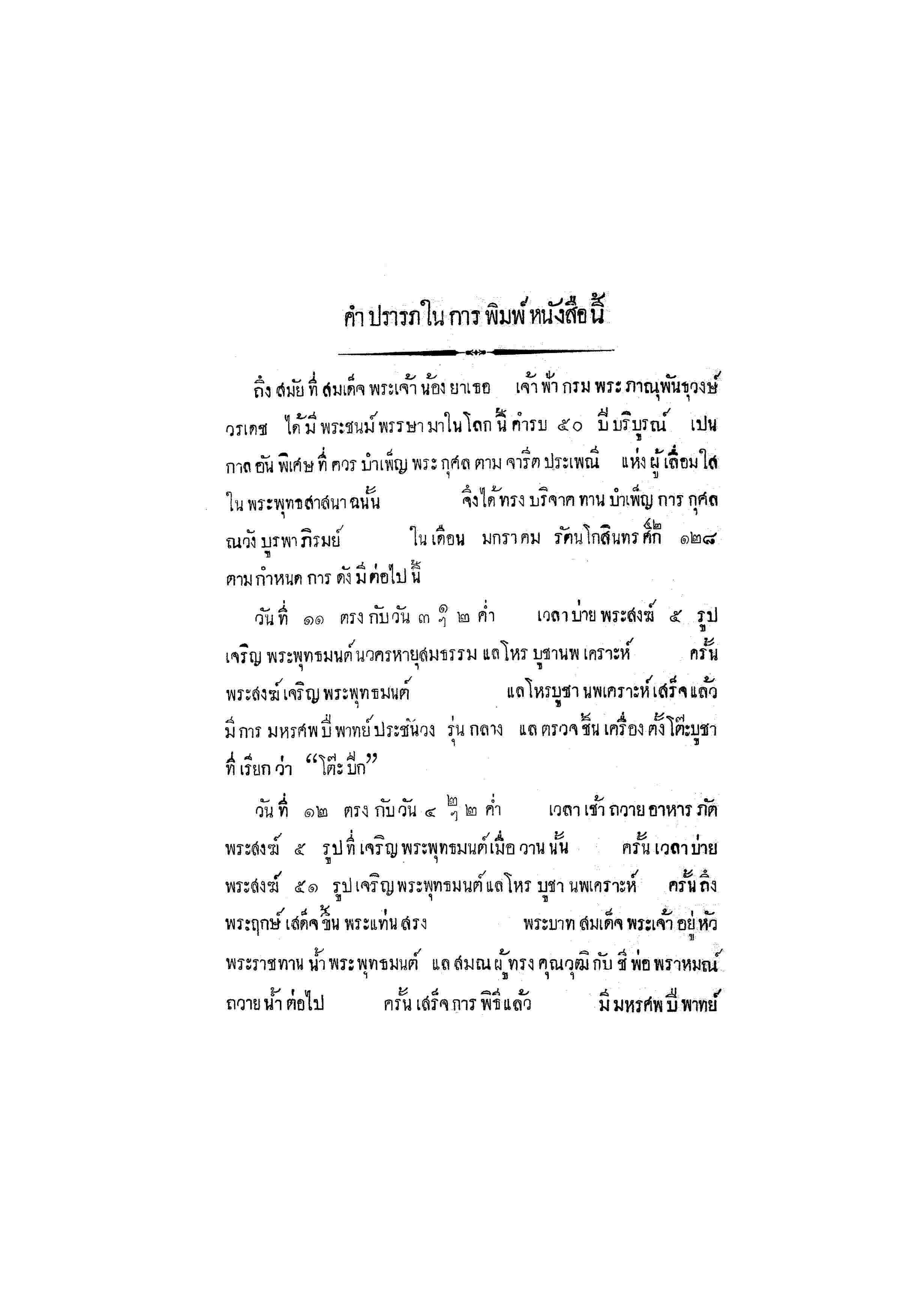 - พระบาทสมเด็จพระเจ้าอยู่หัว ทรงพระกรุณาโปรดเกล้าฯ ให้พิมพ์พระราชทานในงานทรงบำเพ็ญพระราชกุศล ปัญญาสมวาร พระศพสมเด็จพระราชปิตุลา บรมพงศาภิมุข ณ วันที่ 2 สิงหาคม พ.ศ.2471