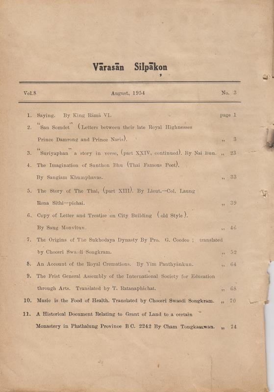 กรมศิลปากร, “วารสารศิลปากร 8,3(ส.ค.2497),” D-Library | National Library of Thailand, accessed April 2, 2026, http://164.115.27.97/digital2024/items/show/3410.