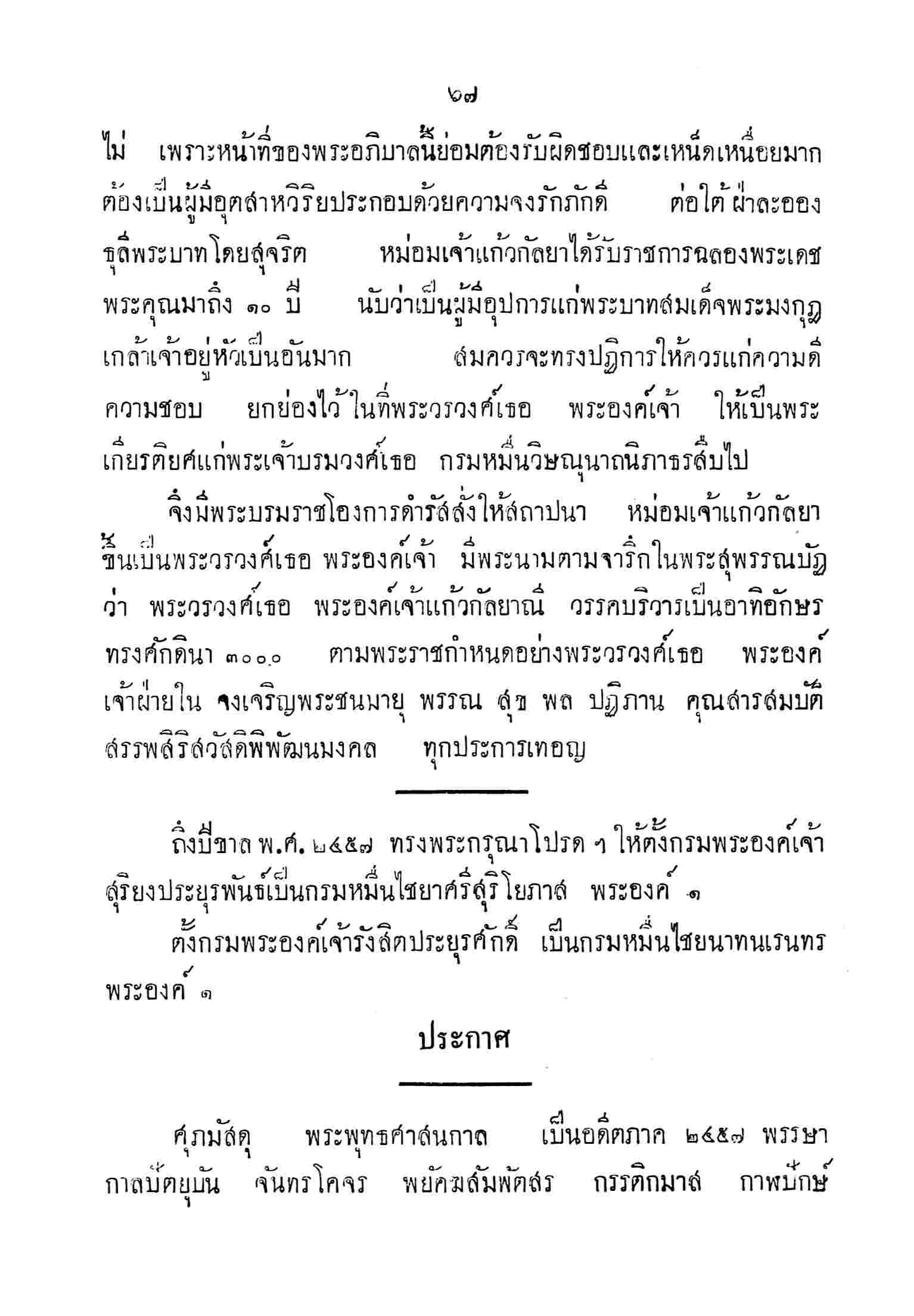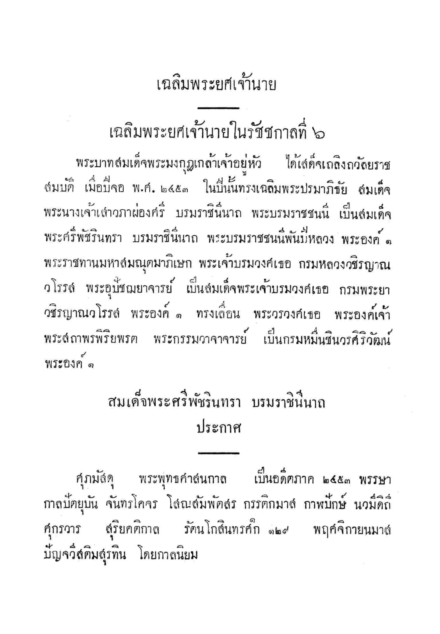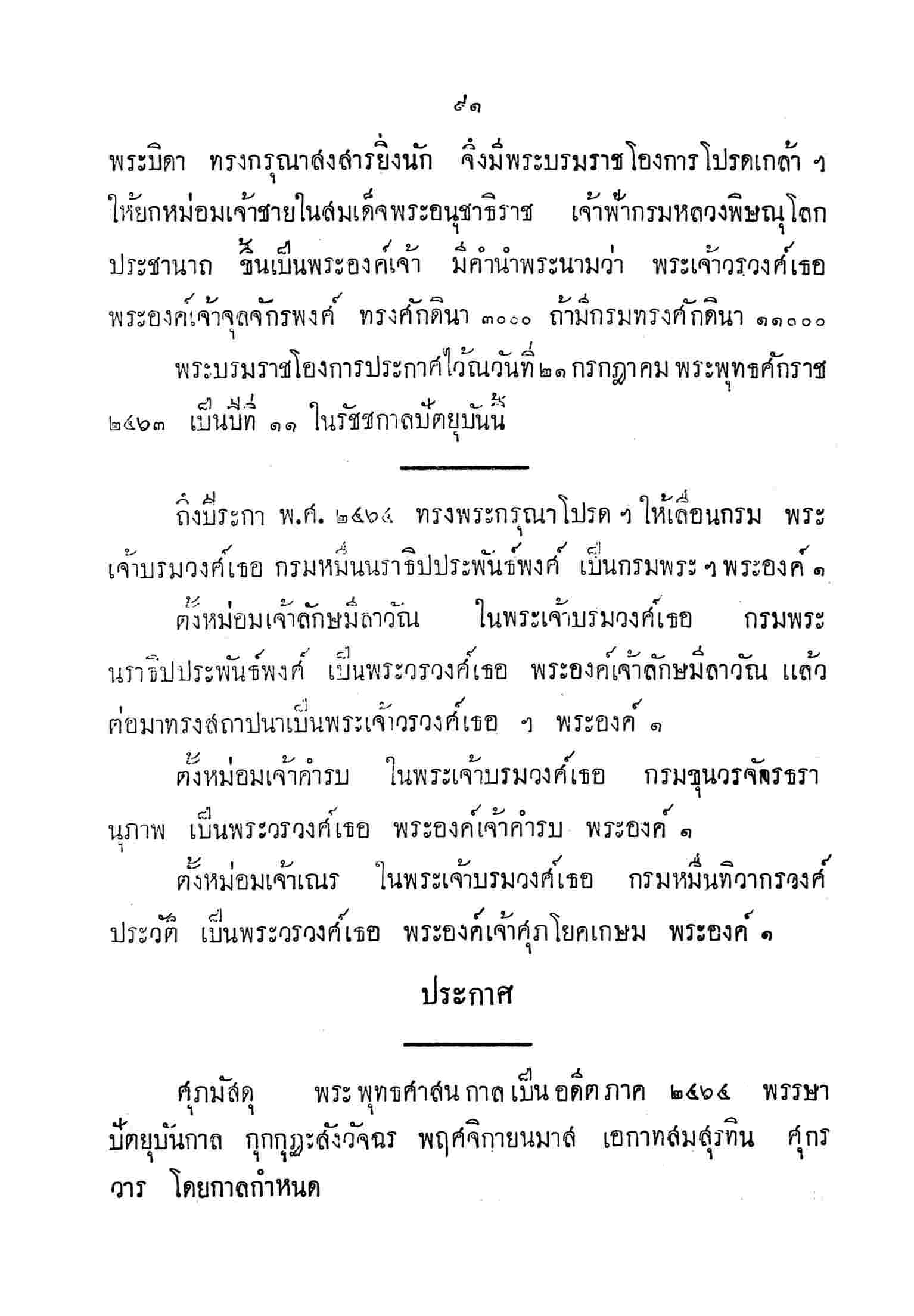 - อธิบายว่าด้วยยศเจ้า -- อธิบายว่าด้วยการเฉลิมพระยศเจ้านาย