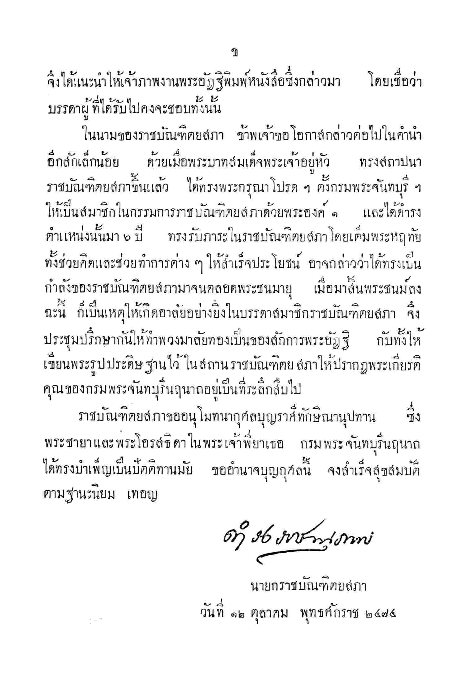 - พิมพ์ในงานรับพระอัฏฐิ พระเจ้าพี่ยาเธอ กรมพระจันทบุรีนฤนาถ เมื่อปีมะแม พ.ศ.2474