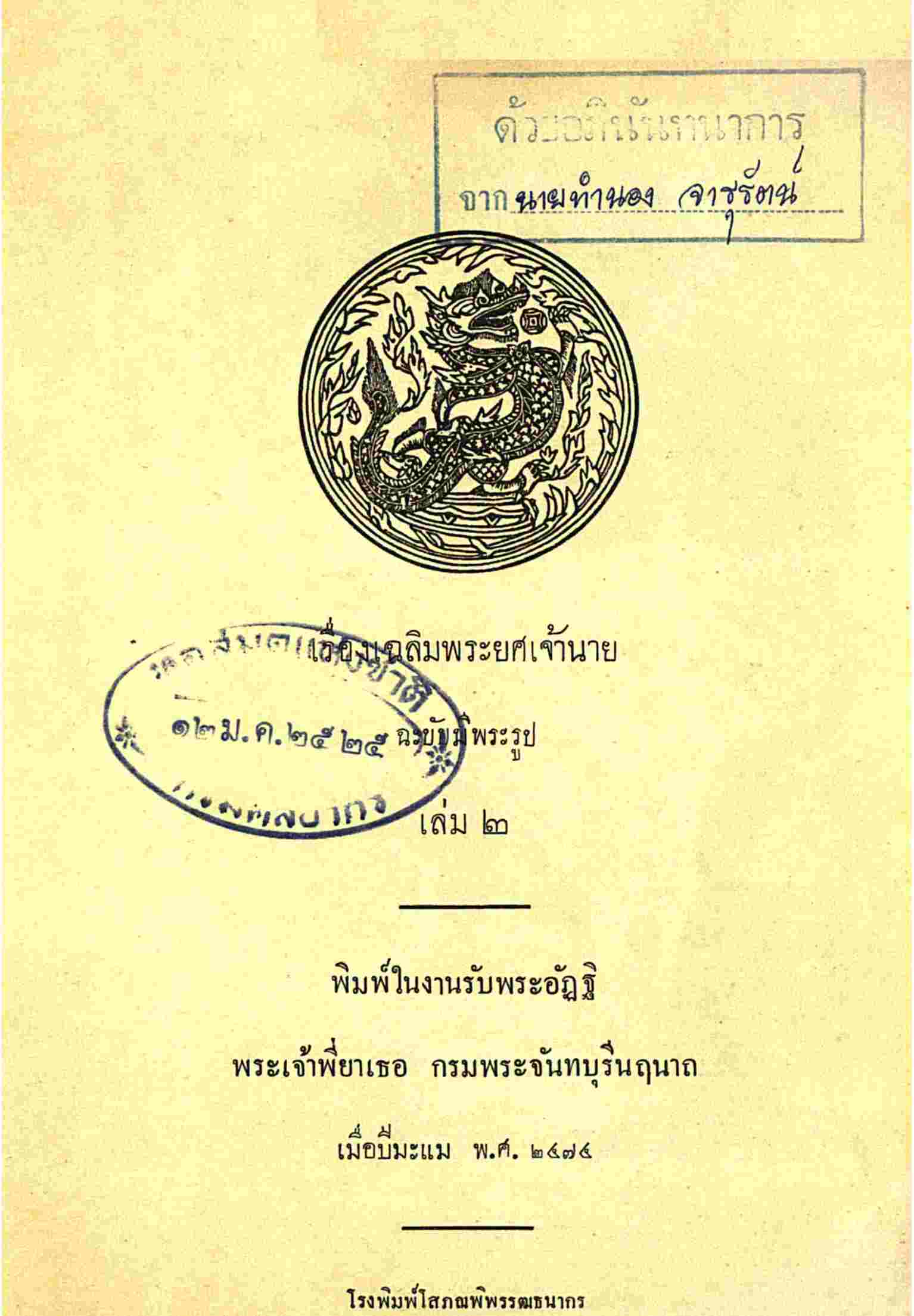 “เรื่องเฉลิมพระยศเจ้านาย ฉะบับมีพระรูป เล่ม2,” D-Library | National Library of Thailand, accessed April 2, 2026, http://164.115.27.97/digital2024/items/show/3569.