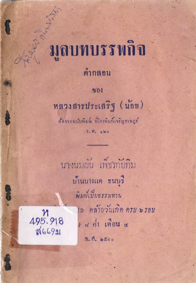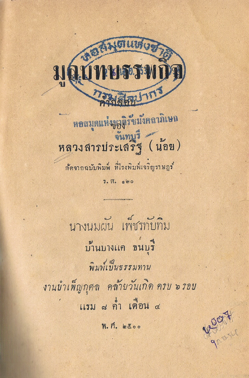 สารประเสริฐ, หลวง, “มูลบทบรรพกิจ คำกลอน,” D-Library | National Library of Thailand, accessed April 2, 2026, http://164.115.27.97/digital2024/items/show/3636.