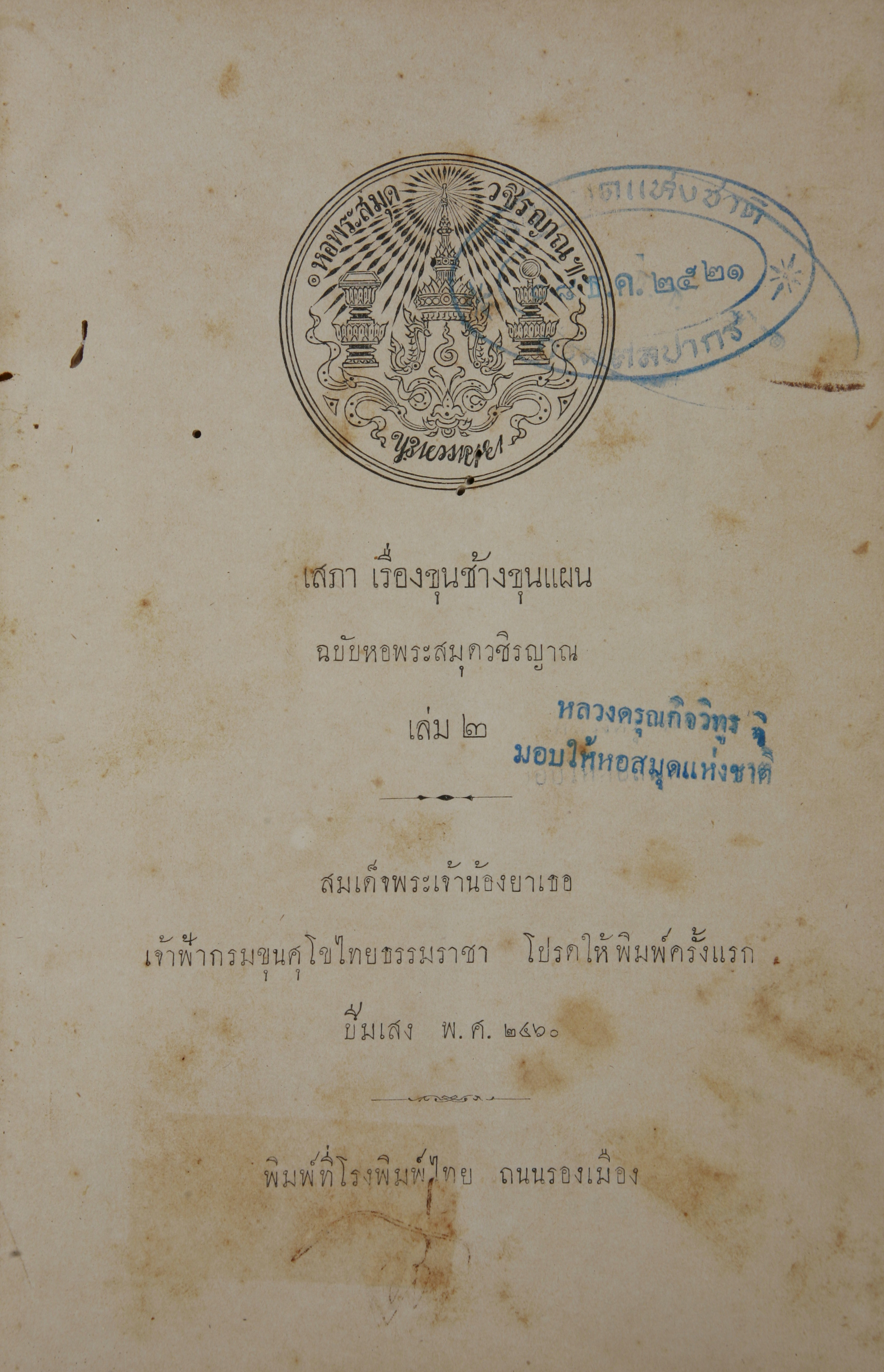 หอพระสมุดวชิรญาณ, “เสภาเรื่องขุนช้างขุนแผน ฉบับหอพระสมุด วชิรญาณ เล่ม ๒,” D-Library | National Library of Thailand, accessed April 2, 2026, http://164.115.27.97/digital2024/items/show/3642.
