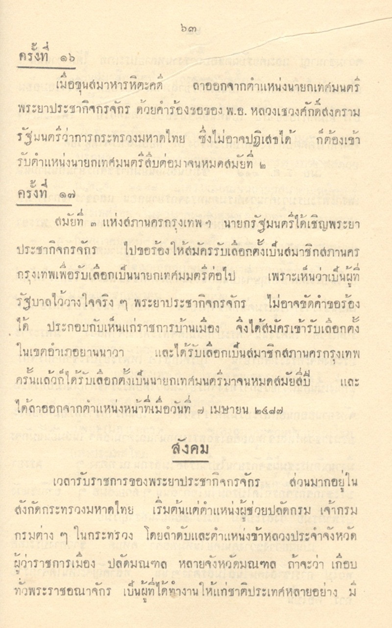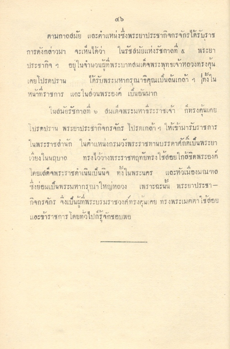 - เป็นหนังสือที่กล่าวถึงประวัติของมหาอำมาตย์ตรี พระยาประชากิจกรจักร์ (ชุบ โอสถานนท์) โดยเริ่มตั้งแต่วัน เดือน ปี สถานที่เกิด การศึกาษา รับราชการตั้งแต่สมัยรัชกาลที่ 5 - รัชกาลที่ 8 อย่างละเอียด ราชการพิเศษรวม 17 ครั้ง ด้านสังคม สรุปความก่้าวหน้าในตำแหน่งหน้าที่ราชการ ตั้งแต่รัชกาลที่ 5 - รัชกาลที่ 8 การสมรส บันดาศักดิ์ ยศพลเรือน ยศในกองเสือป่า และเครื่องอิสสริยาภรณ์