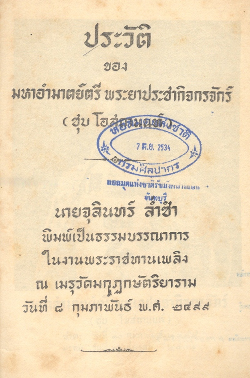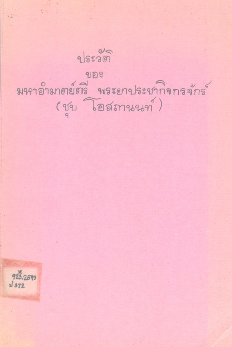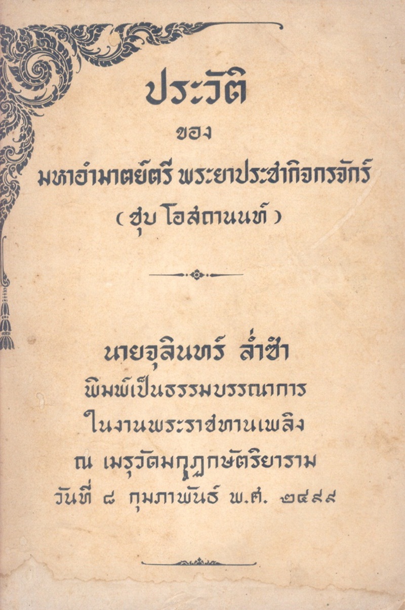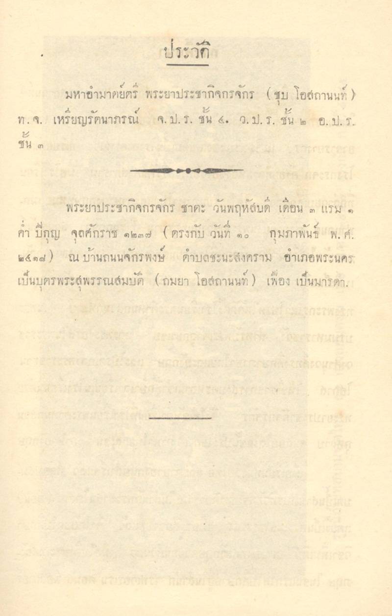 “ประวัติของมหาอำมาตย์ตรี พระยาประชากิจกรจักร์ (ชุบ โอสถานนท์),” D-Library | National Library of Thailand, accessed April 2, 2026, http://164.115.27.97/digital2024/items/show/3717.