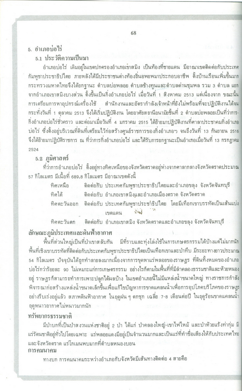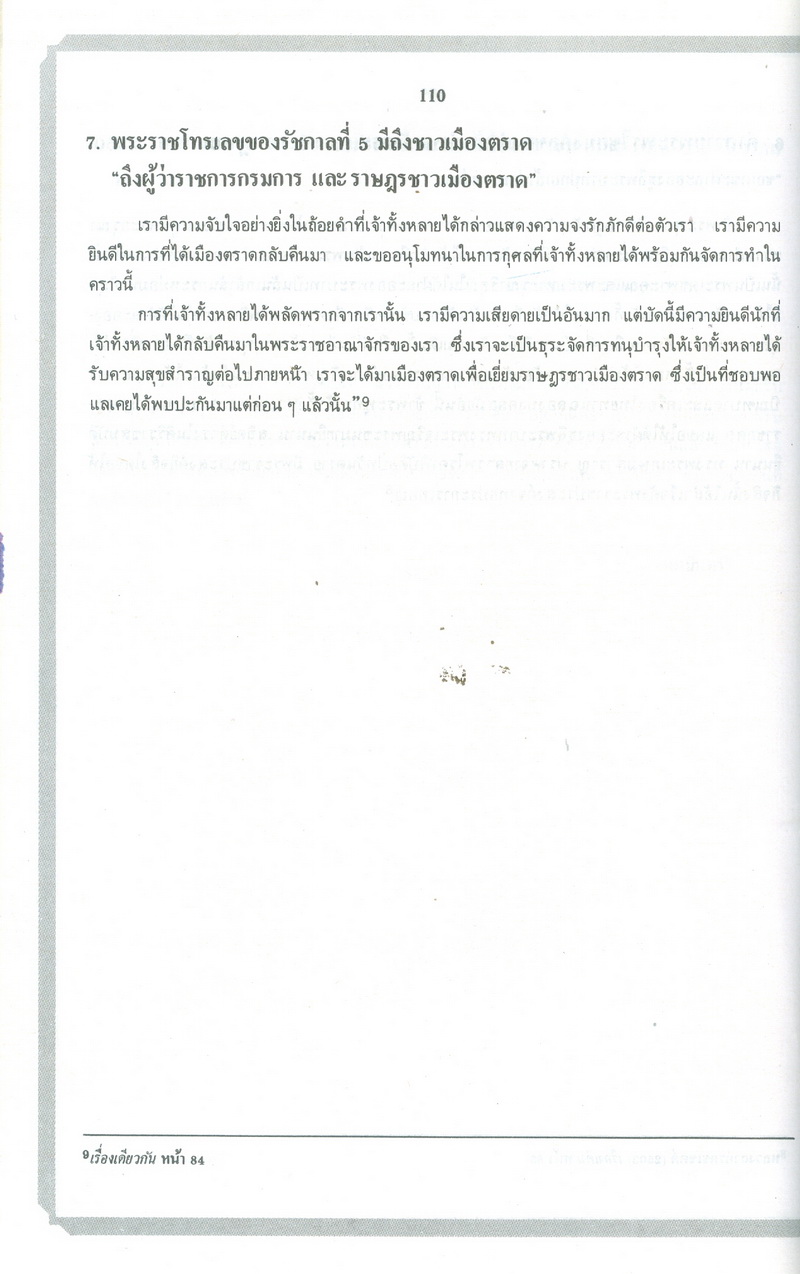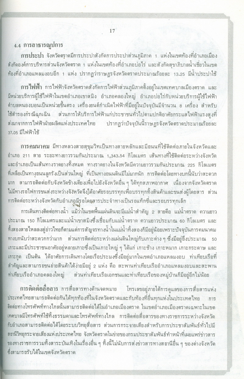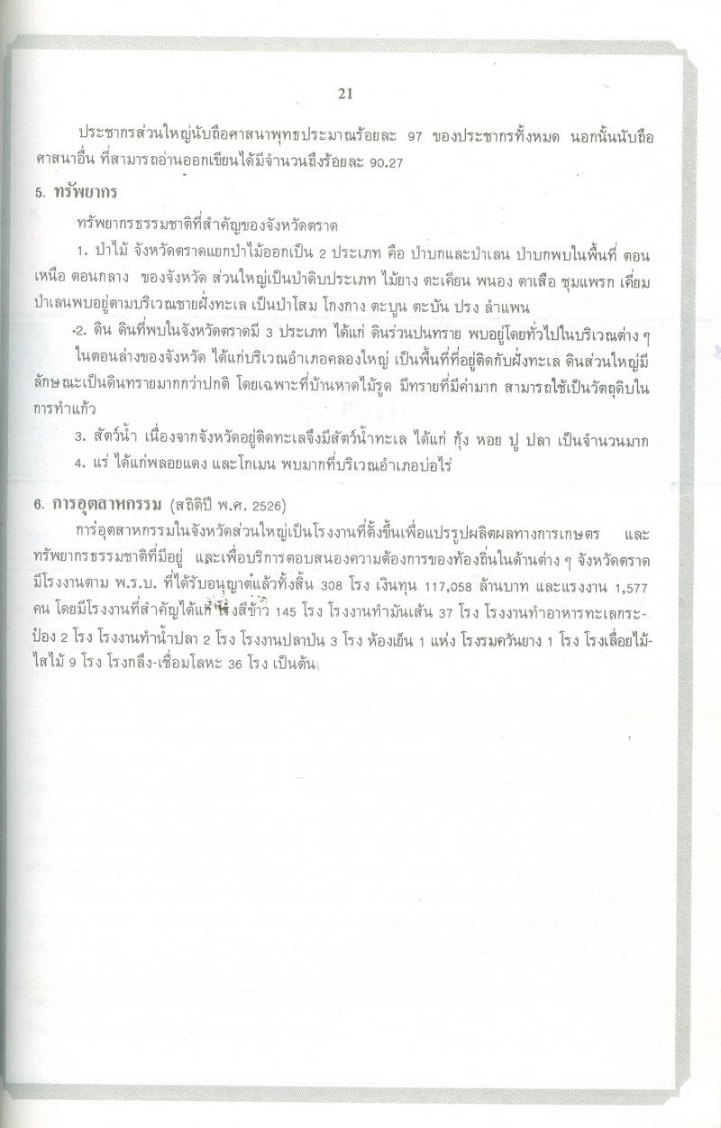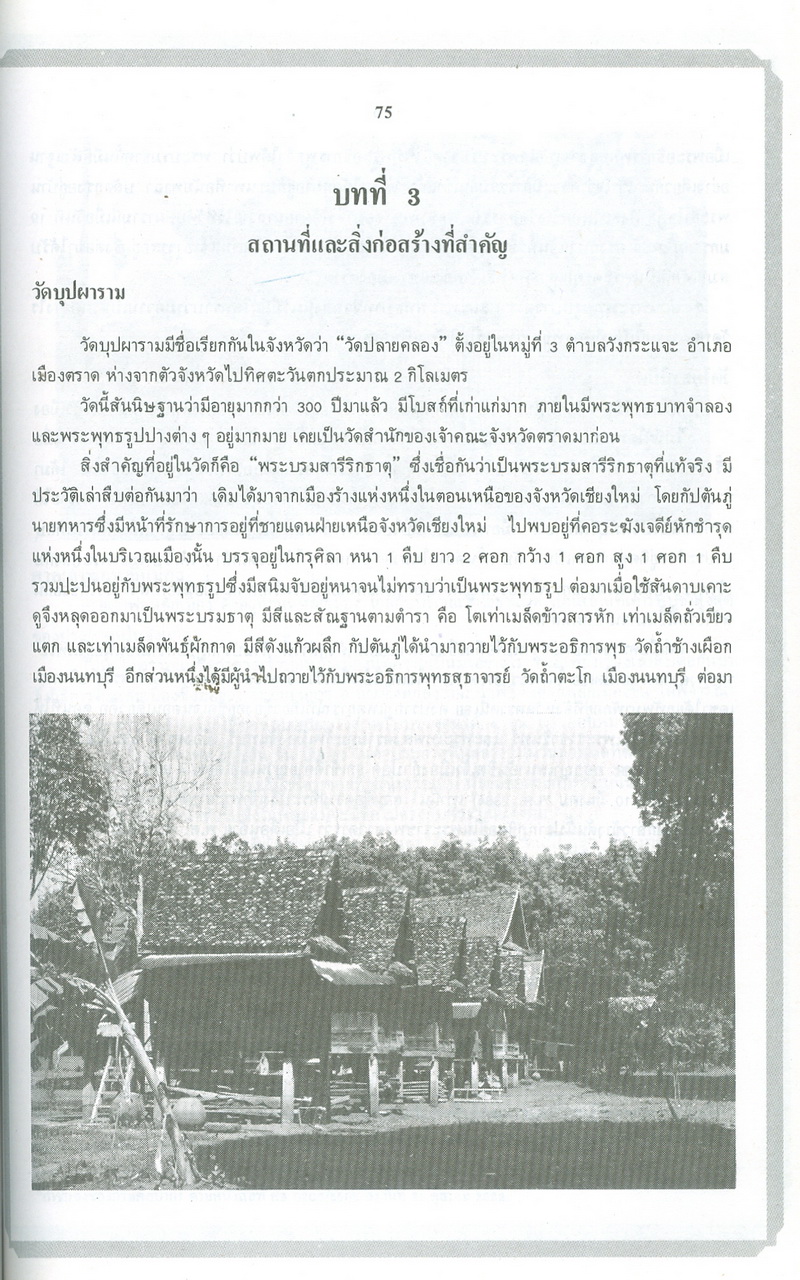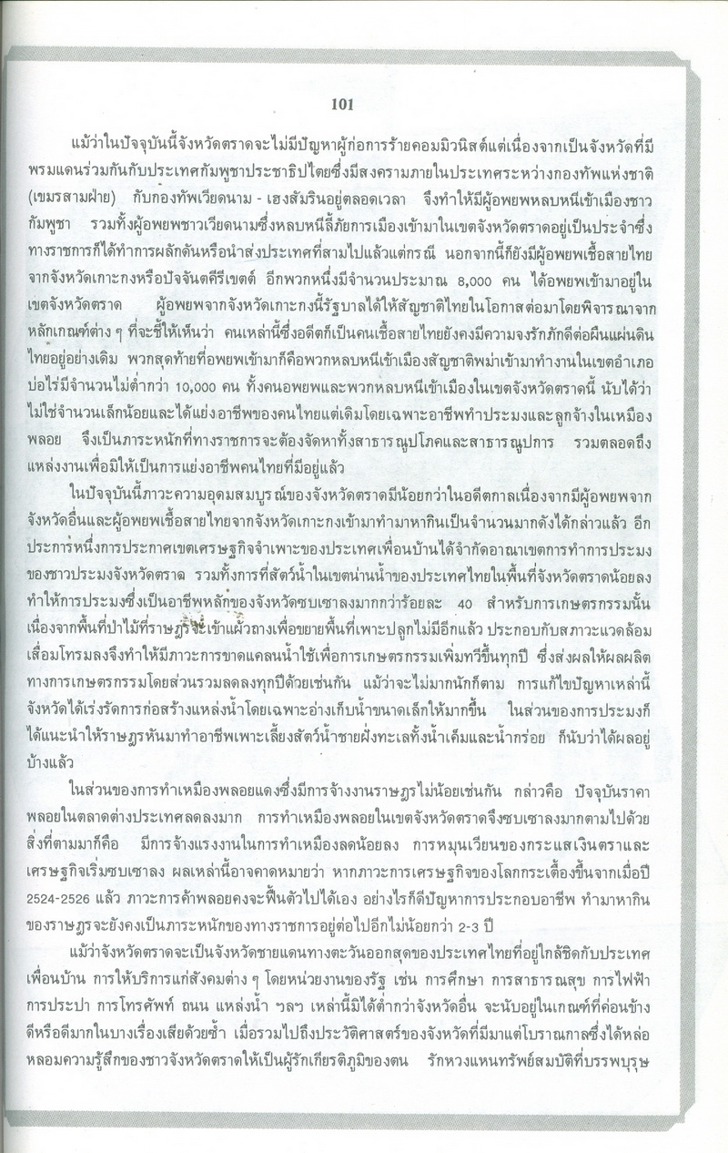 - หนังสือแนะนำเรื่องราวในอดีตและปัจจุบันของจังหวัดตราดตามเค้าโครงที่กระทรวงมหาดไทยได้กำหนด ซึ่งได้แก่ สภาพโดยทั่วไปของจังหวัดตราด ภูมิรัฐศาสตร์ของจังหวัดตราด ประวัติความเป็นมาในสมัยต่างๆ ประวัติมหาดไทยส่วนภูมิภาคในอำเภอต่างๆ สถานที่และสิ่งก่อสร้างที่สำคัญ และบุคคลสำคัญของจังหวัดตราด