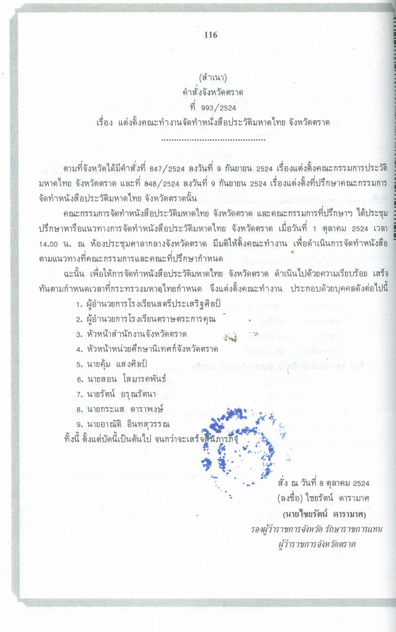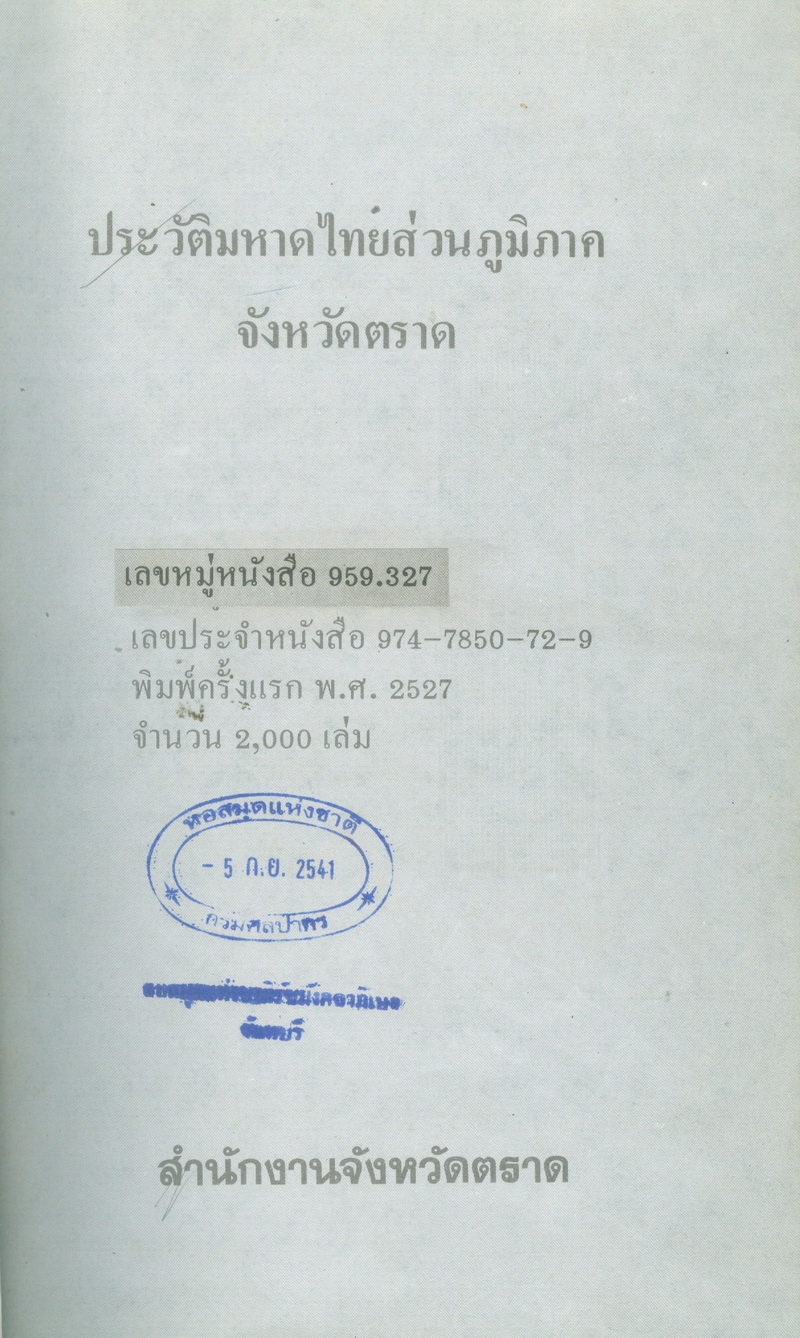 สำนักงานจังหวัดตราด, “ประวัติมหาดไทยส่วนภูมิภาคจังหวัดตราด,” D-Library | National Library of Thailand, accessed April 2, 2026, http://164.115.27.97/digital2024/items/show/3722.
