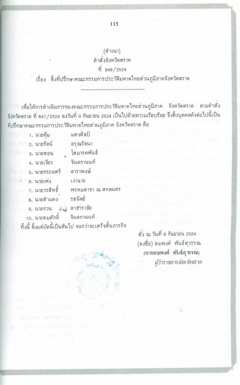 - ประวัติมหาดไทยส่วนภูมิภาคจังหวัดตราด