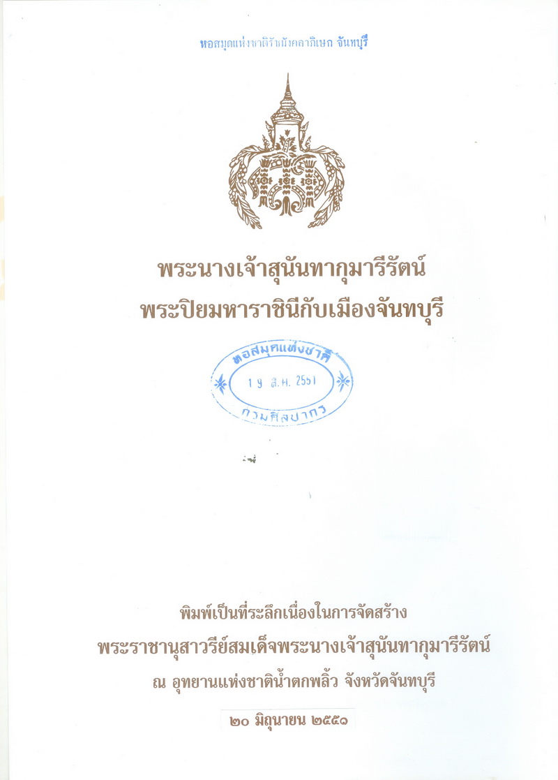 กรวีร์ มายะรังษี, “พระนางเจ้าสุนันทากุมารีรัตน์พระปิยมหาราชินีกับเมืองจันทบุรี,” D-Library | National Library of Thailand, accessed April 2, 2026, http://164.115.27.97/digital2024/items/show/4048.