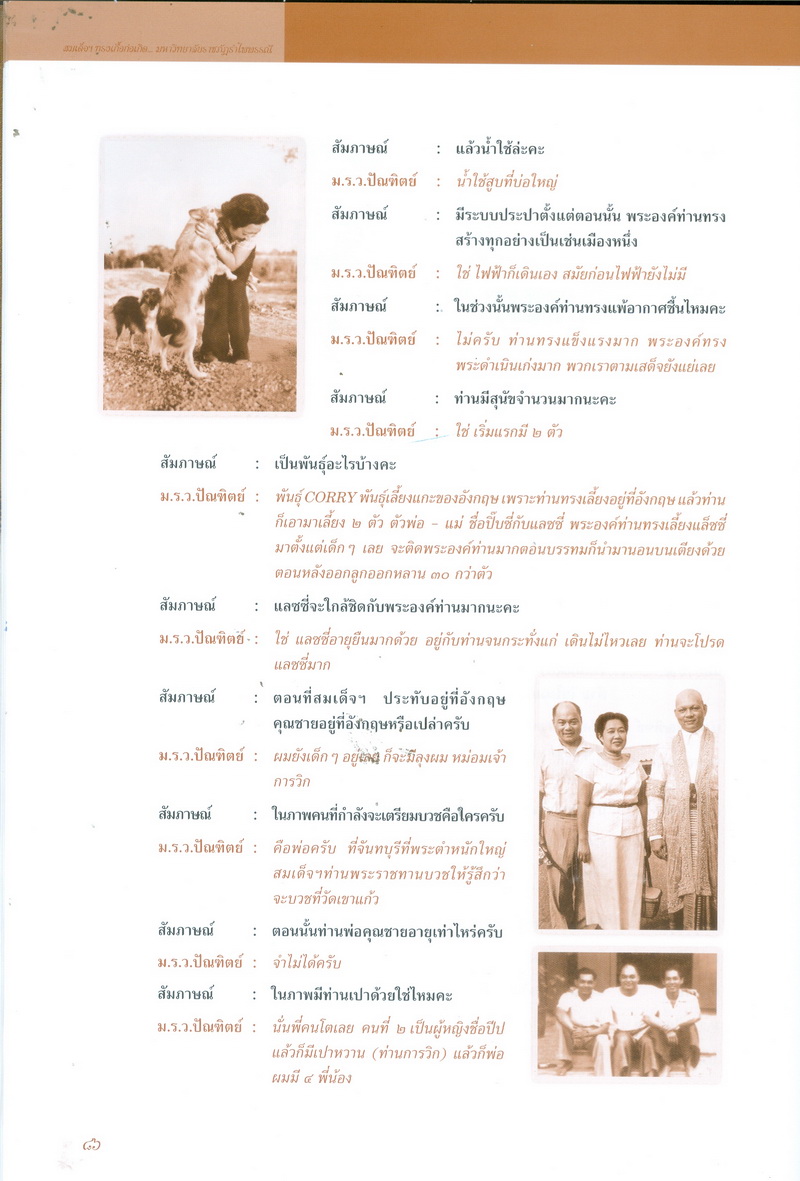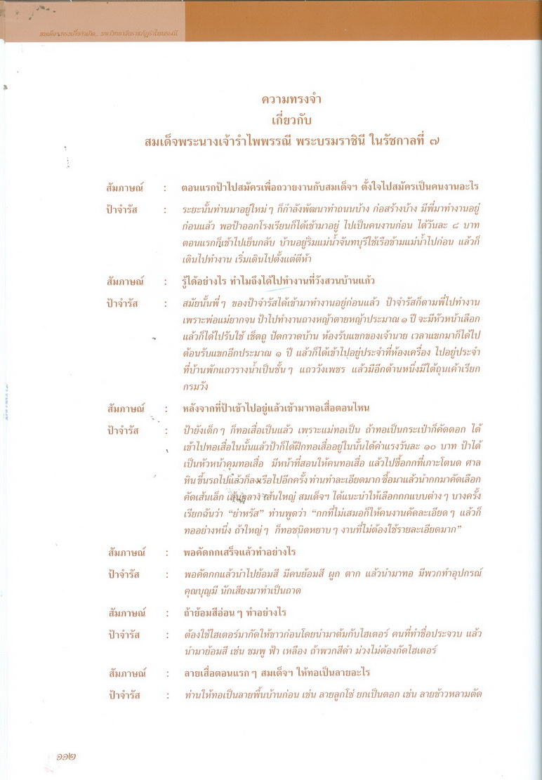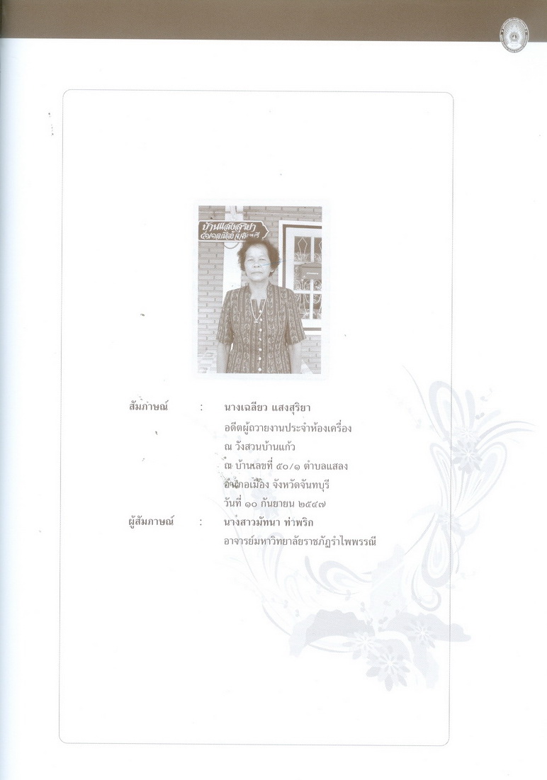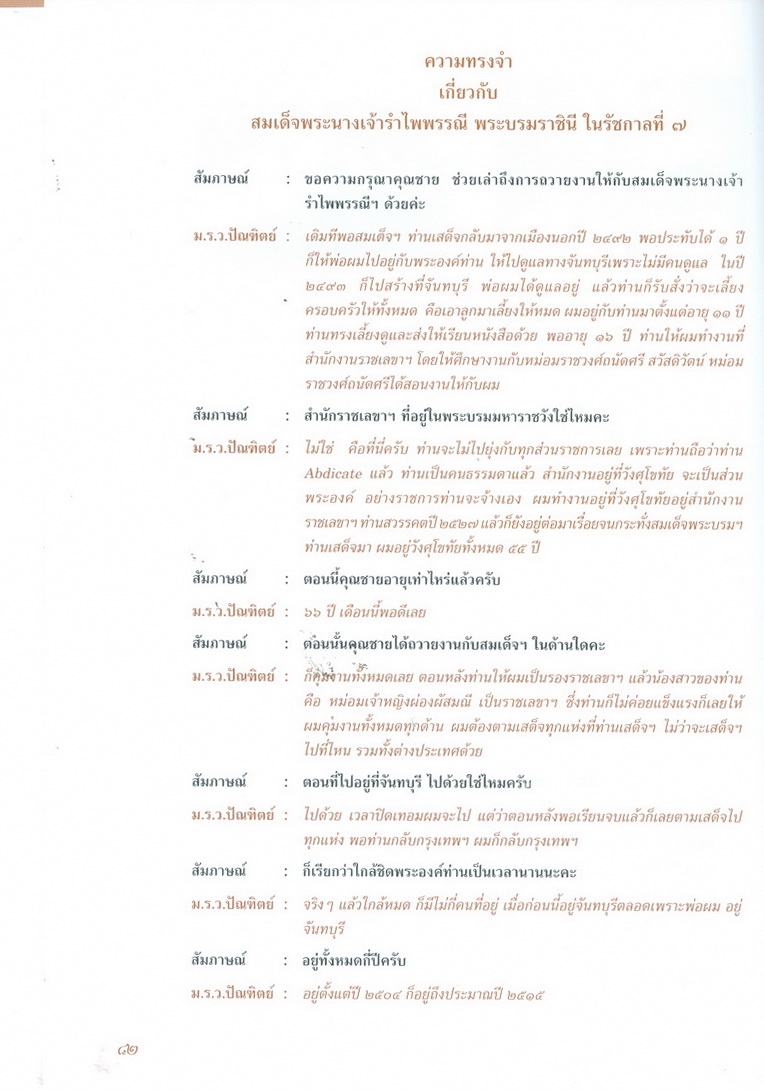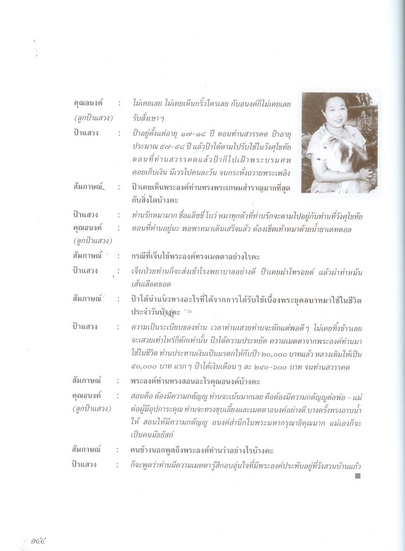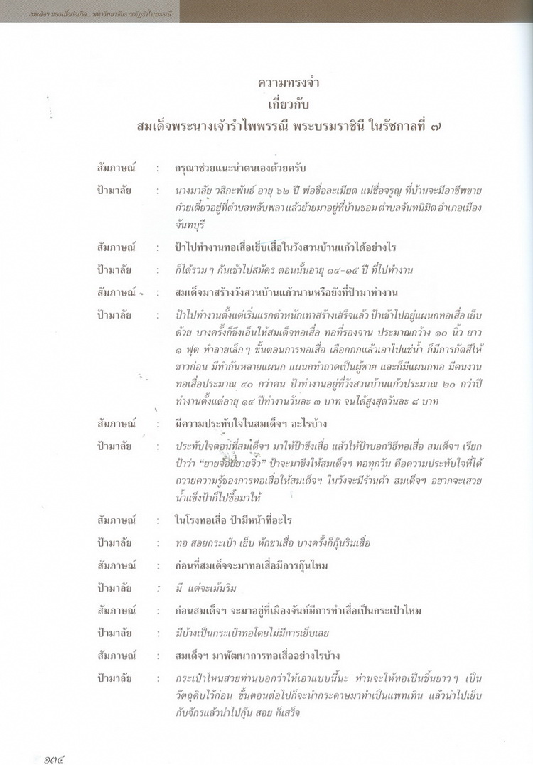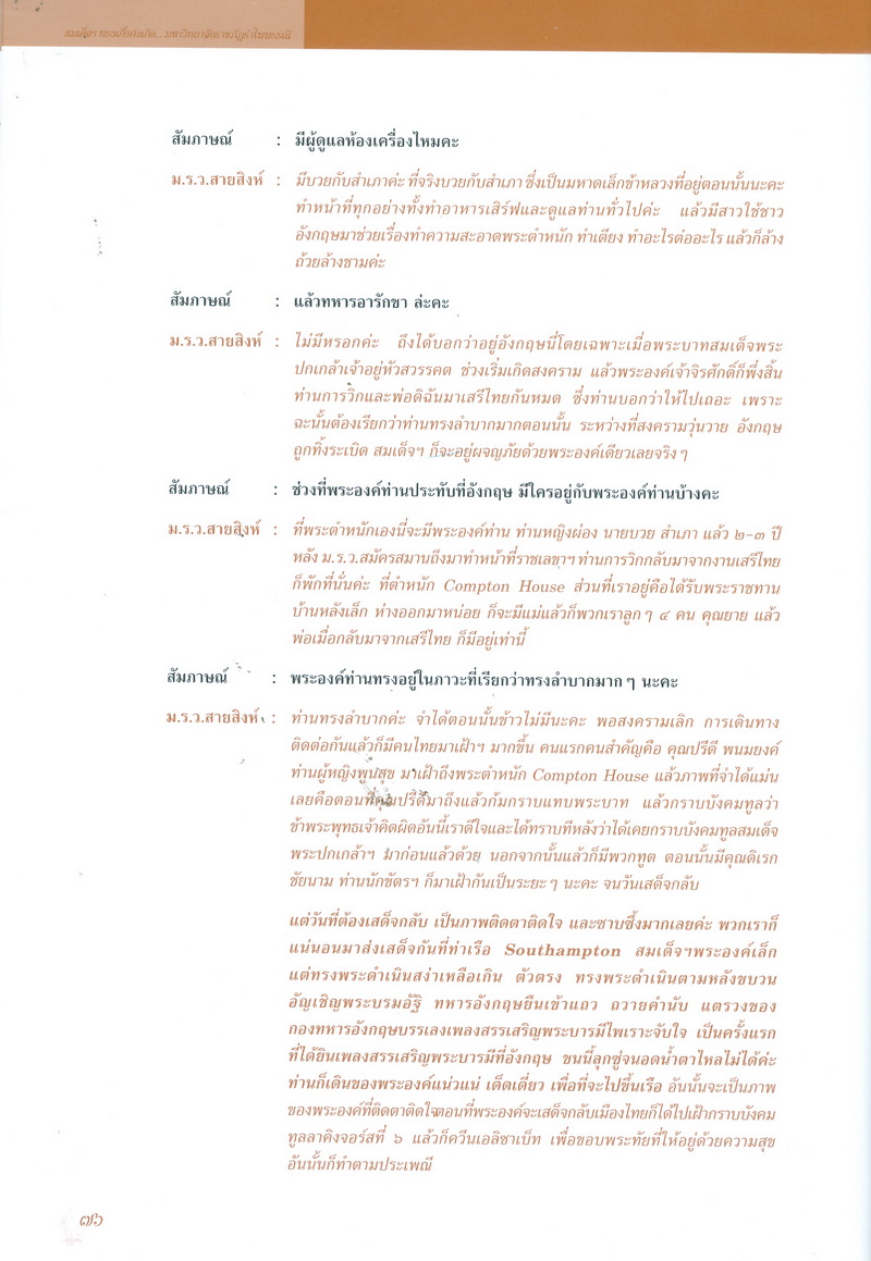 - เป็นพระราชประวัติ สมเด็จพระนางเจ้ารำไพพรรณี พระบรมราชินีในรัชกาลที่7 ในลักษณะข้อมูลประวัติศาสตร์บอกเล่า โดยเริ่มตั้งแต่พระราชสมภพ เสด๊จไปประทับที่พระตำหนักสวนสี่ฤดู ทรงอภิเษกสมรสกับพระบาทสมเด็จพระปกเกล้าเจ้าอยู่หัวรัชกาลที่7 และประทับอยู่ที่พระตำหนักวังศุโขทัย มีการเปลี่ยนแปลงการปกครองพระราชสวามีเสด็จสวรรคต สวนบ้านแก้ว และประทับ ณ วังศุโขทัยจวบจนเสด็จสวรรคต ต่อจากนั้นเป็นบทสัมภาษณ์พระประยูรญาติในฐานะที่ปรึกษา การจัดการหนังสือ สัมภาษณ์บุคลาผู้ถวายงานสมเด็จพระนางเจ้ารำไพพรรณี ณ จังหวัดจันทบุรี