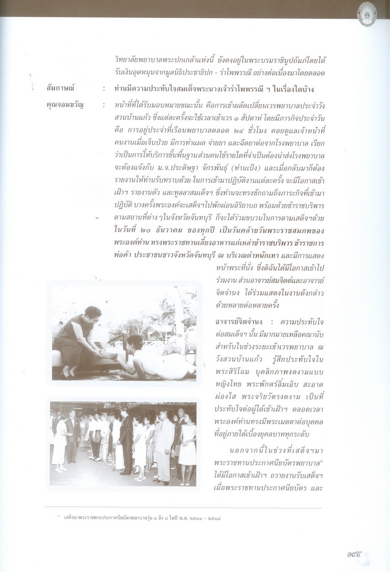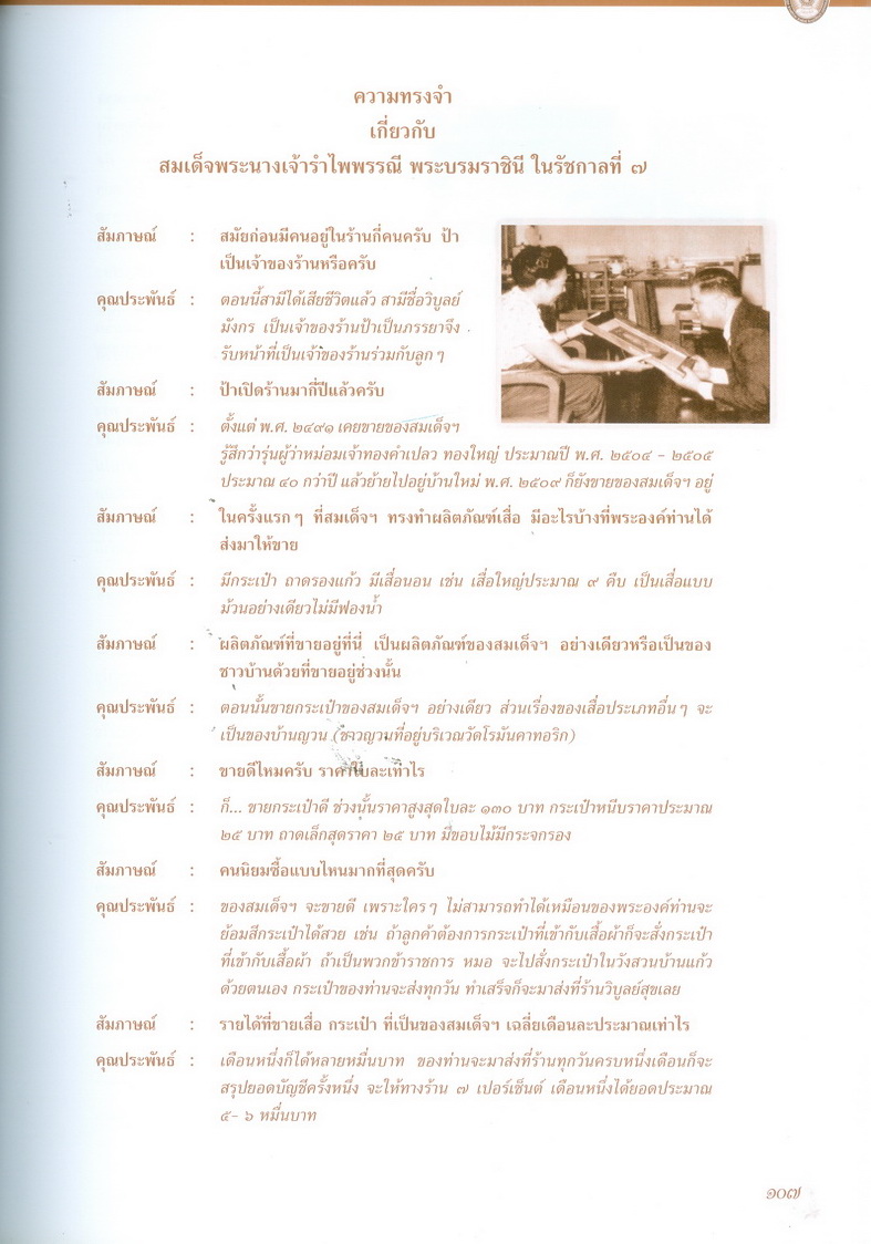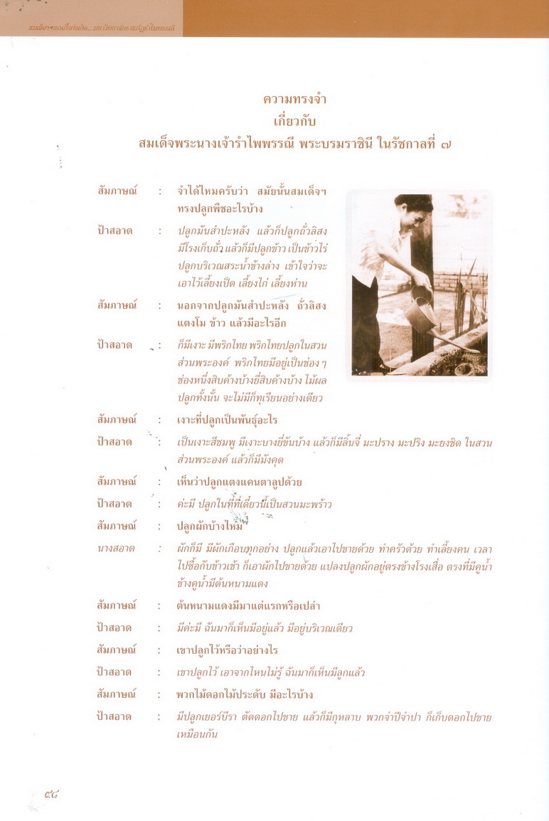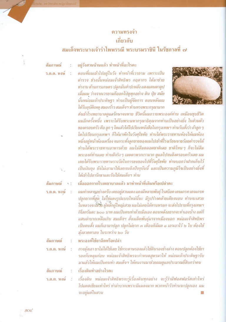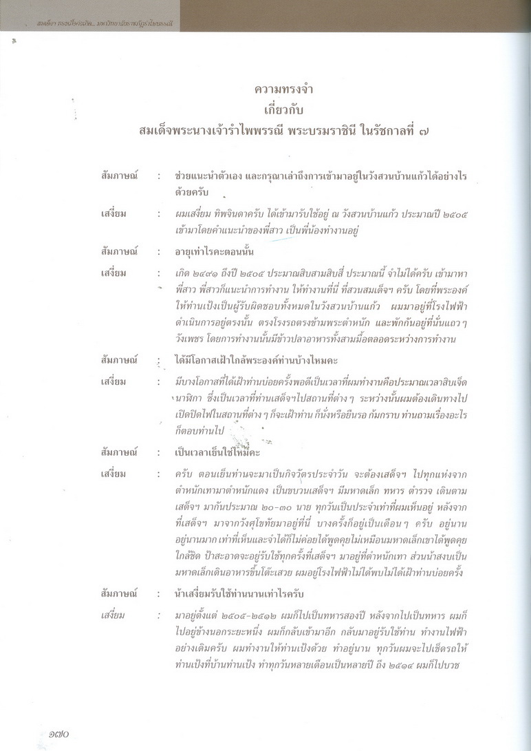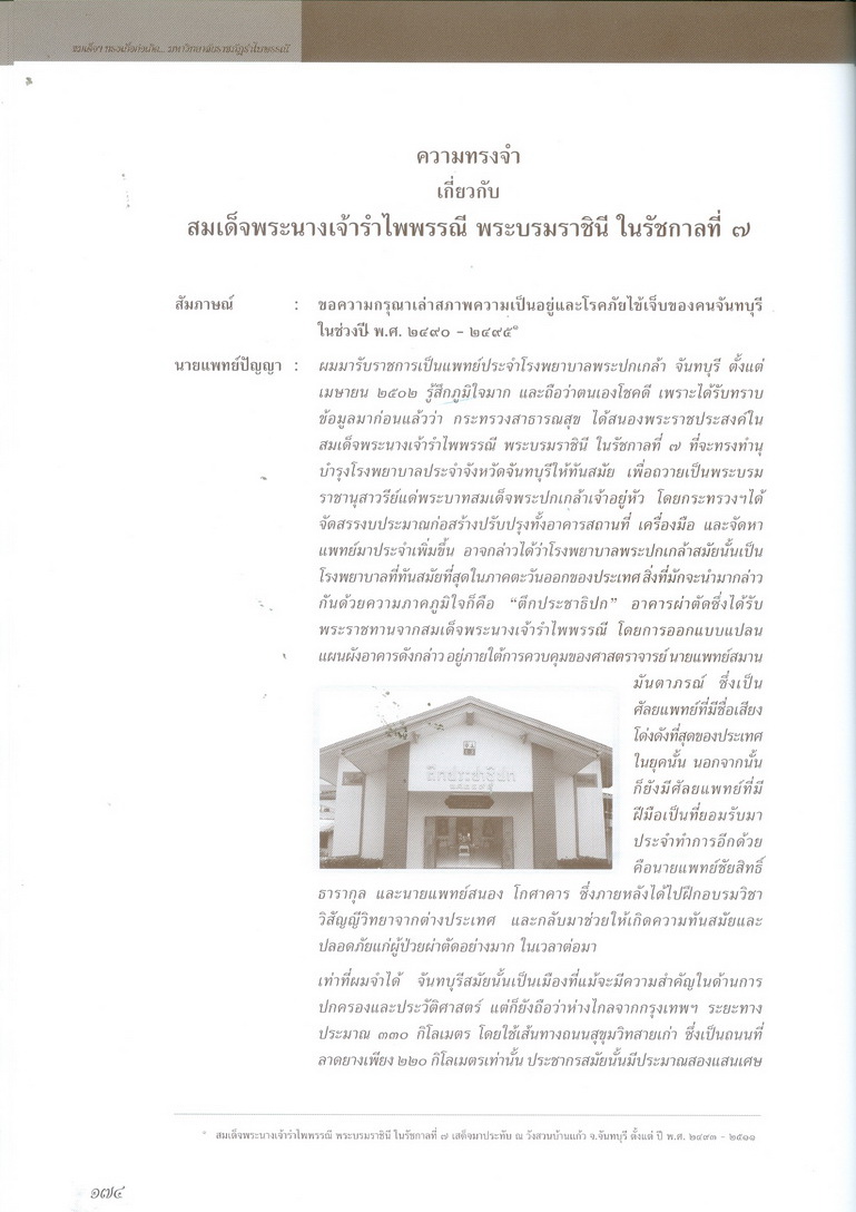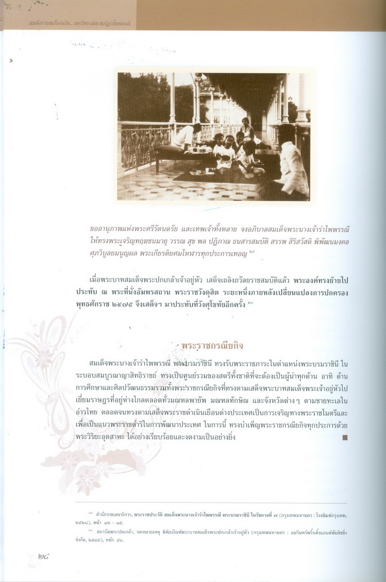 - เป็นพระราชประวัติ สมเด็จพระนางเจ้ารำไพพรรณี พระบรมราชินีในรัชกาลที่7 ในลักษณะข้อมูลประวัติศาสตร์บอกเล่า โดยเริ่มตั้งแต่พระราชสมภพ เสด๊จไปประทับที่พระตำหนักสวนสี่ฤดู ทรงอภิเษกสมรสกับพระบาทสมเด็จพระปกเกล้าเจ้าอยู่หัวรัชกาลที่7 และประทับอยู่ที่พระตำหนักวังศุโขทัย มีการเปลี่ยนแปลงการปกครองพระราชสวามีเสด็จสวรรคต สวนบ้านแก้ว และประทับ ณ วังศุโขทัยจวบจนเสด็จสวรรคต ต่อจากนั้นเป็นบทสัมภาษณ์พระประยูรญาติในฐานะที่ปรึกษา การจัดการหนังสือ สัมภาษณ์บุคลาผู้ถวายงานสมเด็จพระนางเจ้ารำไพพรรณี ณ จังหวัดจันทบุรี