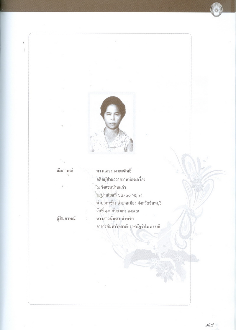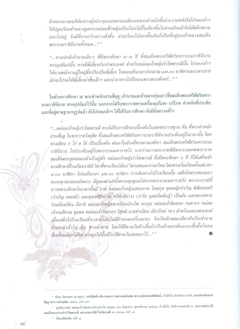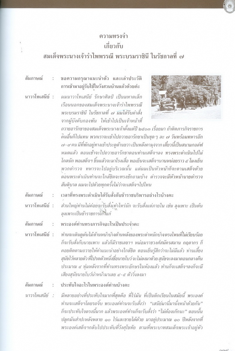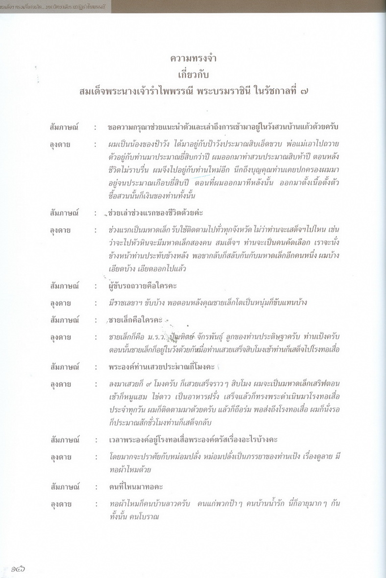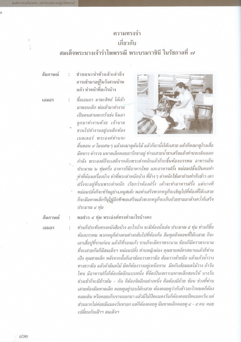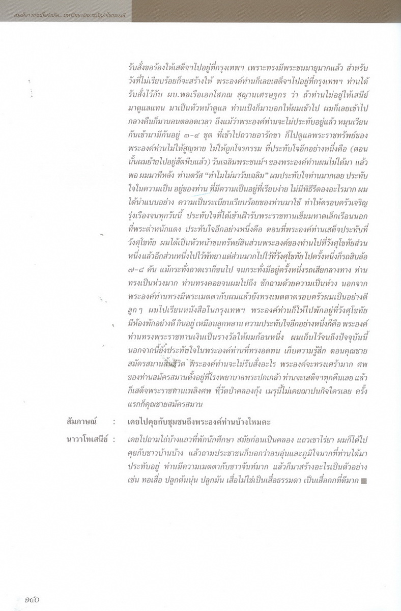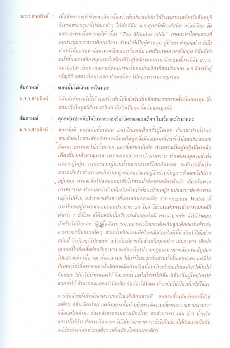 - เป็นพระราชประวัติ สมเด็จพระนางเจ้ารำไพพรรณี พระบรมราชินีในรัชกาลที่7 ในลักษณะข้อมูลประวัติศาสตร์บอกเล่า โดยเริ่มตั้งแต่พระราชสมภพ เสด๊จไปประทับที่พระตำหนักสวนสี่ฤดู ทรงอภิเษกสมรสกับพระบาทสมเด็จพระปกเกล้าเจ้าอยู่หัวรัชกาลที่7 และประทับอยู่ที่พระตำหนักวังศุโขทัย มีการเปลี่ยนแปลงการปกครองพระราชสวามีเสด็จสวรรคต สวนบ้านแก้ว และประทับ ณ วังศุโขทัยจวบจนเสด็จสวรรคต ต่อจากนั้นเป็นบทสัมภาษณ์พระประยูรญาติในฐานะที่ปรึกษา การจัดการหนังสือ สัมภาษณ์บุคลาผู้ถวายงานสมเด็จพระนางเจ้ารำไพพรรณี ณ จังหวัดจันทบุรี