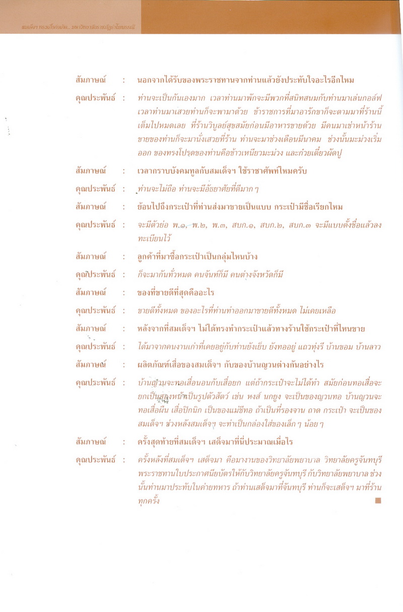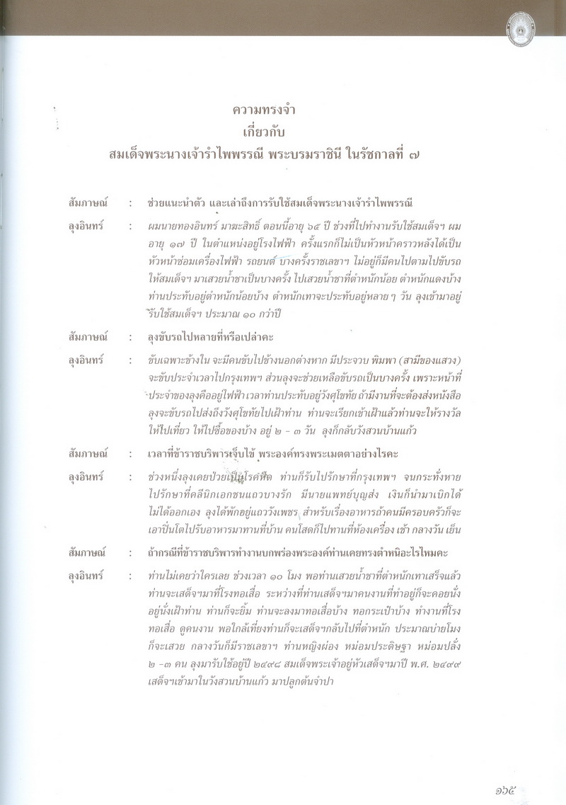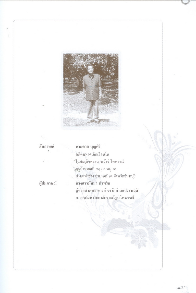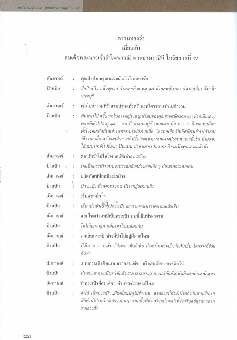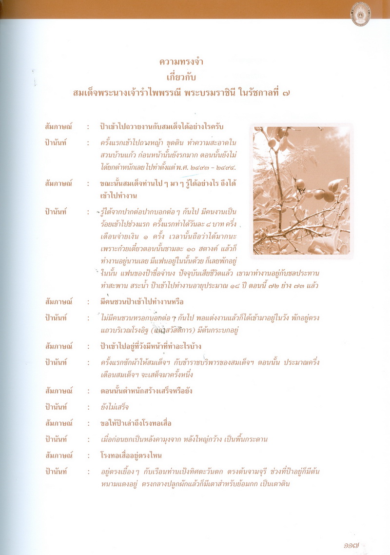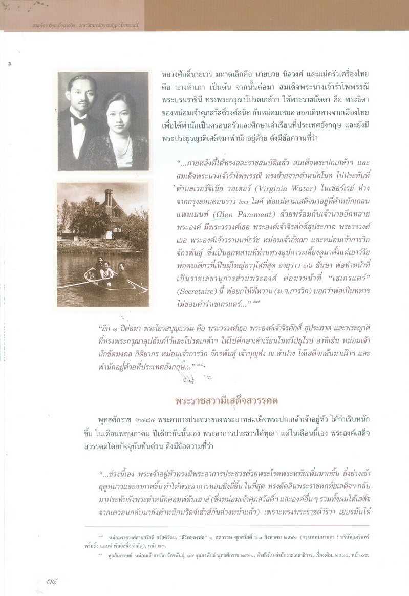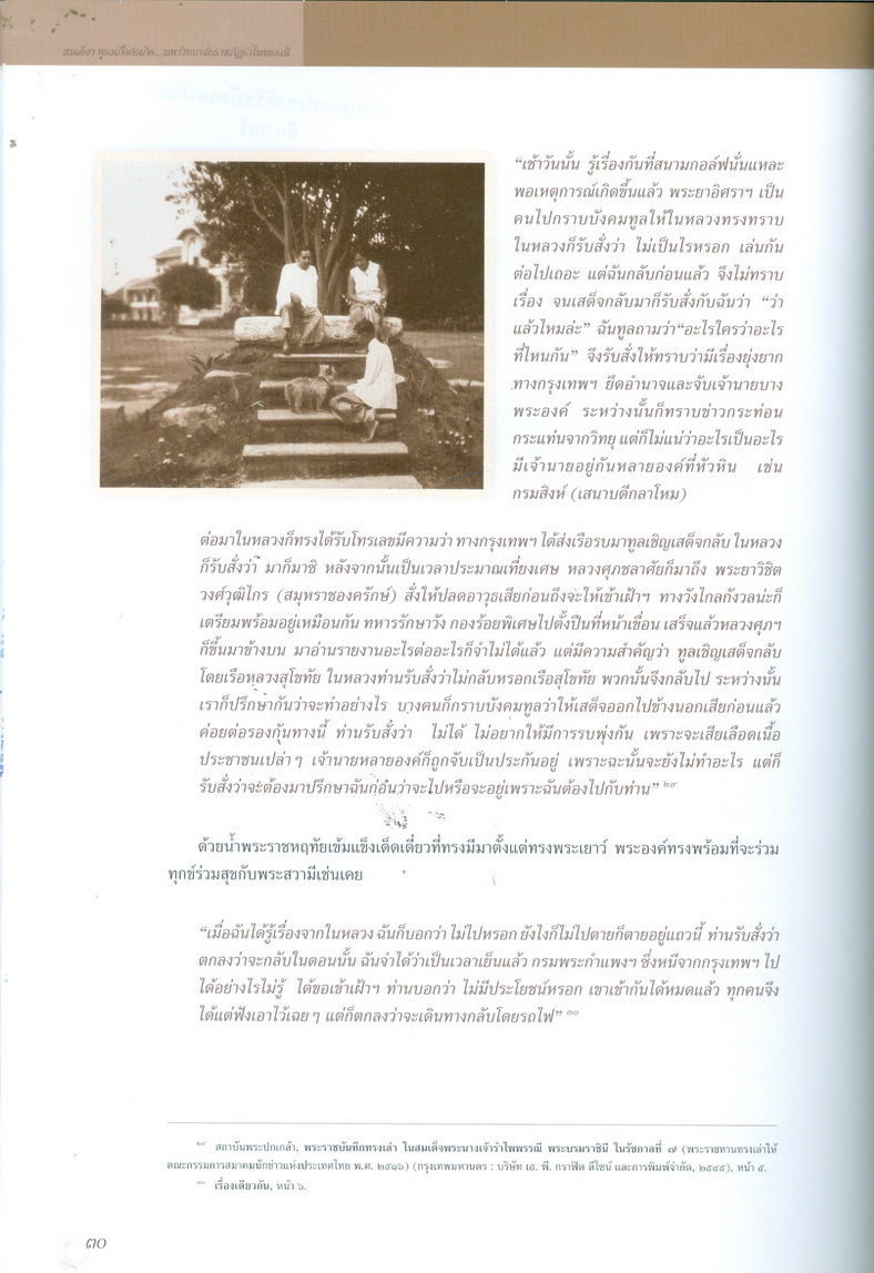 - เป็นพระราชประวัติ สมเด็จพระนางเจ้ารำไพพรรณี พระบรมราชินีในรัชกาลที่7 ในลักษณะข้อมูลประวัติศาสตร์บอกเล่า โดยเริ่มตั้งแต่พระราชสมภพ เสด๊จไปประทับที่พระตำหนักสวนสี่ฤดู ทรงอภิเษกสมรสกับพระบาทสมเด็จพระปกเกล้าเจ้าอยู่หัวรัชกาลที่7 และประทับอยู่ที่พระตำหนักวังศุโขทัย มีการเปลี่ยนแปลงการปกครองพระราชสวามีเสด็จสวรรคต สวนบ้านแก้ว และประทับ ณ วังศุโขทัยจวบจนเสด็จสวรรคต ต่อจากนั้นเป็นบทสัมภาษณ์พระประยูรญาติในฐานะที่ปรึกษา การจัดการหนังสือ สัมภาษณ์บุคลาผู้ถวายงานสมเด็จพระนางเจ้ารำไพพรรณี ณ จังหวัดจันทบุรี