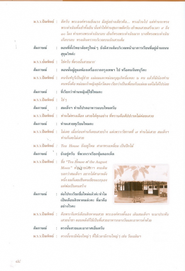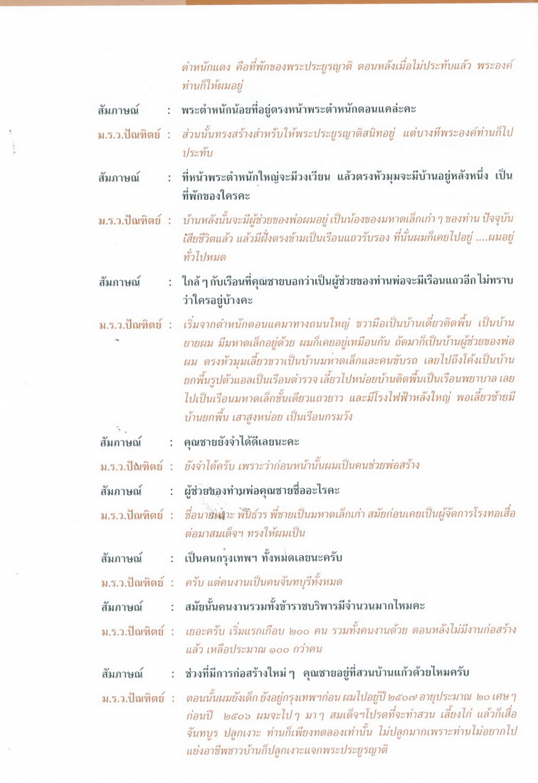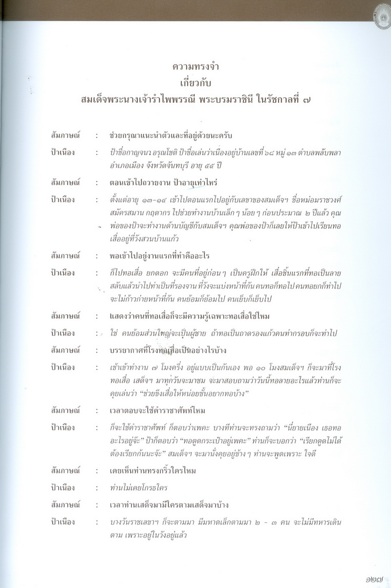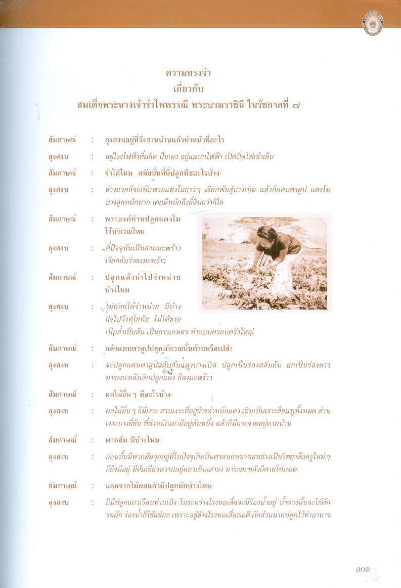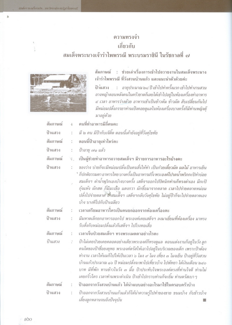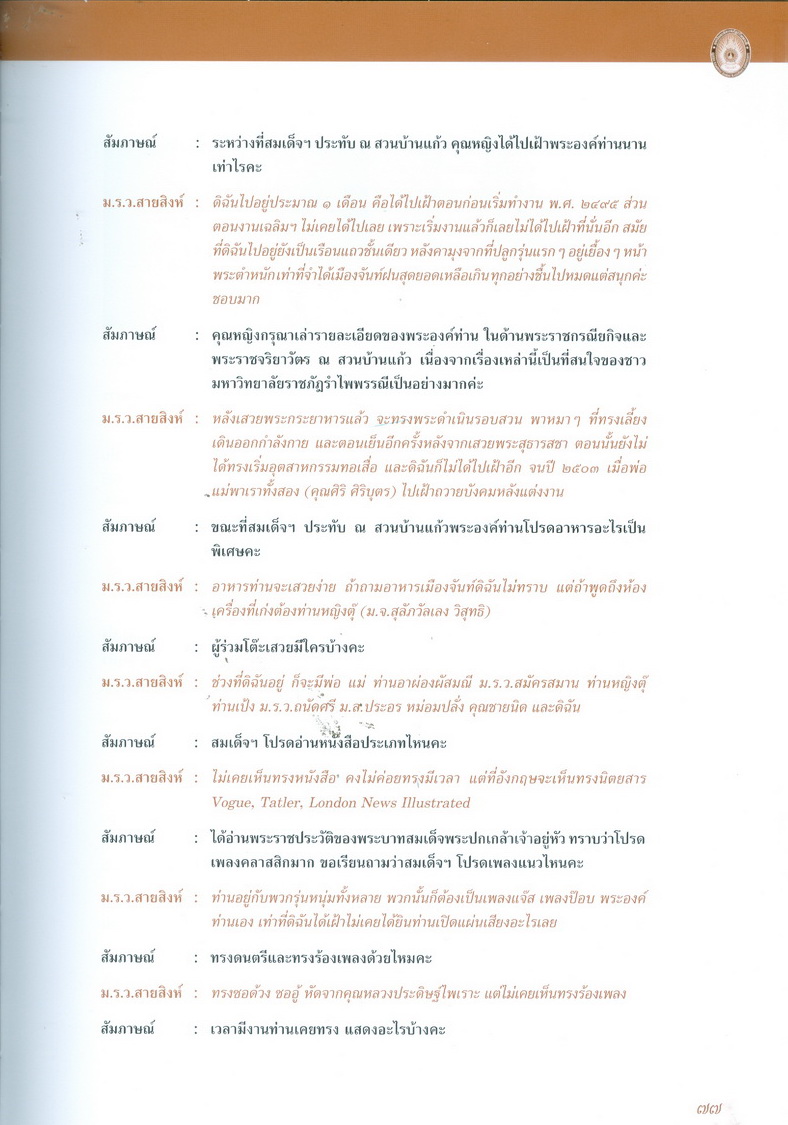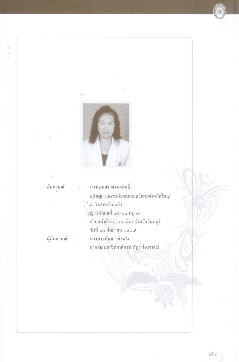 - เป็นพระราชประวัติ สมเด็จพระนางเจ้ารำไพพรรณี พระบรมราชินีในรัชกาลที่7 ในลักษณะข้อมูลประวัติศาสตร์บอกเล่า โดยเริ่มตั้งแต่พระราชสมภพ เสด๊จไปประทับที่พระตำหนักสวนสี่ฤดู ทรงอภิเษกสมรสกับพระบาทสมเด็จพระปกเกล้าเจ้าอยู่หัวรัชกาลที่7 และประทับอยู่ที่พระตำหนักวังศุโขทัย มีการเปลี่ยนแปลงการปกครองพระราชสวามีเสด็จสวรรคต สวนบ้านแก้ว และประทับ ณ วังศุโขทัยจวบจนเสด็จสวรรคต ต่อจากนั้นเป็นบทสัมภาษณ์พระประยูรญาติในฐานะที่ปรึกษา การจัดการหนังสือ สัมภาษณ์บุคลาผู้ถวายงานสมเด็จพระนางเจ้ารำไพพรรณี ณ จังหวัดจันทบุรี