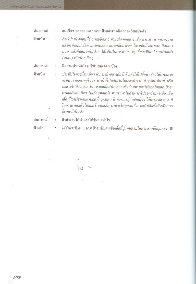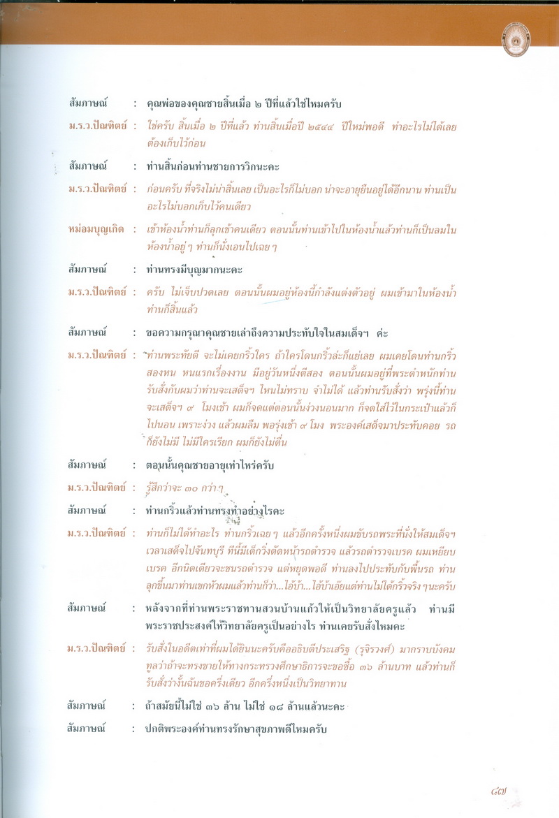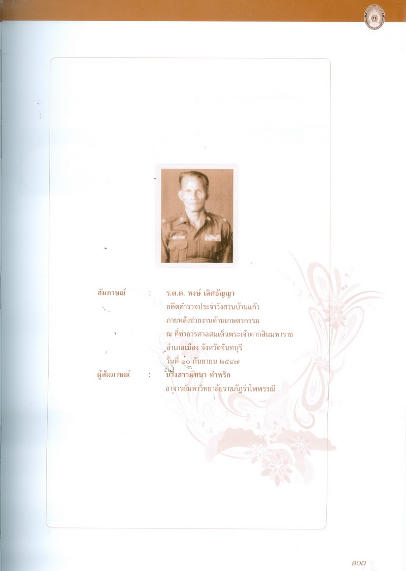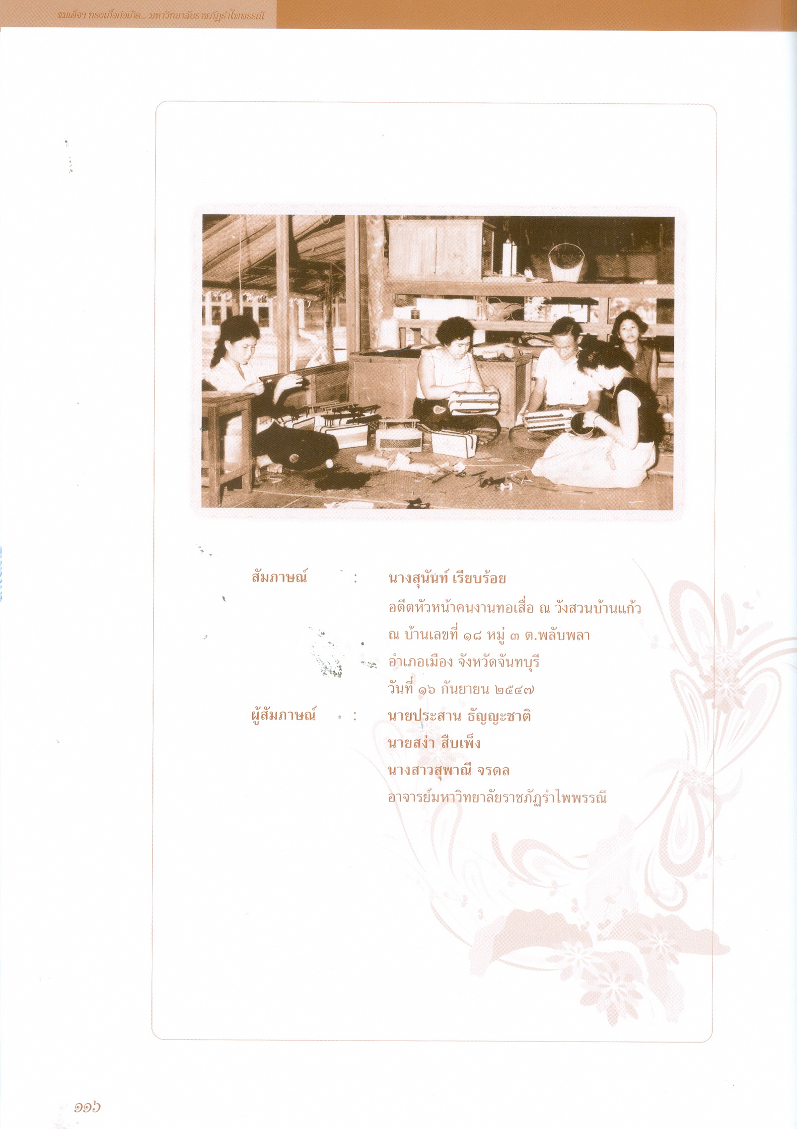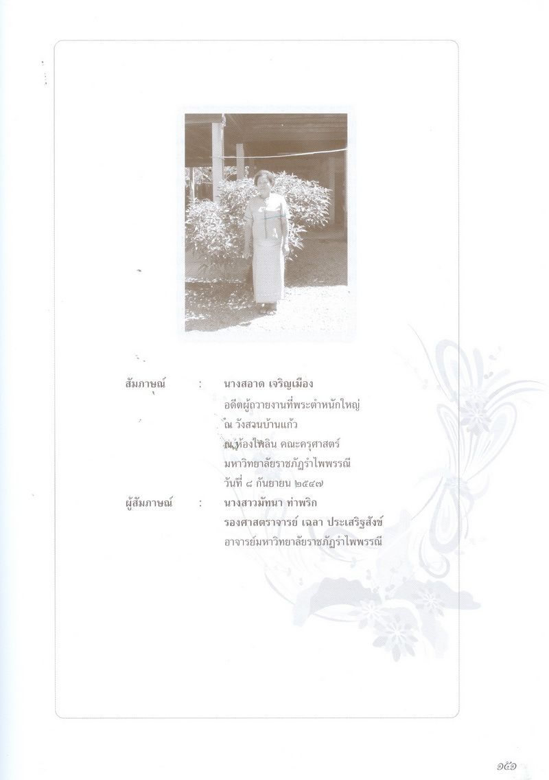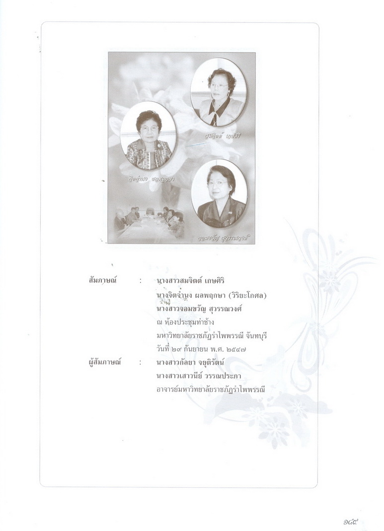- เป็นพระราชประวัติ สมเด็จพระนางเจ้ารำไพพรรณี พระบรมราชินีในรัชกาลที่7 ในลักษณะข้อมูลประวัติศาสตร์บอกเล่า โดยเริ่มตั้งแต่พระราชสมภพ เสด๊จไปประทับที่พระตำหนักสวนสี่ฤดู ทรงอภิเษกสมรสกับพระบาทสมเด็จพระปกเกล้าเจ้าอยู่หัวรัชกาลที่7 และประทับอยู่ที่พระตำหนักวังศุโขทัย มีการเปลี่ยนแปลงการปกครองพระราชสวามีเสด็จสวรรคต สวนบ้านแก้ว และประทับ ณ วังศุโขทัยจวบจนเสด็จสวรรคต ต่อจากนั้นเป็นบทสัมภาษณ์พระประยูรญาติในฐานะที่ปรึกษา การจัดการหนังสือ สัมภาษณ์บุคลาผู้ถวายงานสมเด็จพระนางเจ้ารำไพพรรณี ณ จังหวัดจันทบุรี