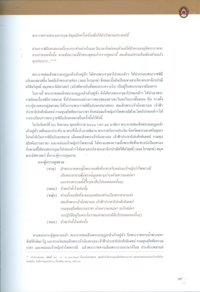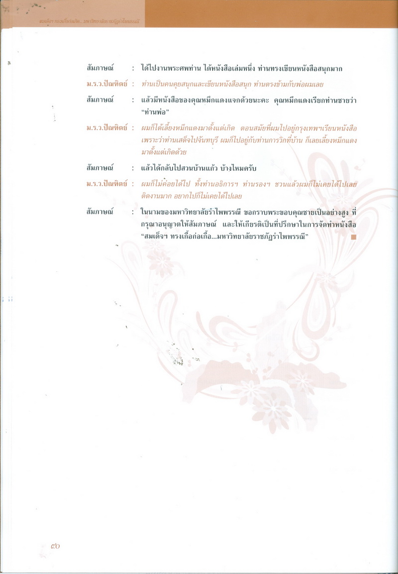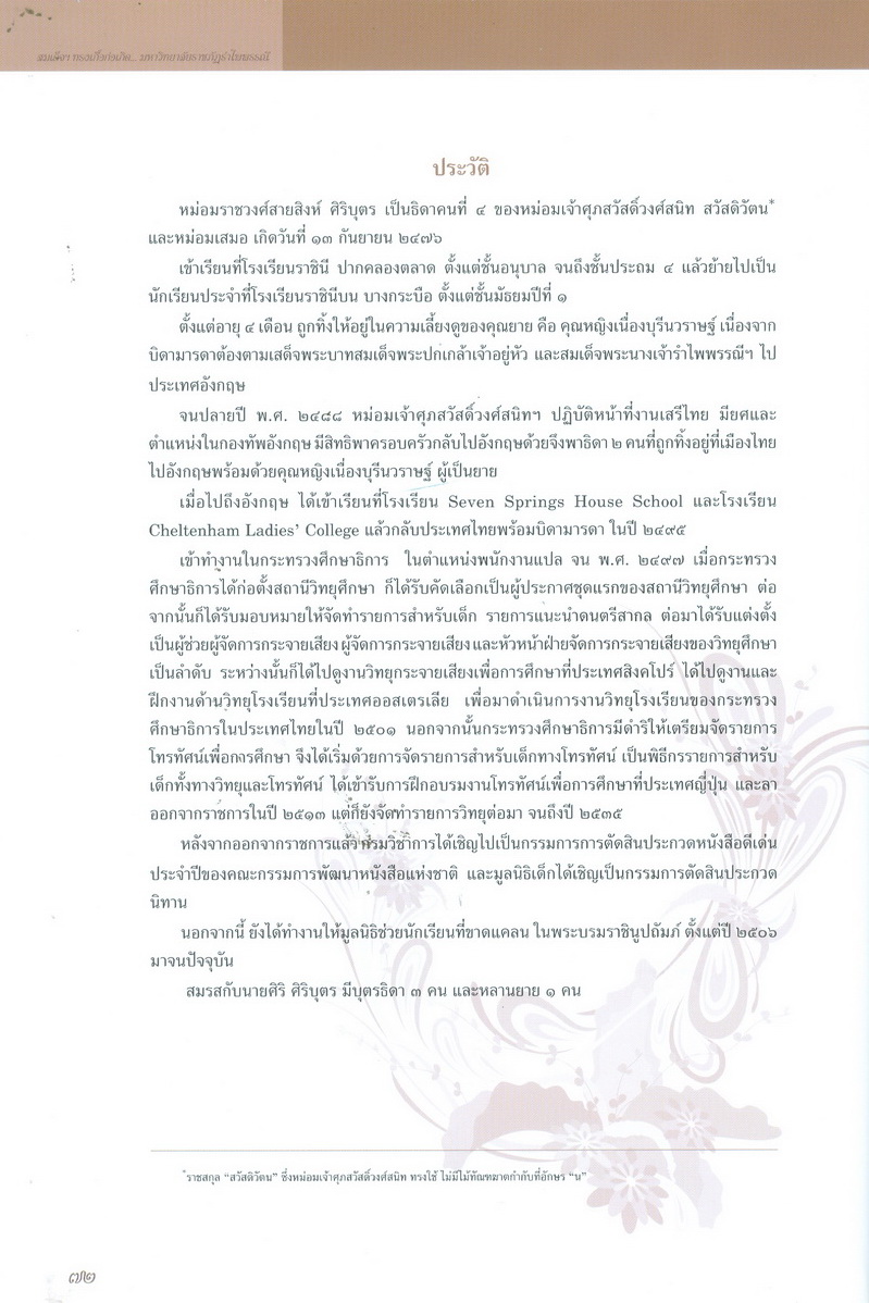 - จัดพิมพ์เพื่อเทิดพระเกียรติสมเด็จพระนางเจ้ารำไพพรรณีพระบรมราชินีในรัชกาลที่7 เนื่องในวันพระราชสมภพครบรอบ100ปี วันที่ 20 ธันวาคม พุทธศัก ราช 2547