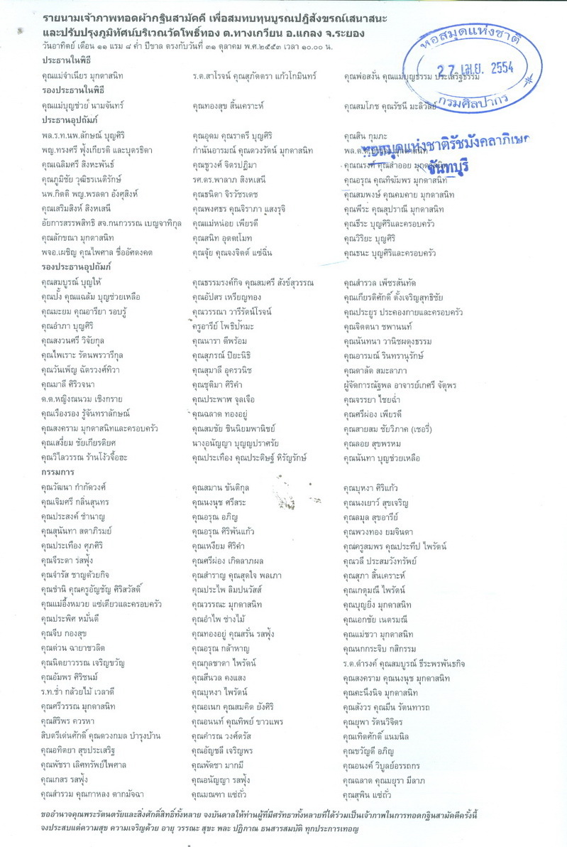 - คุณแม่จำเนียร มุกดาสนิท และบุตรหลานพิมพ์เป็นที่ระลึกในงานทอดกฐิน ณ วัดโพธิ์ทองพุทธาราม อำเภอแกลง จังหวัดระยอง วันที่ 31 ตุลาม พ.ศ.2553