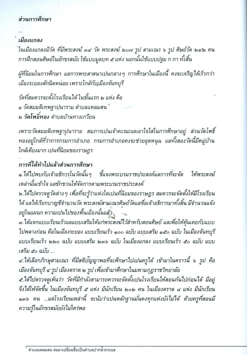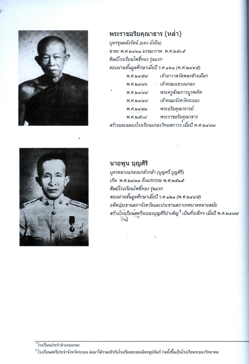 - เรื่องวัดโพธิ์ทองโรงเรียนแห่งแรกของเมืองแกลง ซึ่งมีความสำคัญและมีบทบาทต่อการศึกษาของเมืองแกลง จังหวัดระยองเป็นอย่างมาก โดยรวมเรื่องประวัติวัด ประวัติโรงเรียนเป็นหลัก และมีเรื่องอื่นๆที่เกี่ยวข้องต่อเนื่องกัน เช่นการจัดการศึกษาในร.ศ.117 ซึ่งสมัยนั้นเมืองแกลงขึ้นอยู่กับมณฑลจันทบุรี การประกาศจัดตั้งมณฑลจันทบุรี ทำเนียบข้าราชการเมืองจันทบุรีเมื่อร.ศ.119 ทำเนียบผู้ว่าราชการเมืองแกลงสมัยรัชกาลที่5 กรมการอำเภอแกลง ประวัติเมืองแกลง และทำเนียบนายอำเภอแกลงก่อนการเปลี่ยนแปลงการปกครอง.