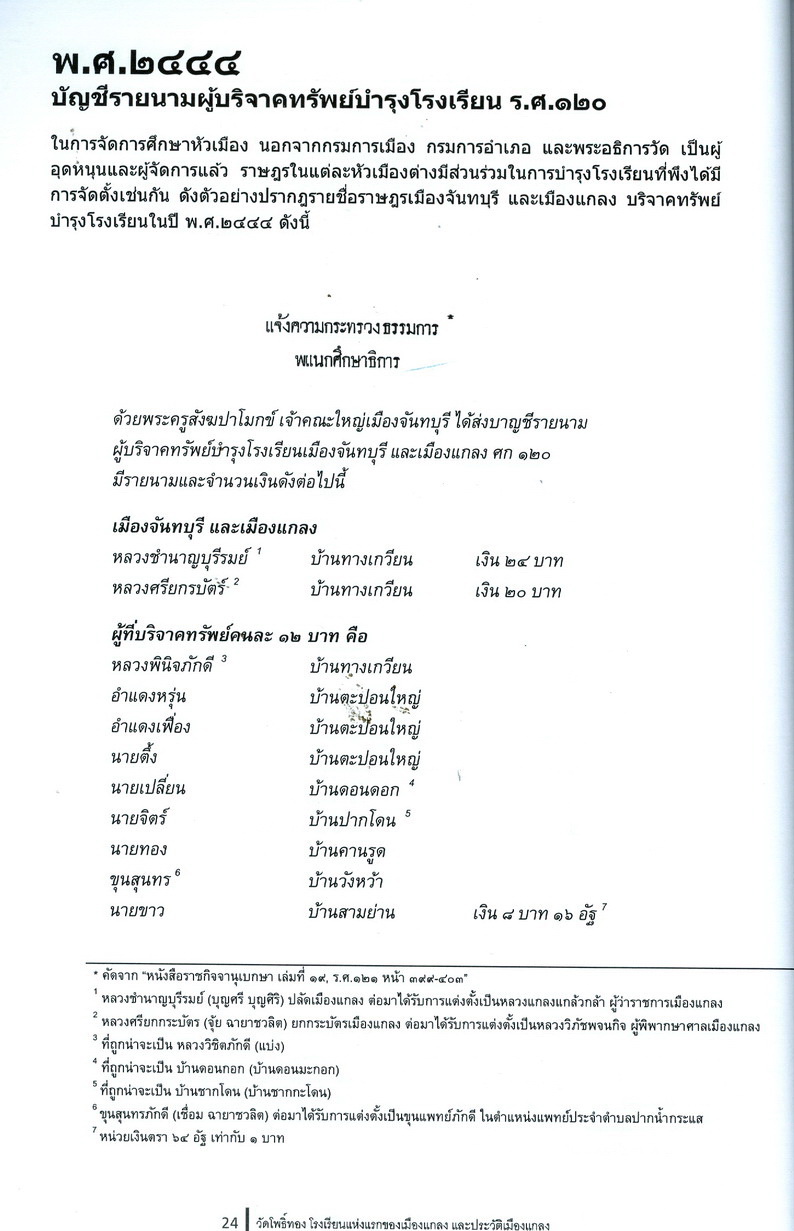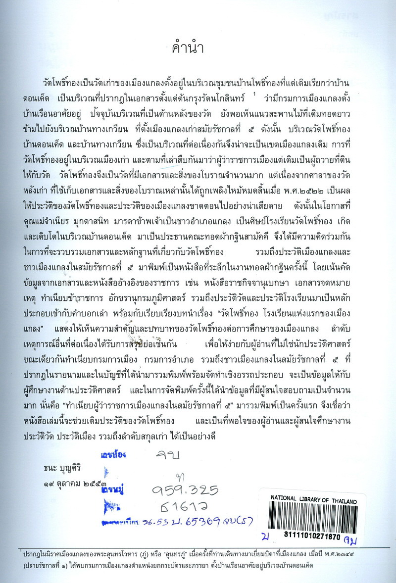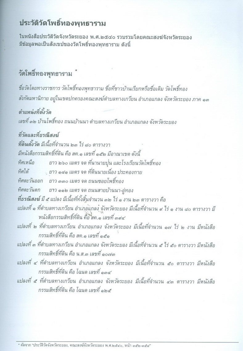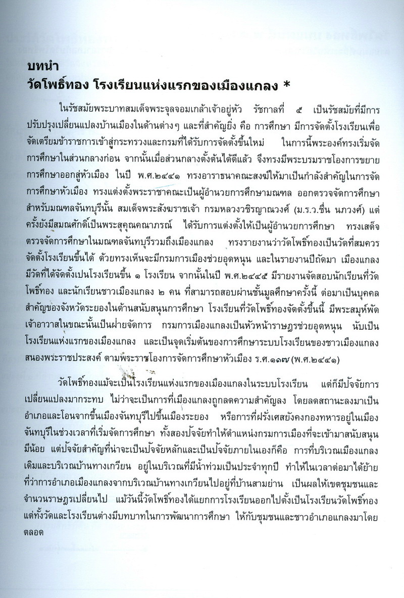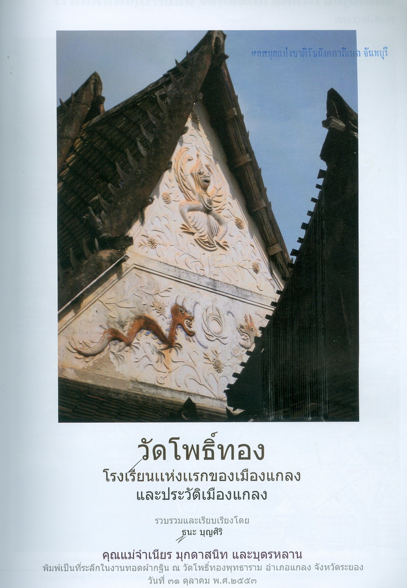 ธนะ บุญศิริ, “วัดโพธิ์ทองโรงเรียนแห่งแรกของเมืองแกลงและประวัติเมืองแกลง,” D-Library | National Library of Thailand, accessed April 2, 2026, http://164.115.27.97/digital2024/items/show/4632.