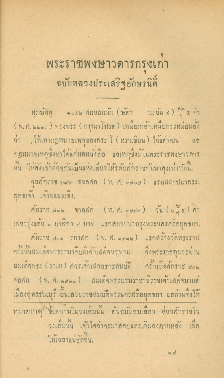 พระราชพงศาวดาร กรุงเก่า(ฉบับหลวงประเสริฐอักษรนิติ์)