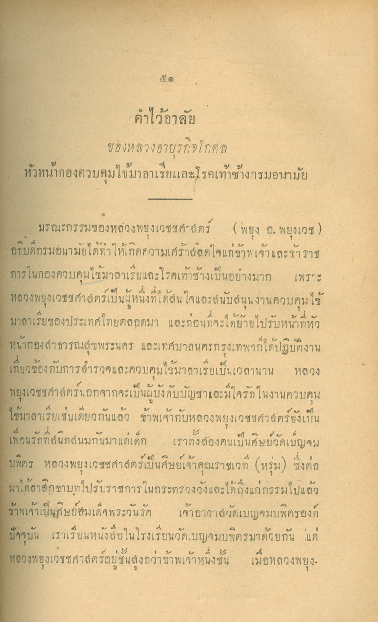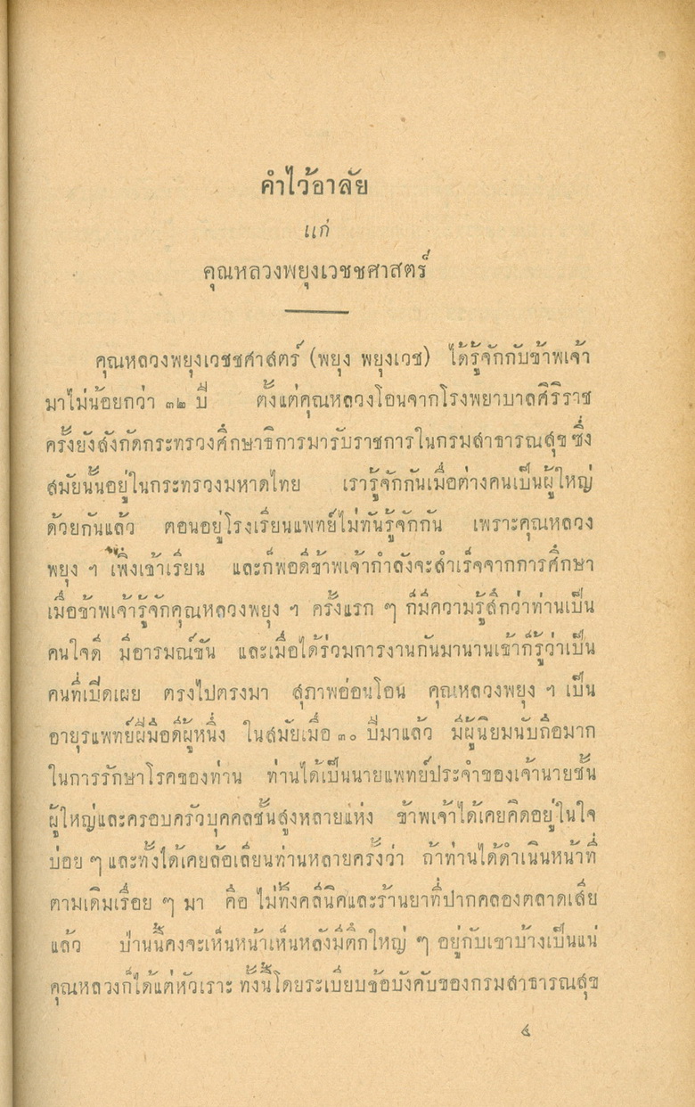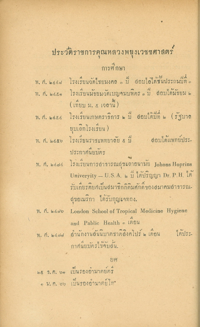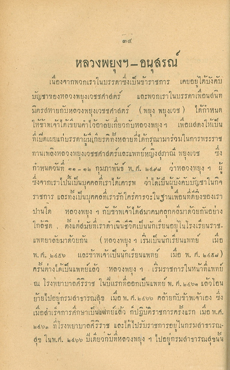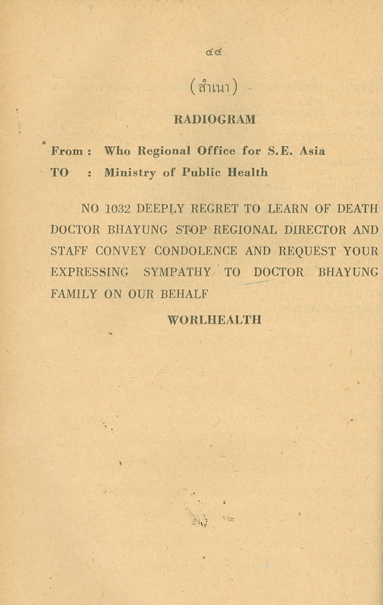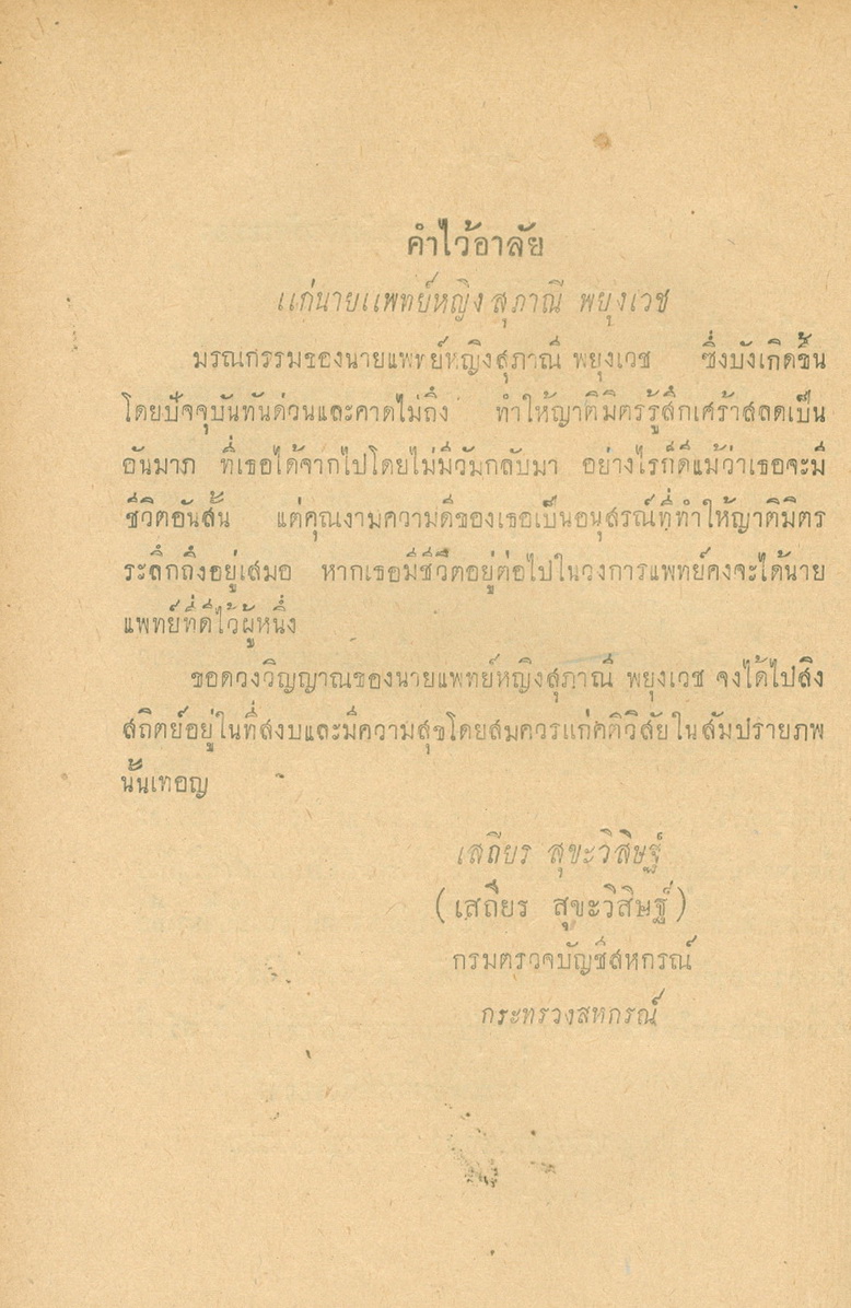 - พิมพ์แจกในงานพระราชทานเพลิงศพหลวงพยุงเวชชศาสตร์(พยุง พยุงเวช) และแพทย์หญิงสภาณี พยุงเวช วันทีี่่ี 12 กุมภาพันธ์ 2498
