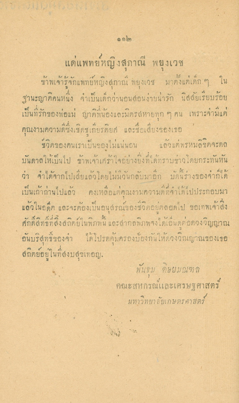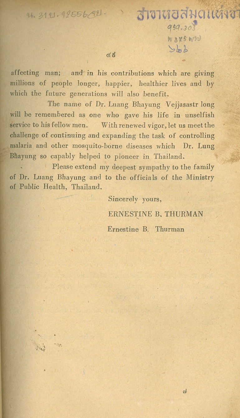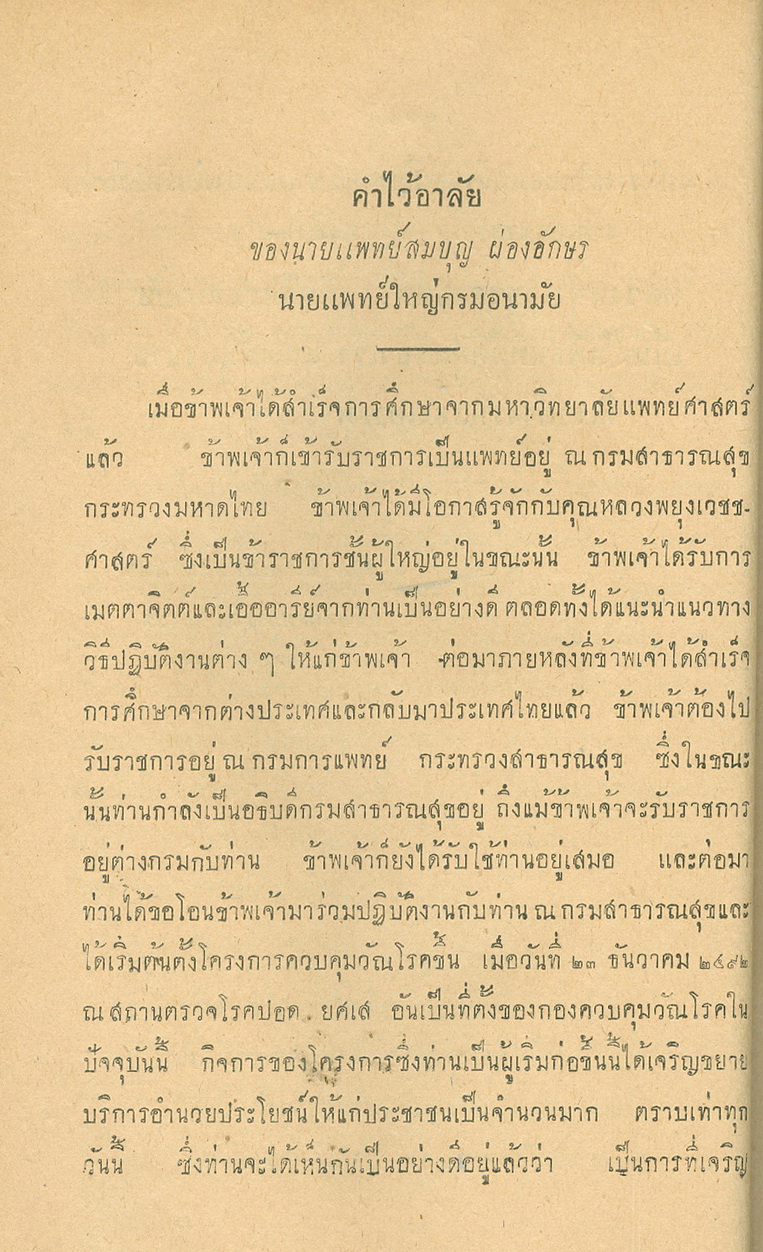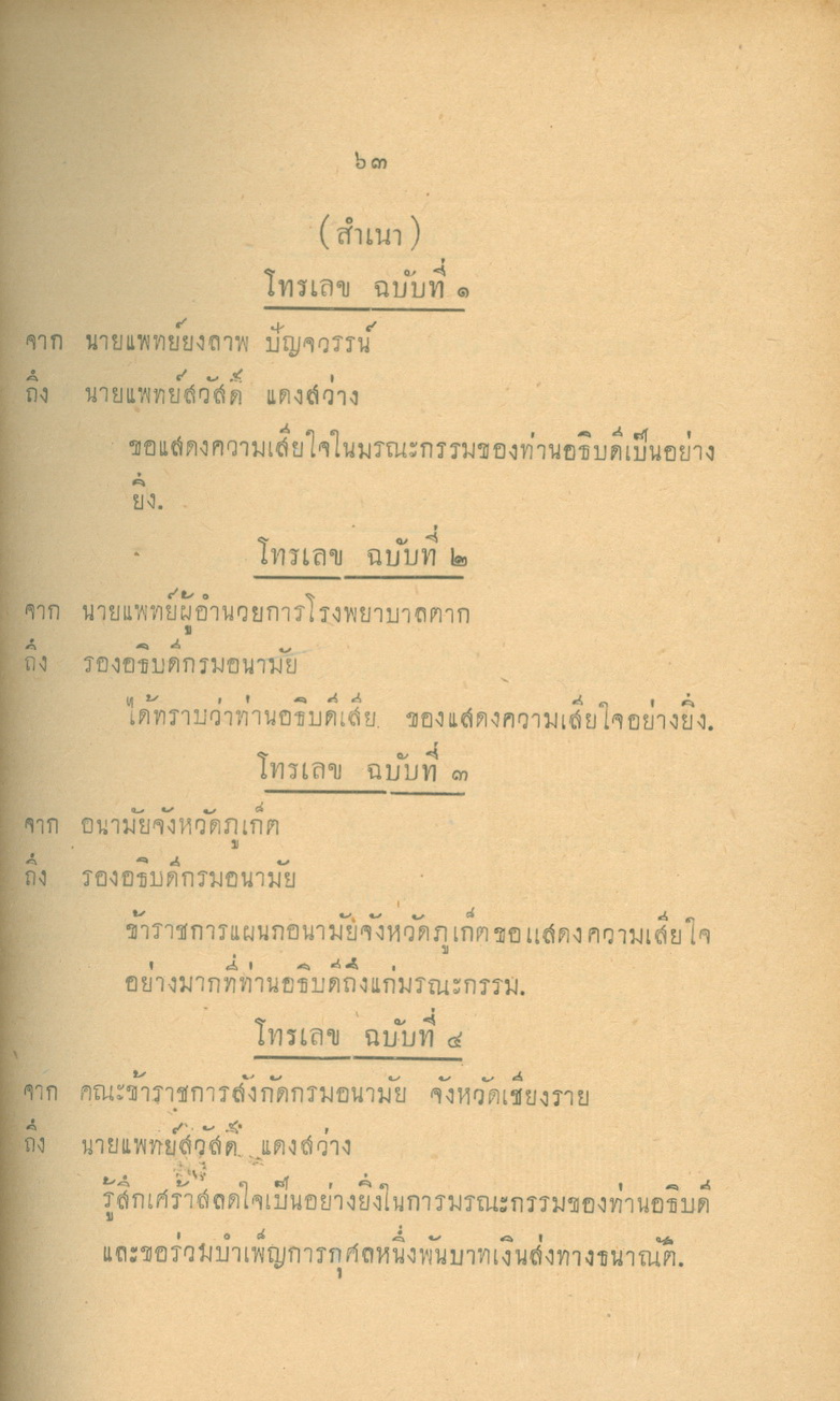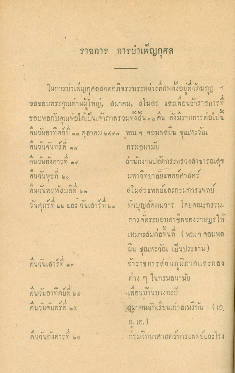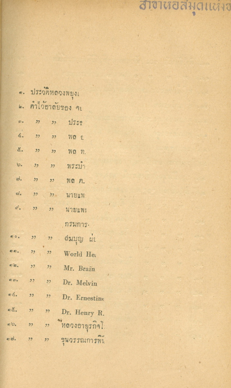 - พิมพ์แจกในงานพระราชทานเพลิงศพหลวงพยุงเวชชศาสตร์(พยุง พยุงเวช) และแพทย์หญิงสภาณี พยุงเวช วันทีี่่ี 12 กุมภาพันธ์ 2498