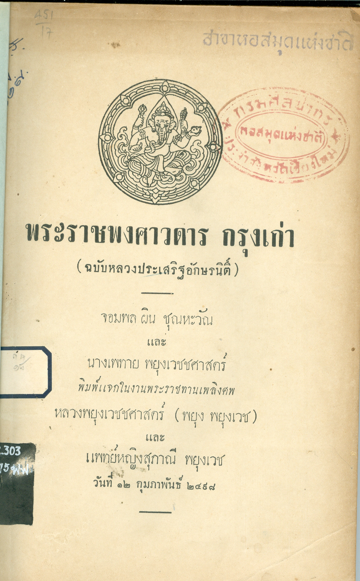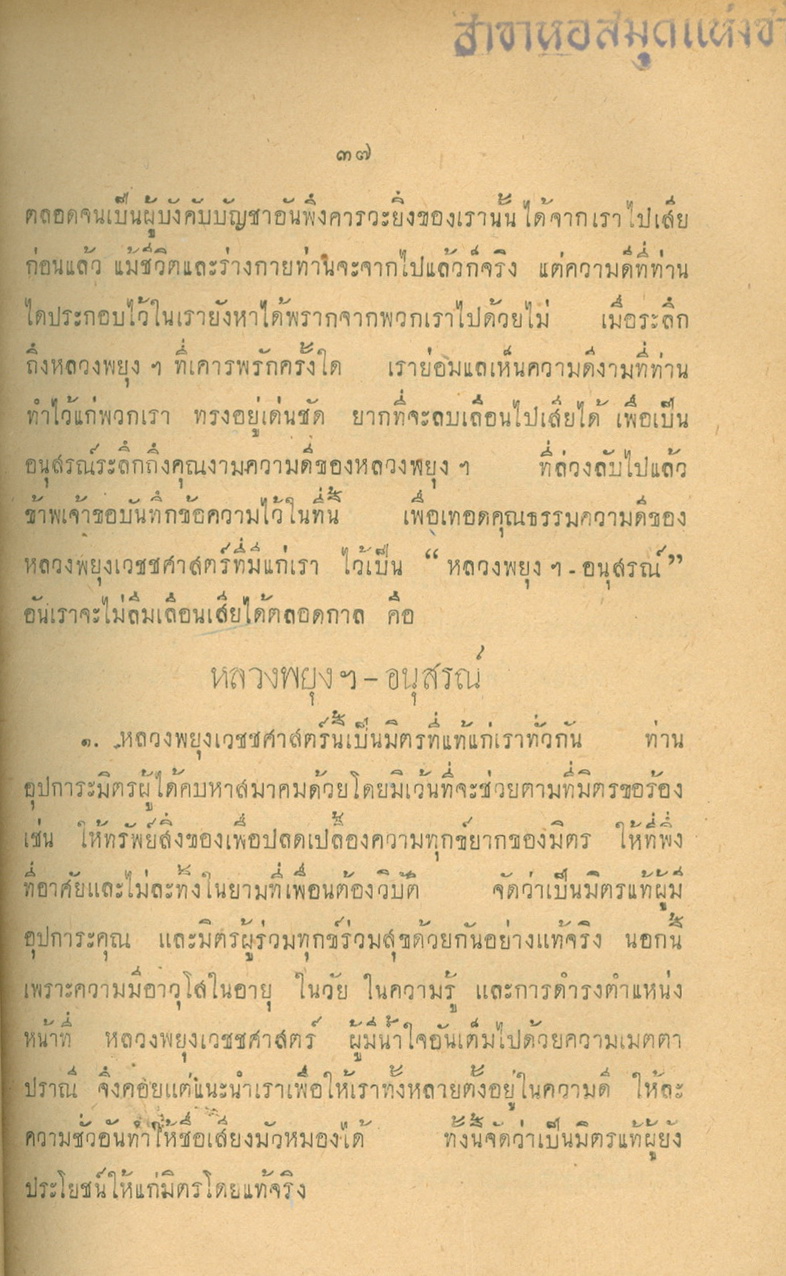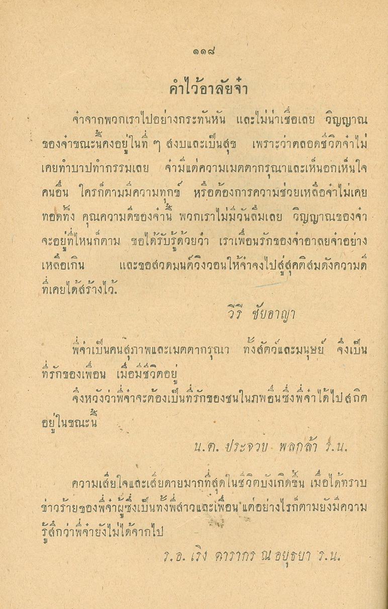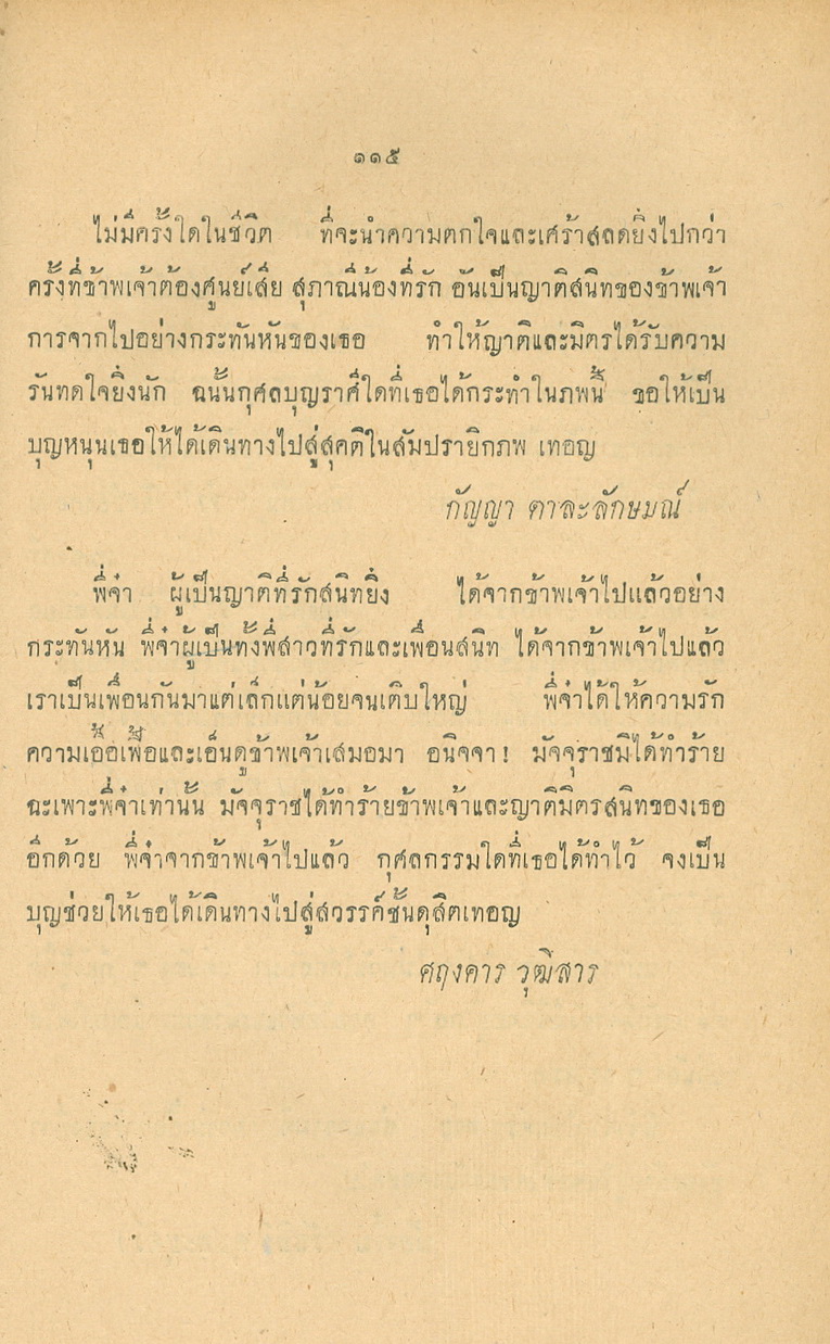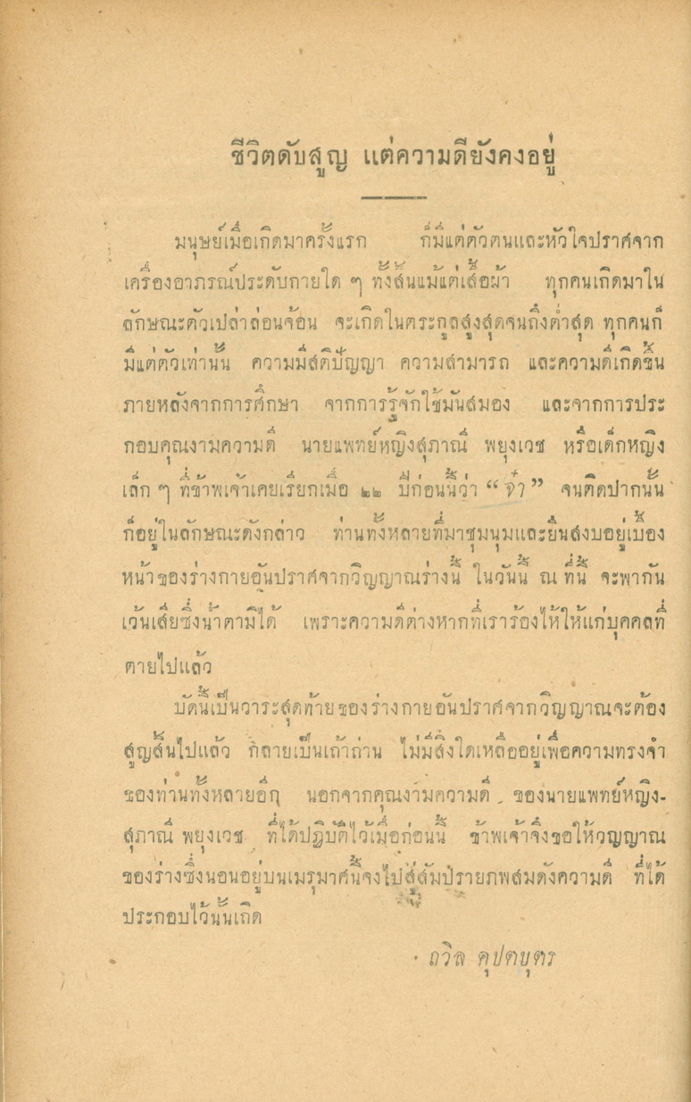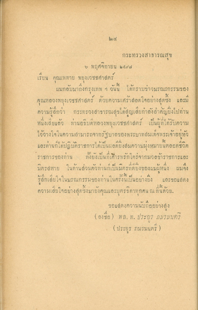- พิมพ์แจกในงานพระราชทานเพลิงศพหลวงพยุงเวชชศาสตร์(พยุง พยุงเวช) และแพทย์หญิงสภาณี พยุงเวช วันทีี่่ี 12 กุมภาพันธ์ 2498