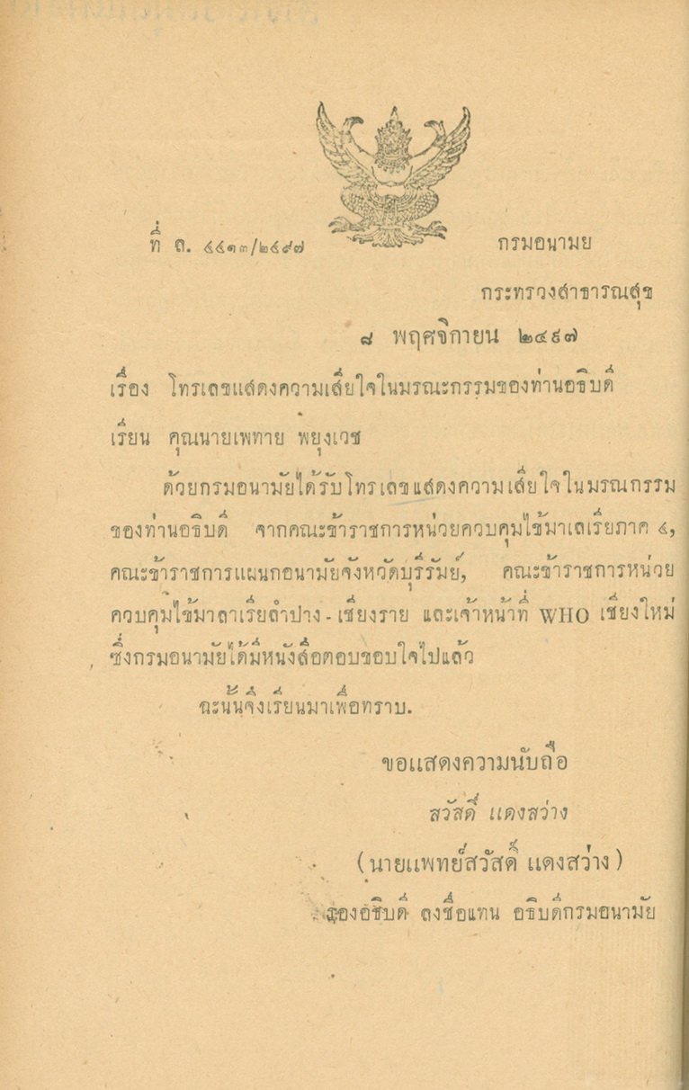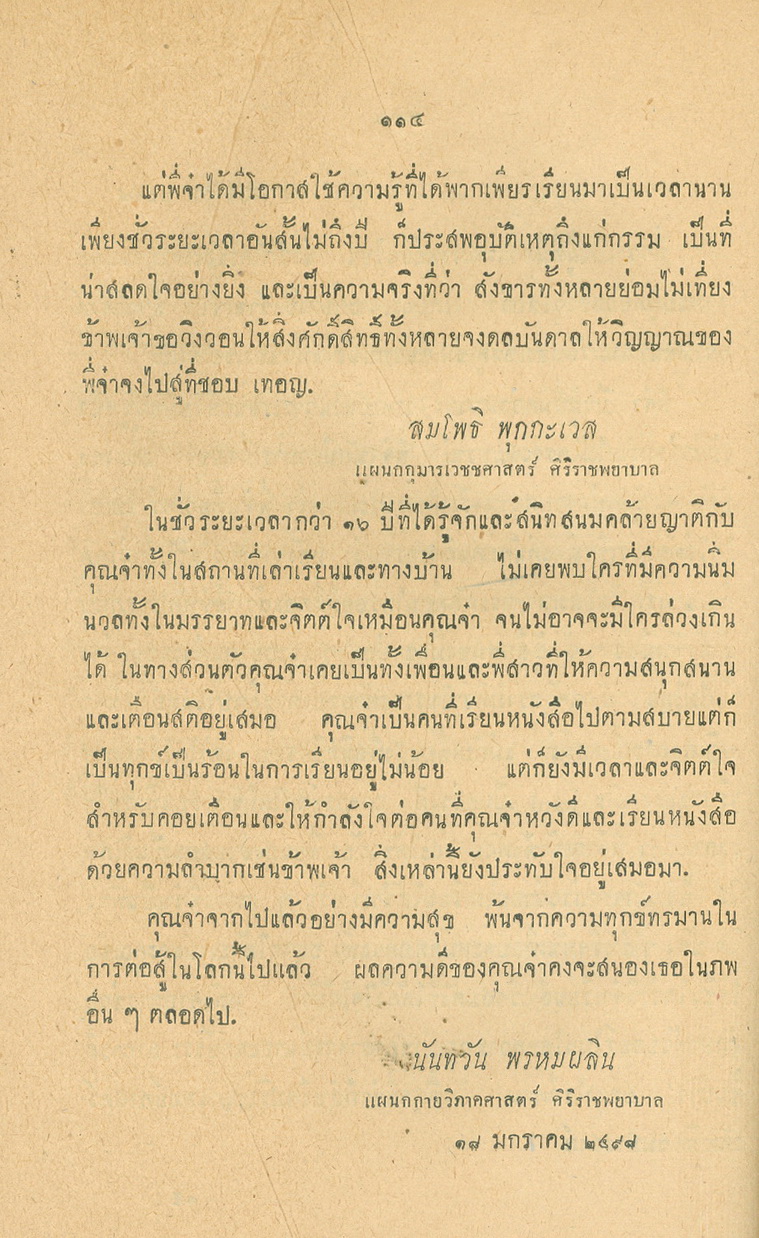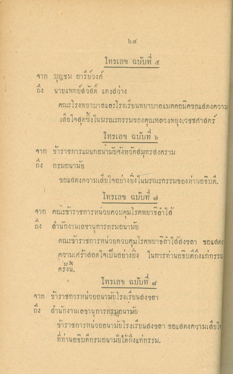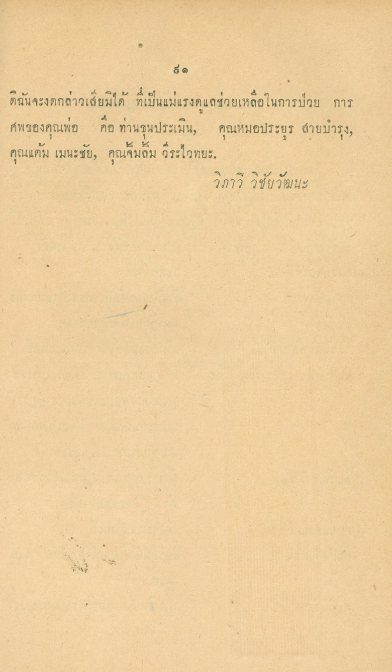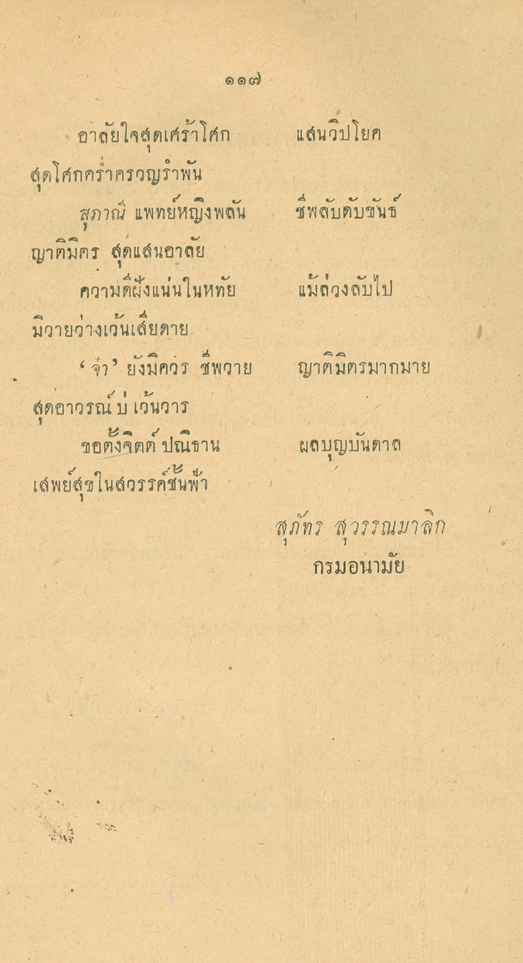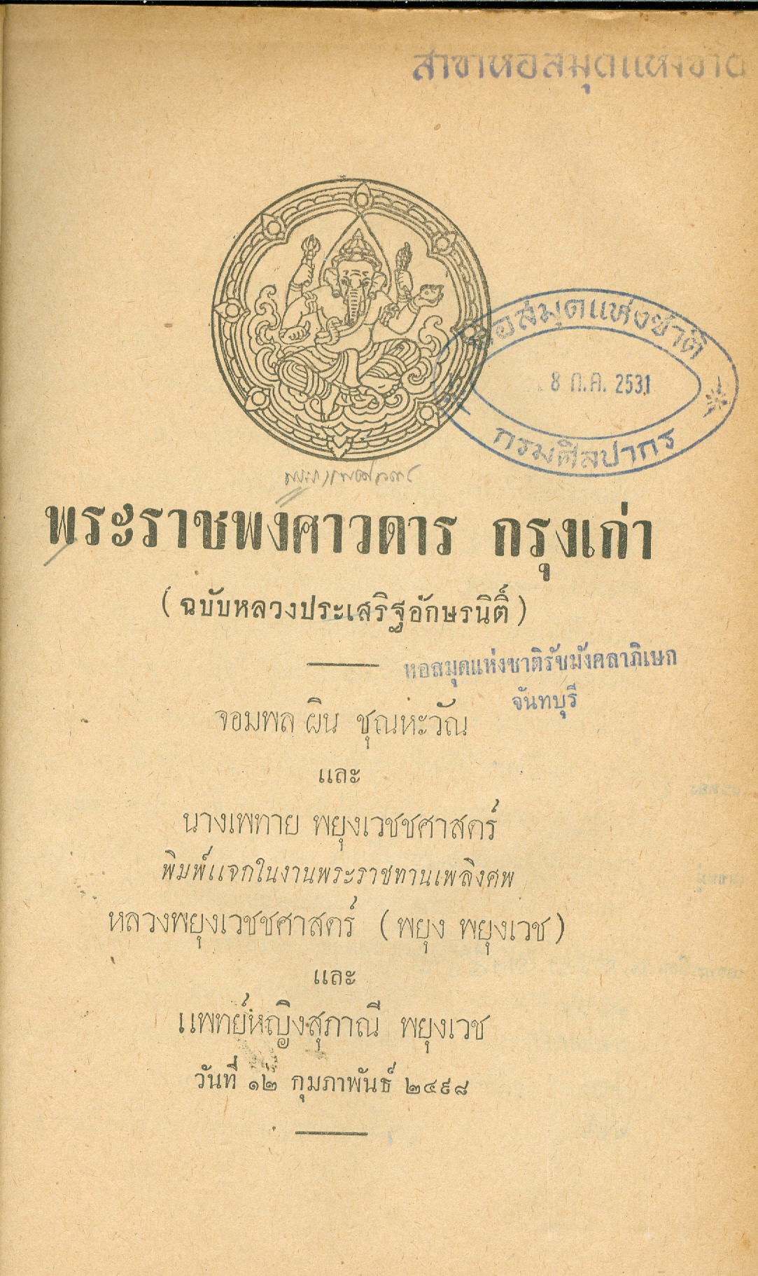- พิมพ์แจกในงานพระราชทานเพลิงศพหลวงพยุงเวชชศาสตร์(พยุง พยุงเวช) และแพทย์หญิงสภาณี พยุงเวช วันทีี่่ี 12 กุมภาพันธ์ 2498