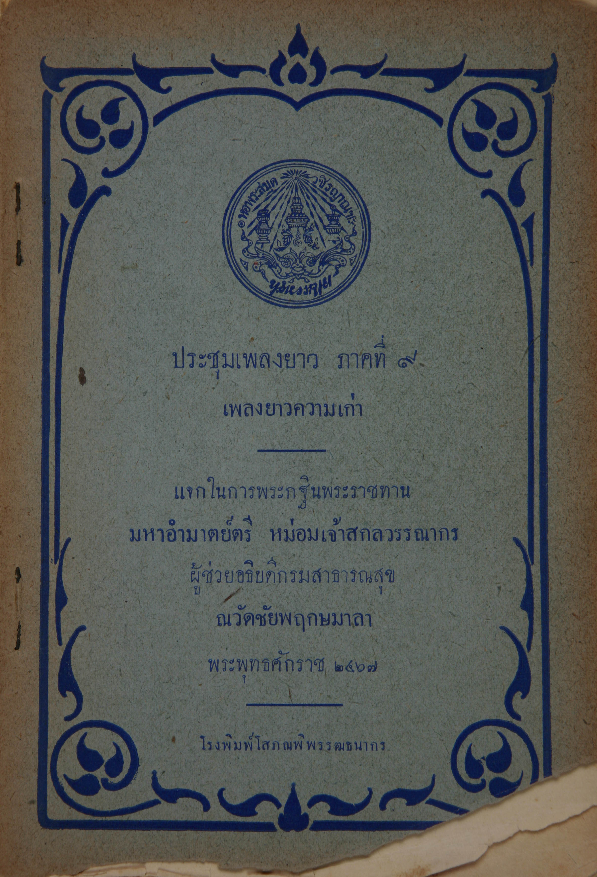 หอพระสมุดวชิรญาณ, “ประชุมเพลงยาว ภาคที่ ๙ เพลงยาวความเก่า,” D-Library | National Library of Thailand, accessed April 2, 2026, http://164.115.27.97/digital2024/items/show/4689.