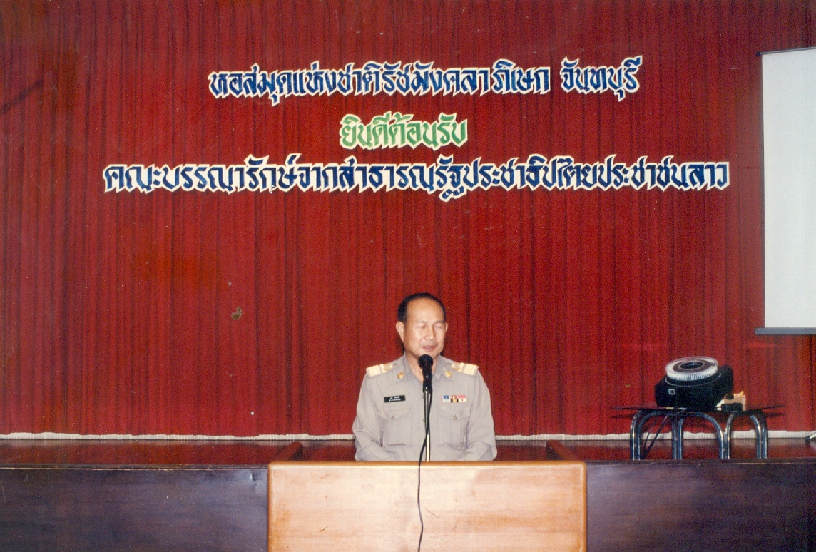 ผู้ว่าราชการจังหวัดจันทบุรี ต้อนรับคณะบรรณารักษ์จาก สปป.ลาว ณ หอสมุดแห่งชาติฯ จันทบุรี 30 ก.ย. 2539 (รูปภาพ)