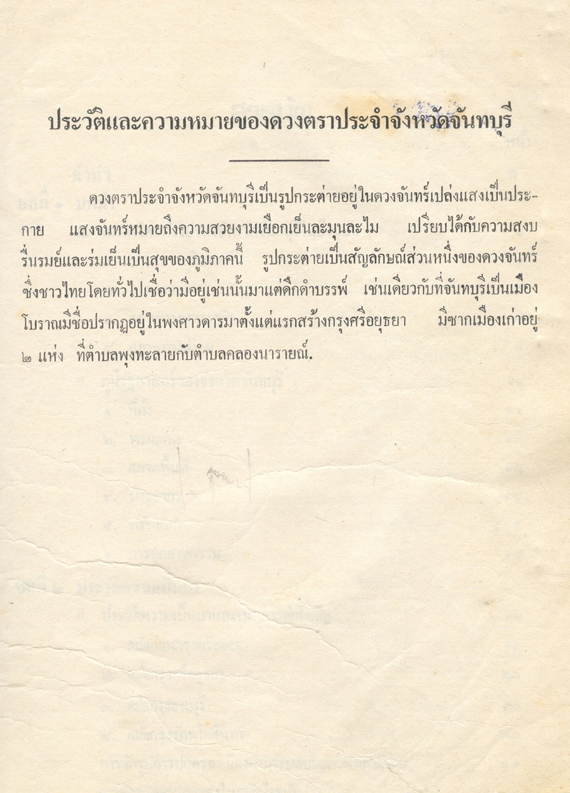 - ประวัติความเป็นมาของภูมิประเทศ สถานที่ ภูมิศาสตร์ สถานที่และสิ่งก่อสร้างที่สำคัญ รวมถึงประวัติบุคคลสำคัญของจังหวัดจันทบุรี