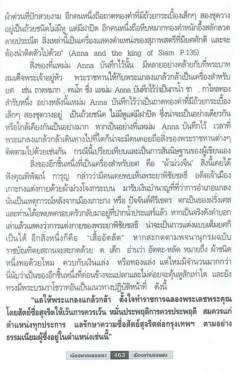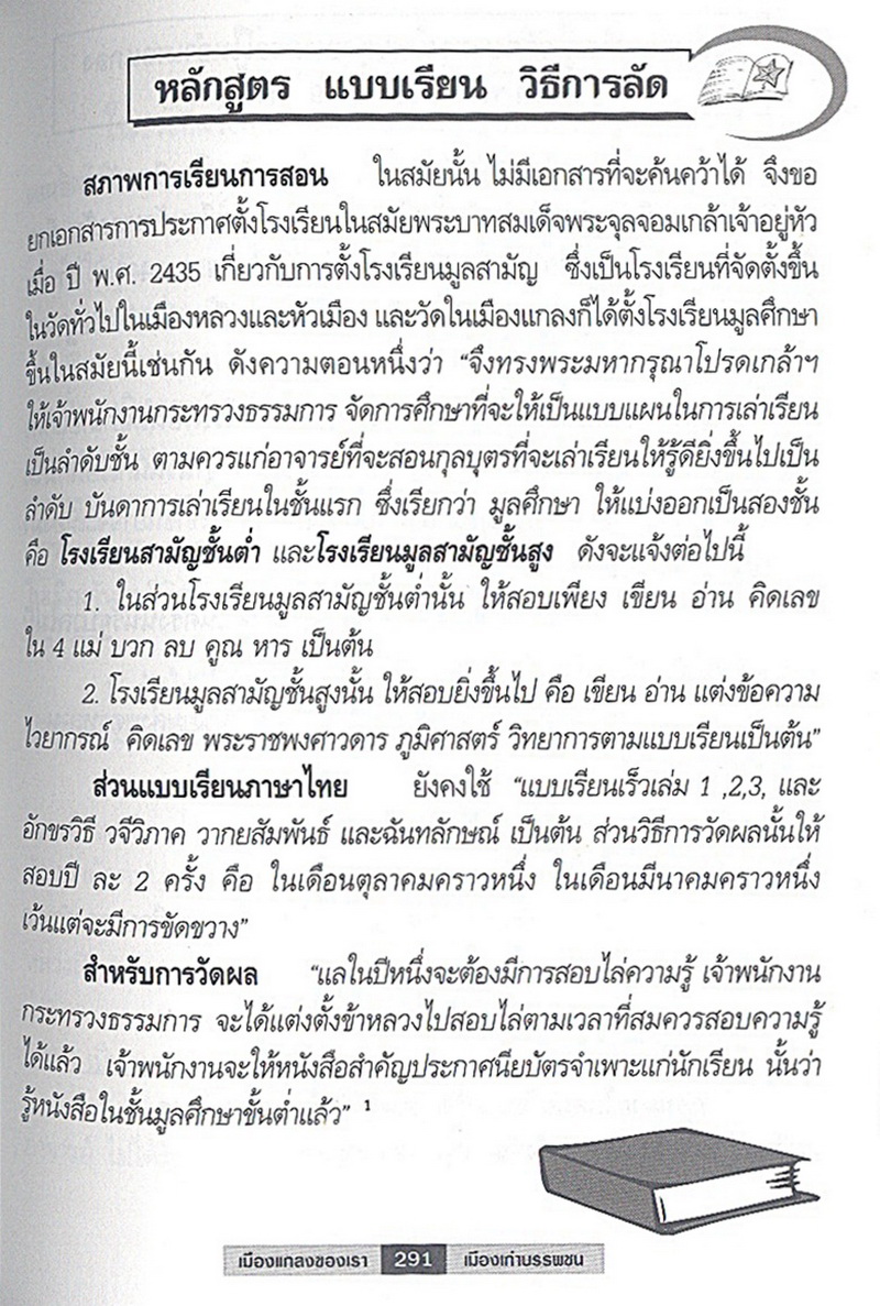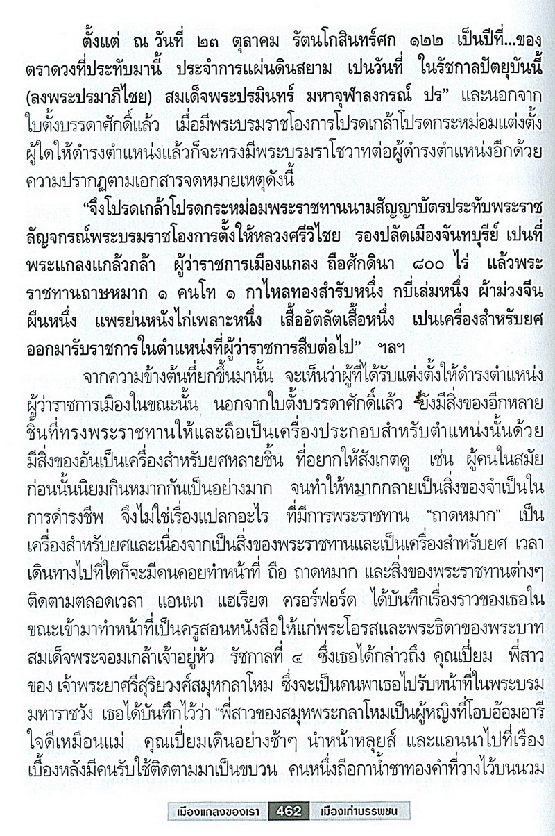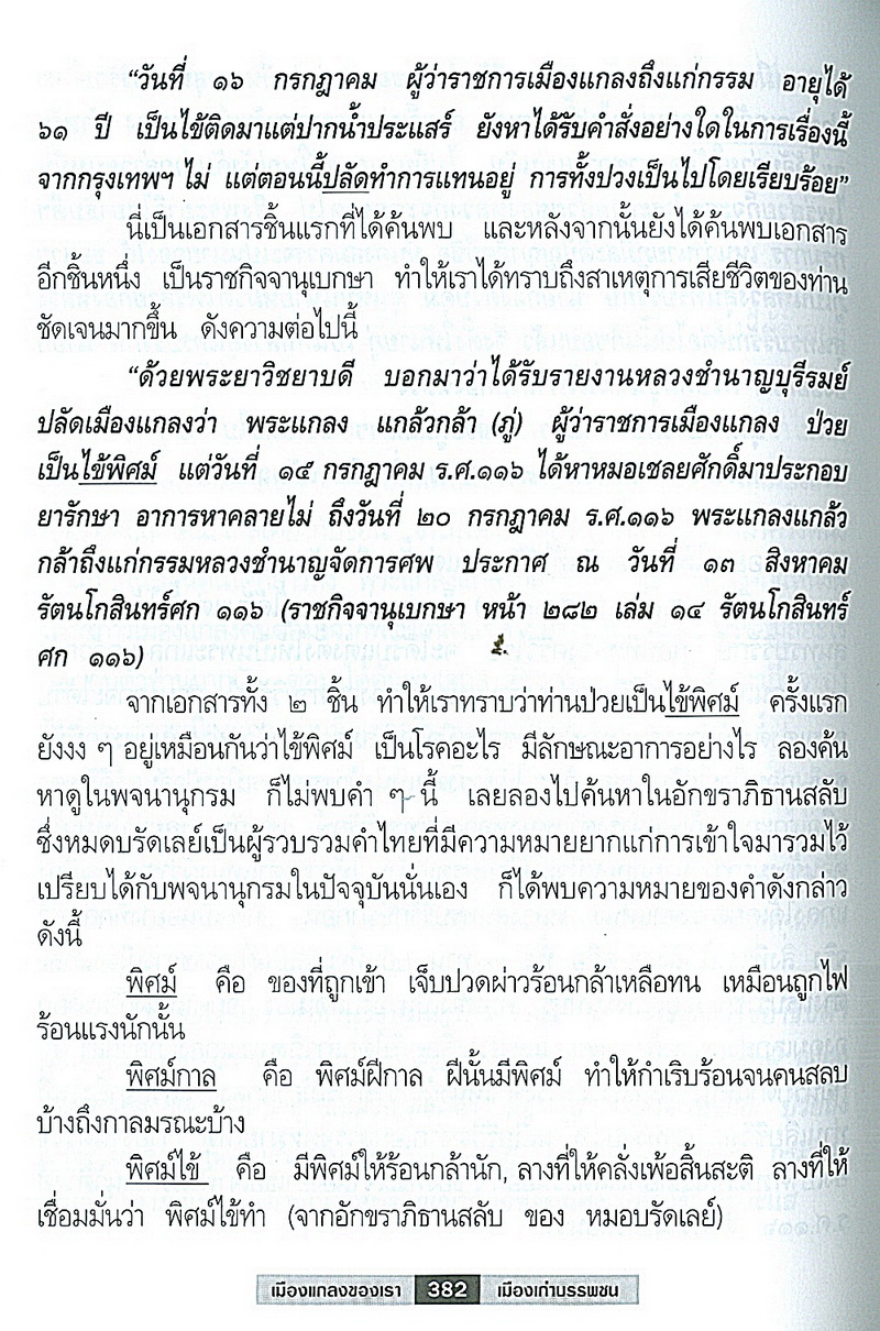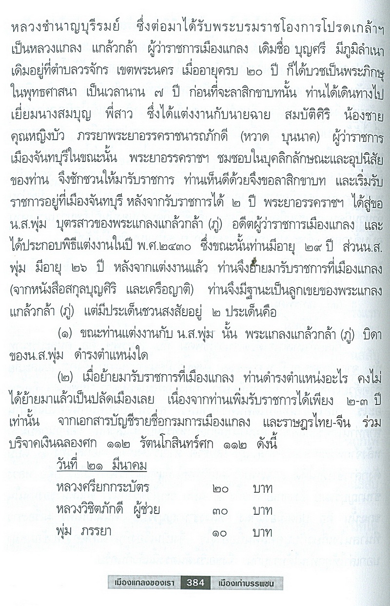 - เป็นหนังสือที่ผู้เขียนหลายท่านได้ทำการศึกษาค้นคว้า รวบรวมและเรียบเรียงในเรื่องต่างๆ ด้านต่างๆที่สำคัญของเมืองแกลงในอดีต ตั้งแต่ประวัติความเป็นมา เจ้าเมือง วิถีชีวิตความเป็นอยู่ของชาวแกลง ประเพณี วัฒนธรรม การค้า การขนส่ง เป็นต้น ท้ายเล่มมีตัวอย่างหนังสือราชการจากศาลากลางจังหวัดระยอง