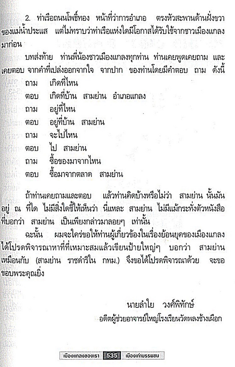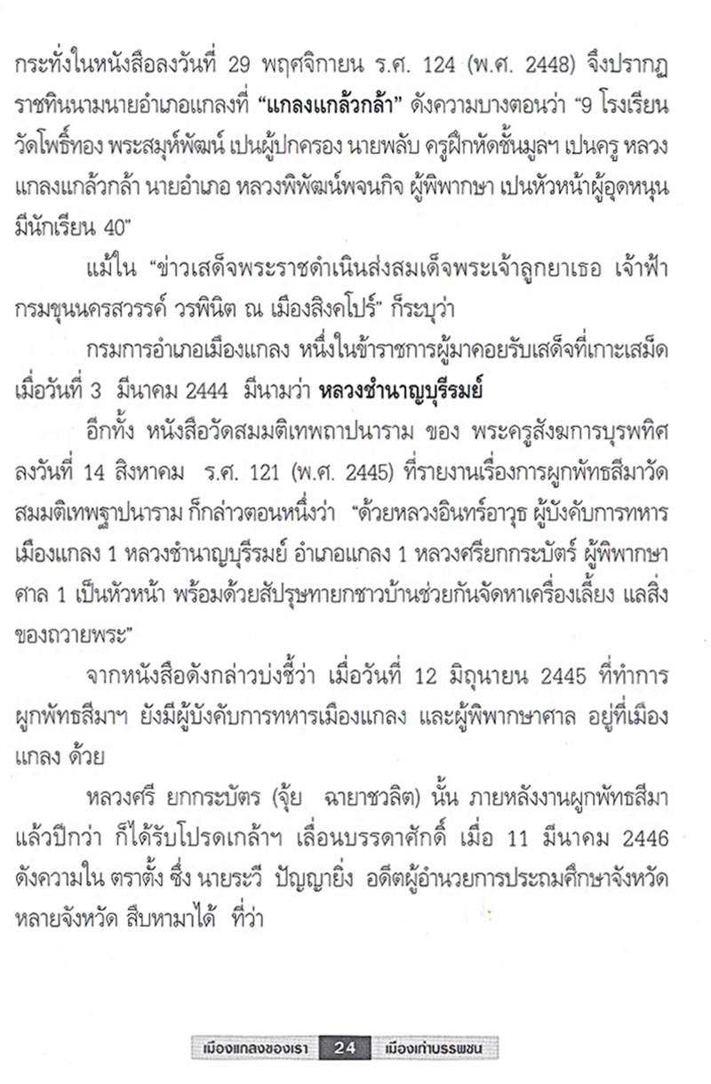 - เมืองแกลงของเรา เมืองเก่าบรรพชน