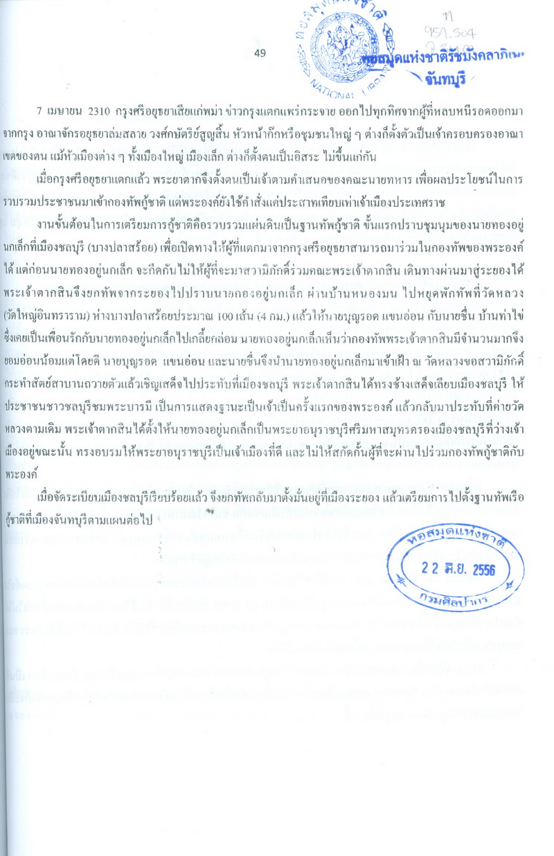 - ตามรอยสมเด็จพระเจ้าตากสินมหาราช กู้ชาติ เนื้อหาเน้นเส้นทางการเดินทัพของพระยาตาก จากอยุธยา ถึง จันทบุรี มีแผนที่ รูปภาพประกอบ.