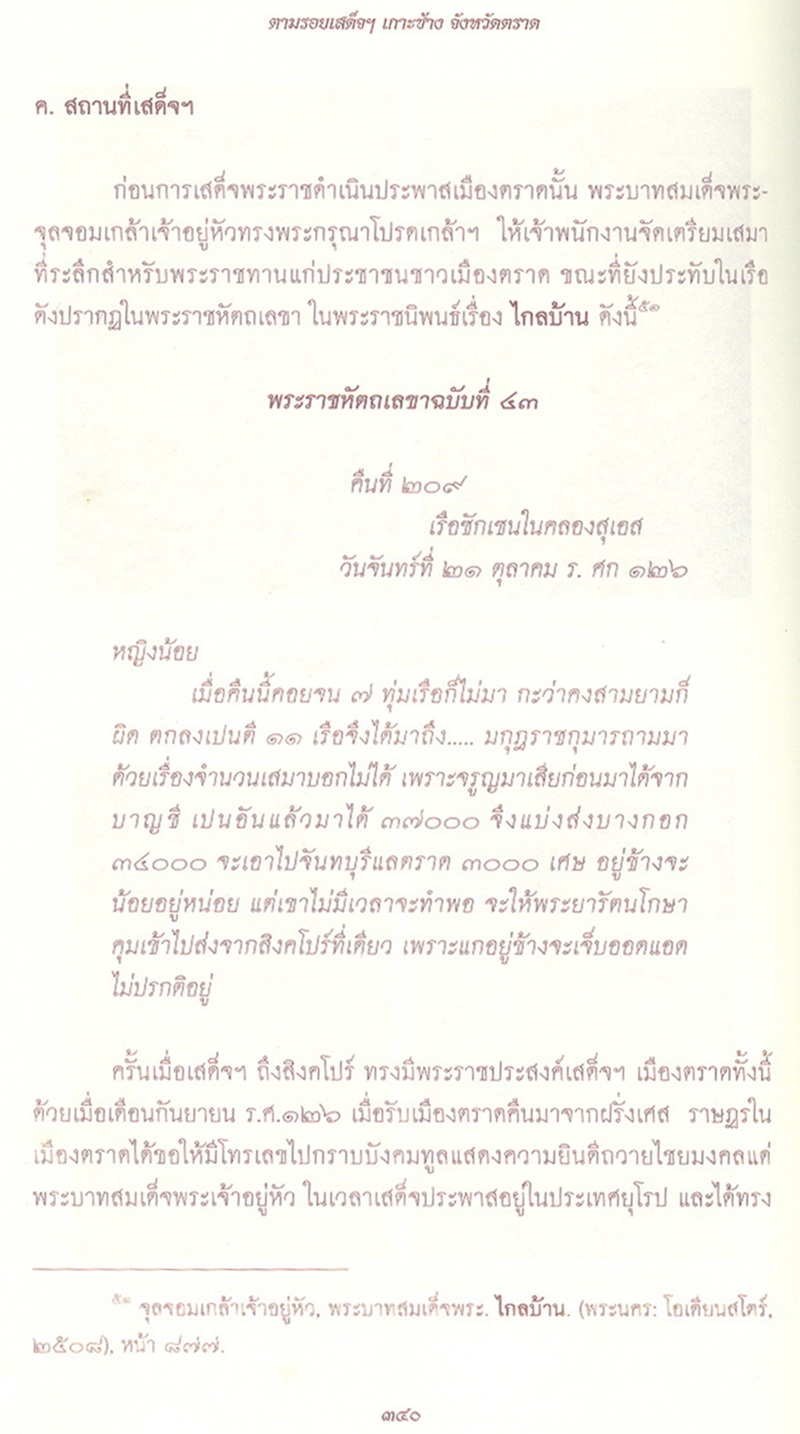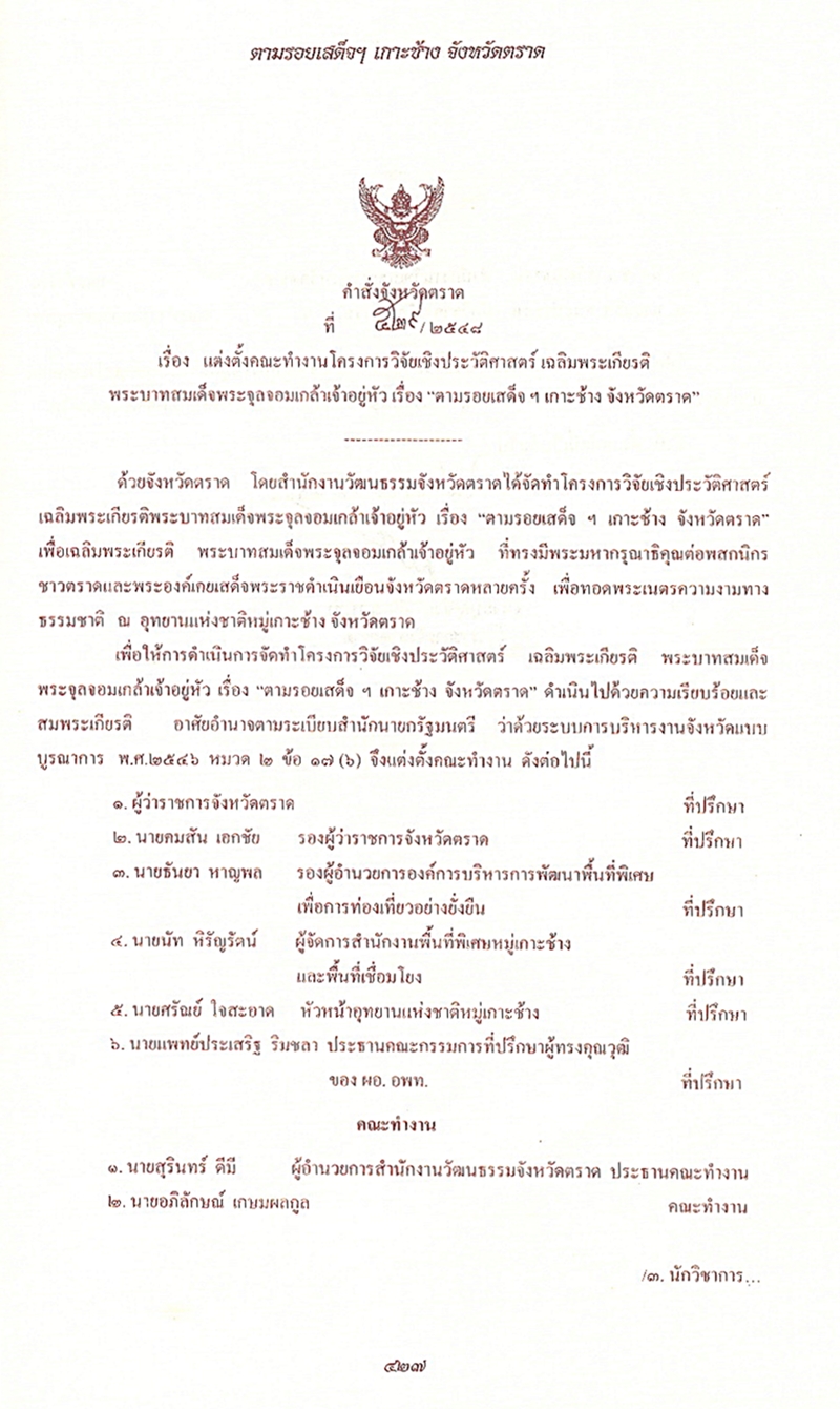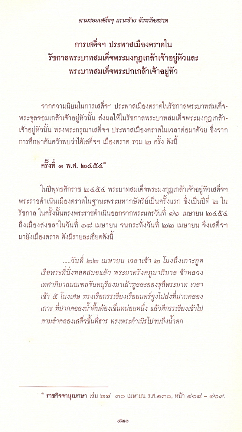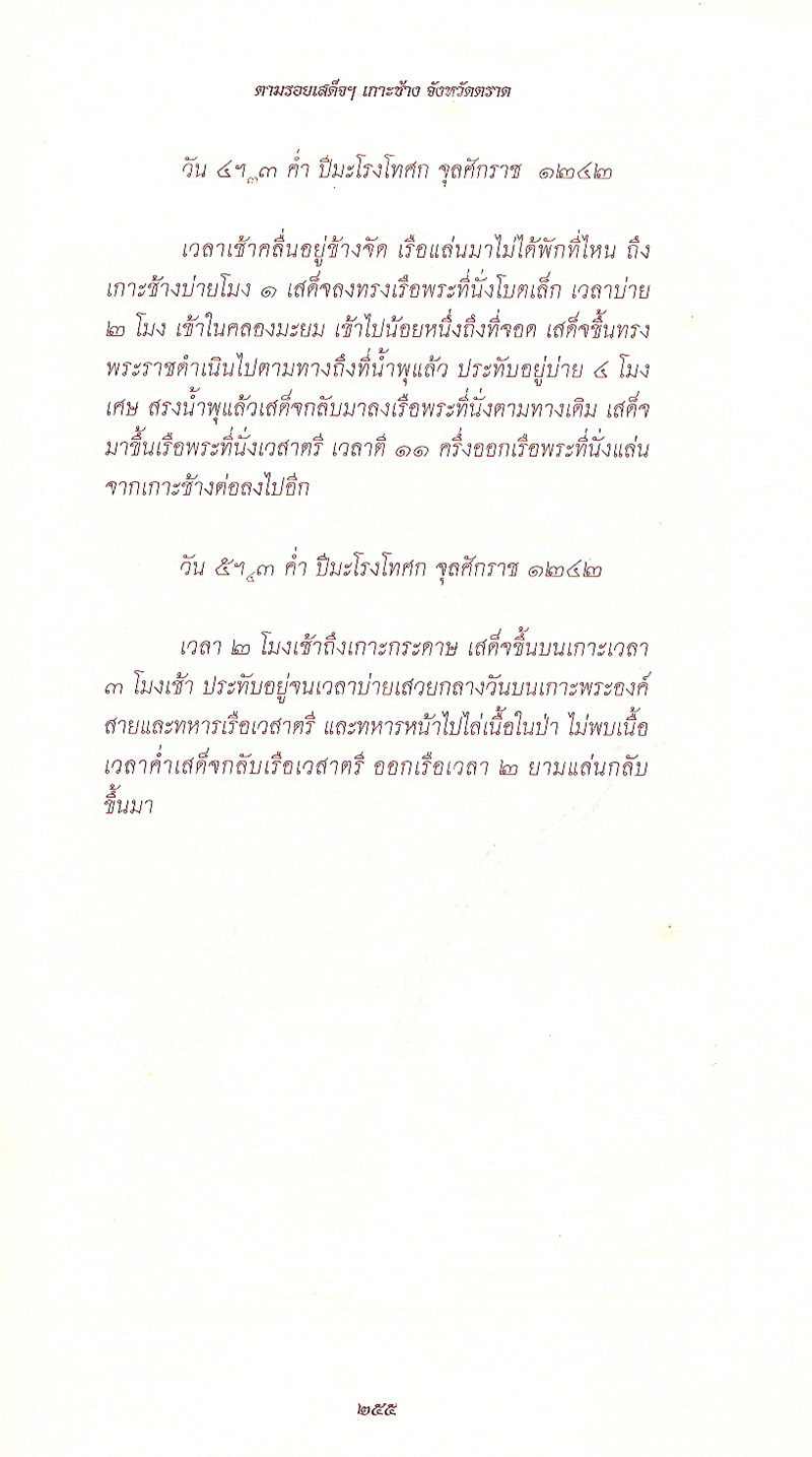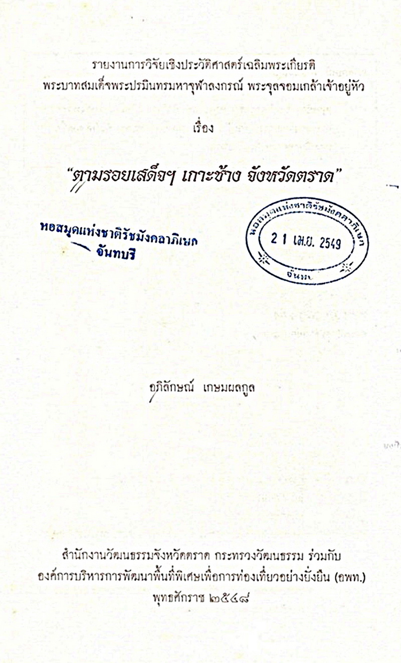 อภิลักษณ์ เกษมผลกูล, “ตามรอยเสด็จฯ เกาะช้างจังหวัดตราด,” D-Library | National Library of Thailand, accessed April 2, 2026, http://164.115.27.97/digital2024/items/show/4831.