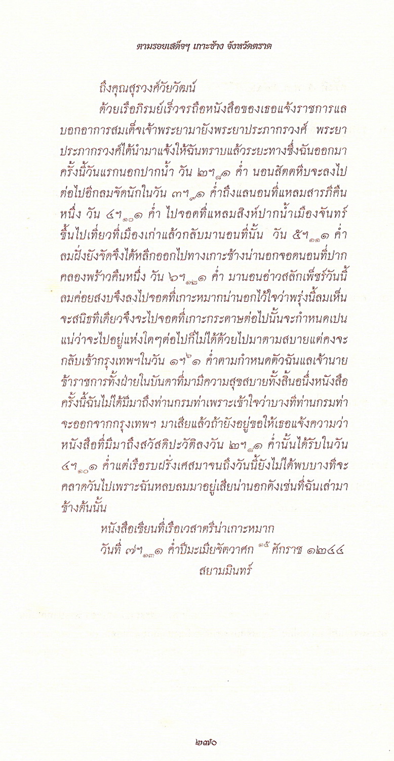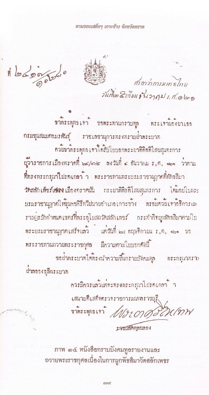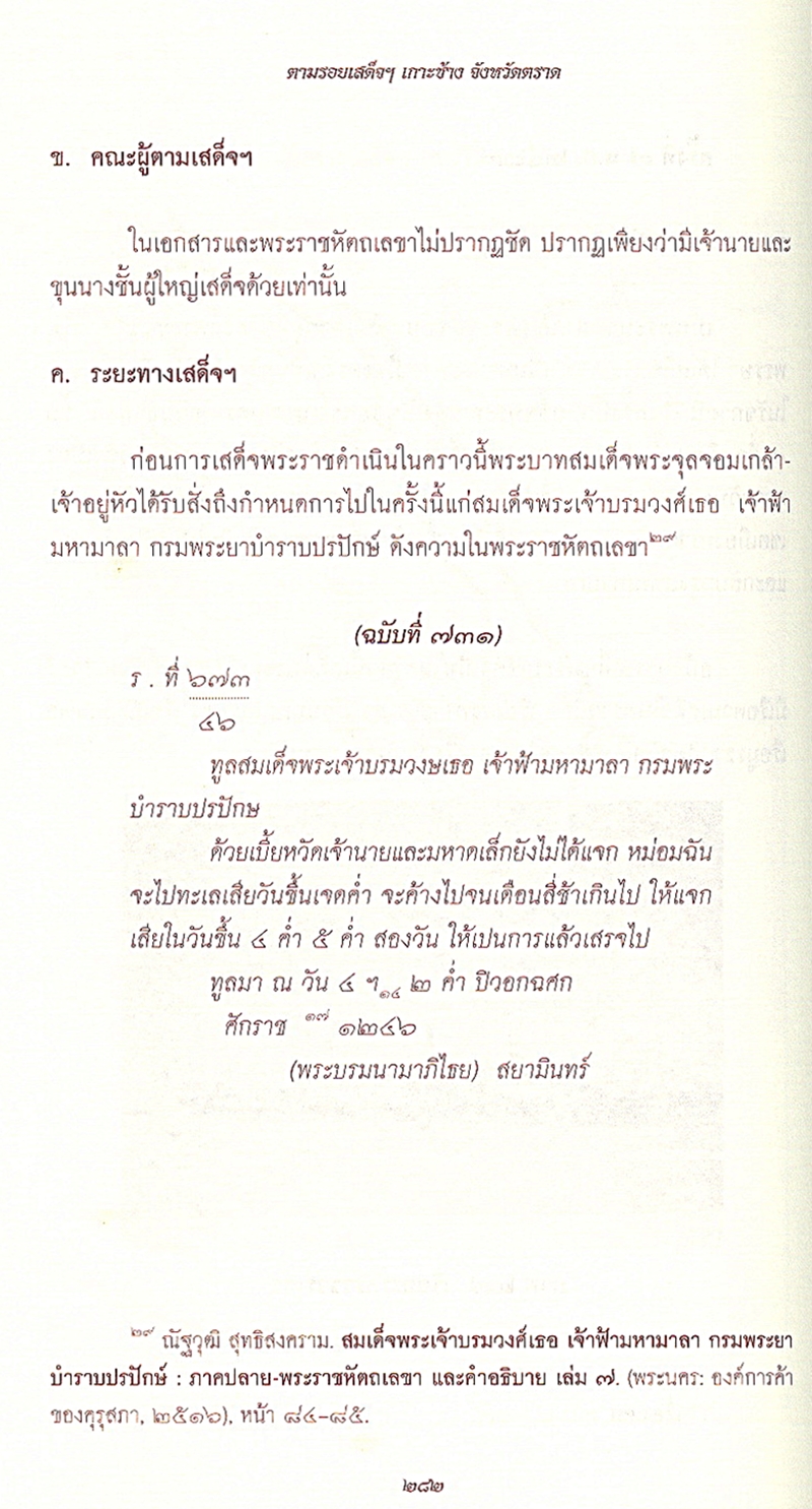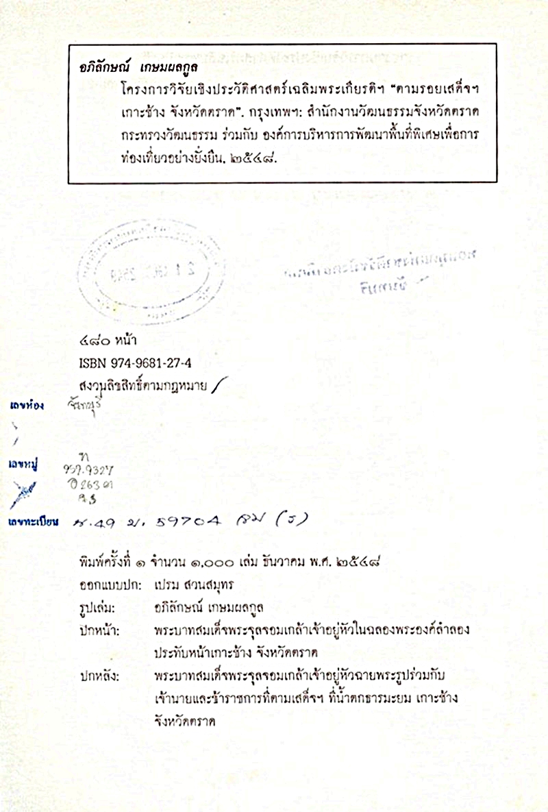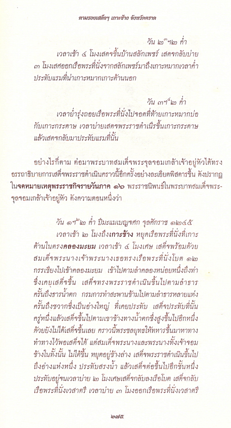 อภิลักษณ์ เกษมผลกูล, “ตามรอยเสด็จฯ เกาะช้างจังหวัดตราด,” D-Library | National Library of Thailand, accessed April 2, 2026, http://164.115.27.97/digital2024/items/show/4831.
